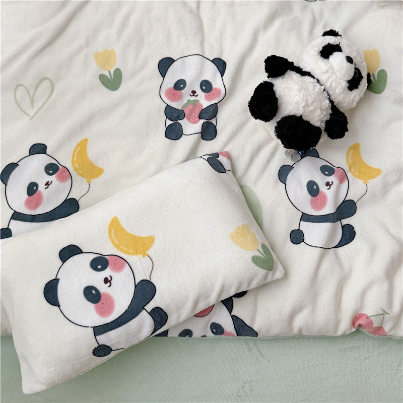 萌宝家纺 2025新款牛奶绒儿童被套幼儿园冬被可拆洗 调皮熊猫