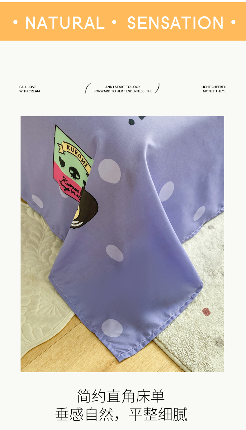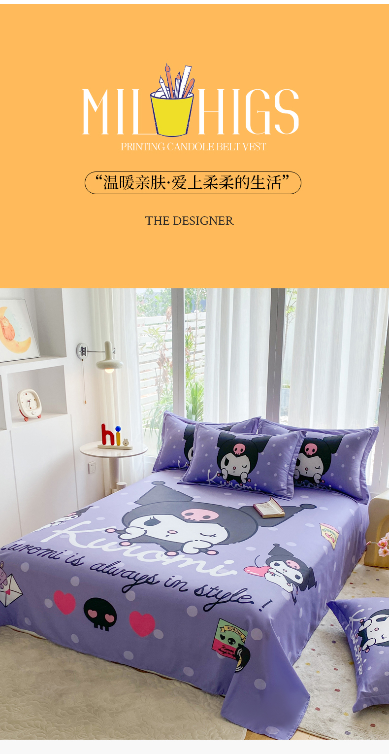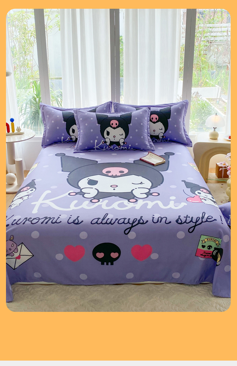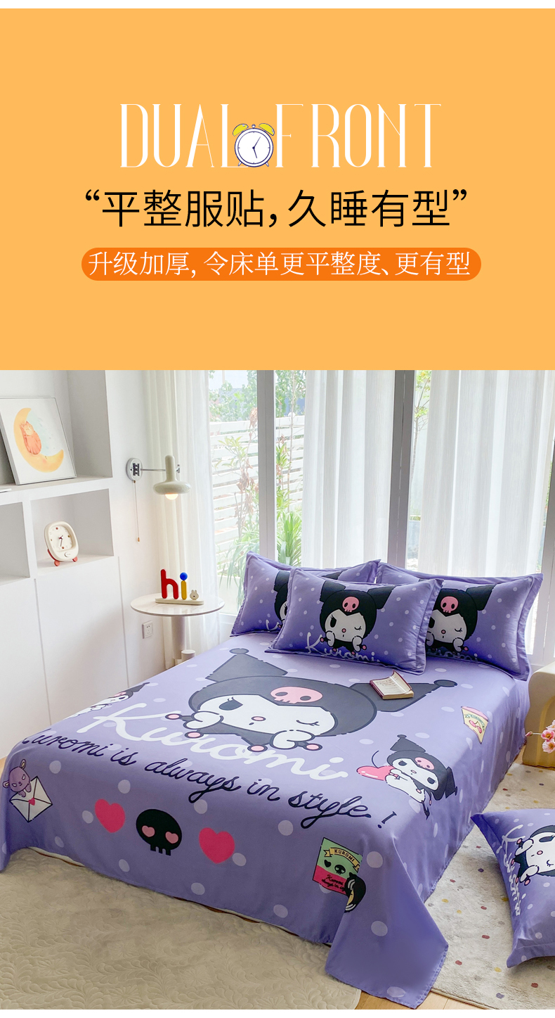 • 91家纺网 家纺一手货源 找家纺 一电 2025新款卡通床单单件被单学生宿舍被罩三件套单人儿童上下床床单-第四批 圆点库洛米
