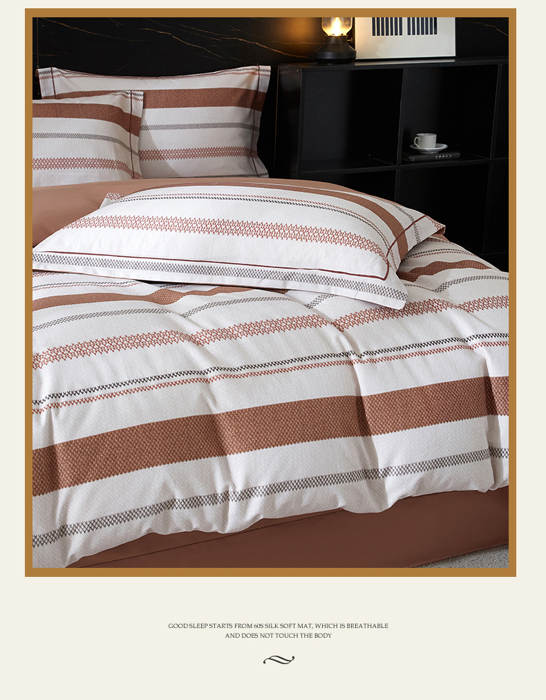 商品名称:品乐家纺 2025新款32支超柔生态磨毛四件套 川屿-咖