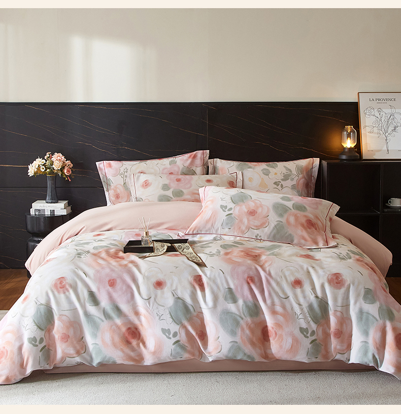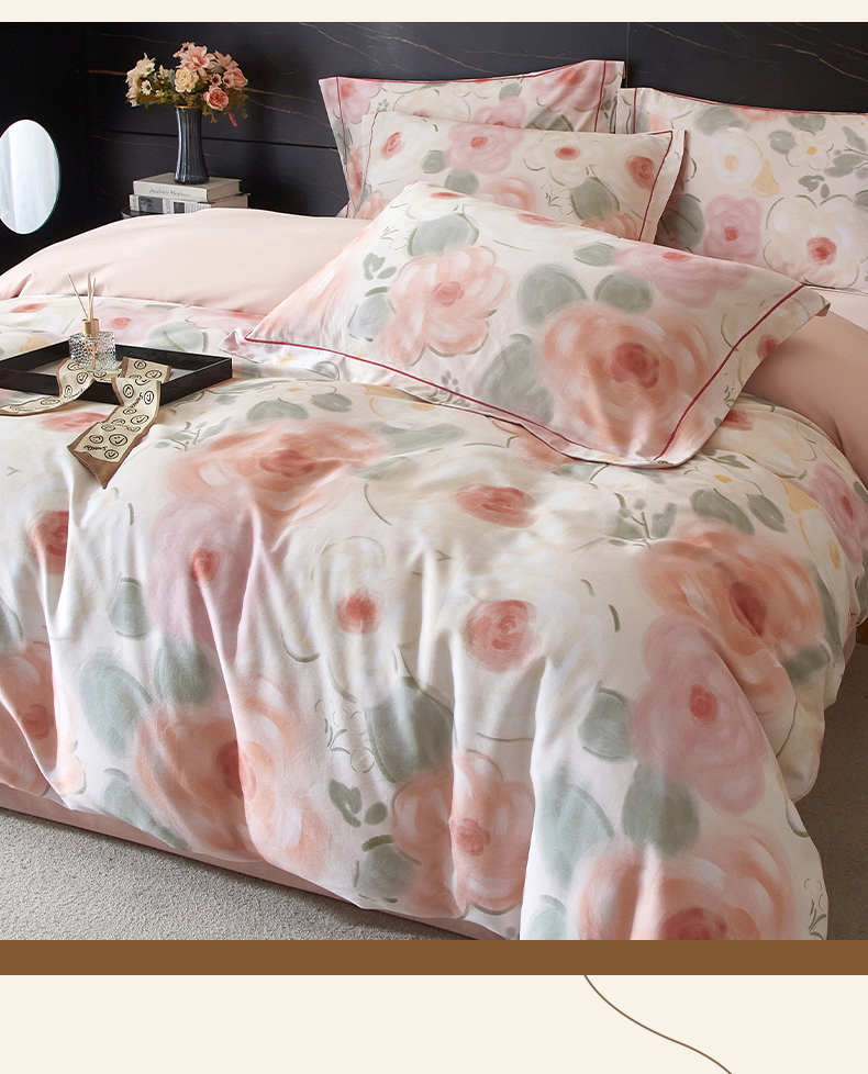 品乐家纺 2025新款32支超柔生态磨毛四件套 桃汐-桔