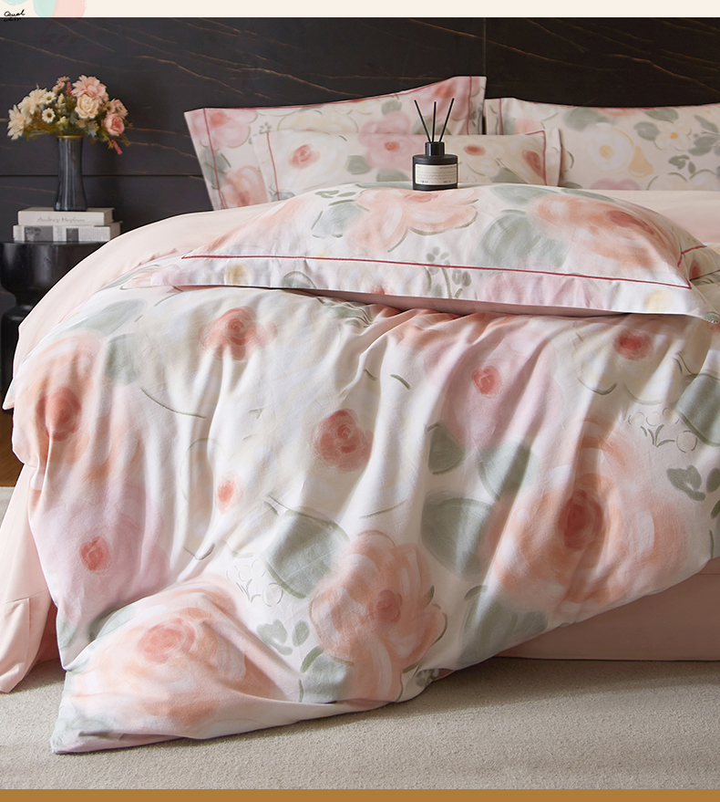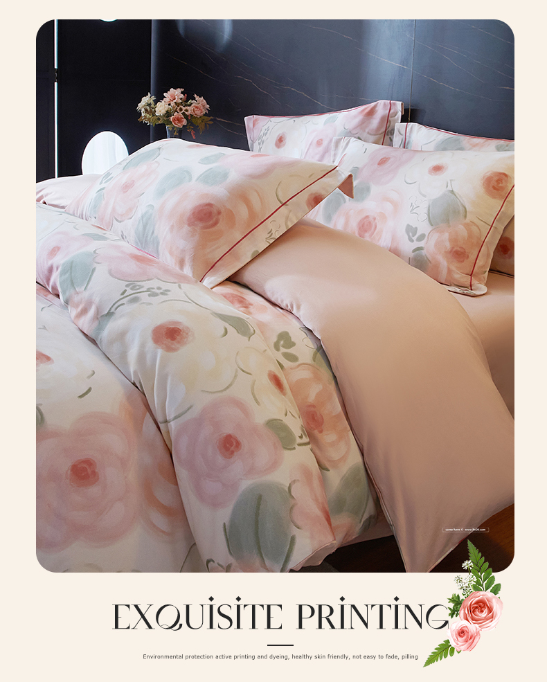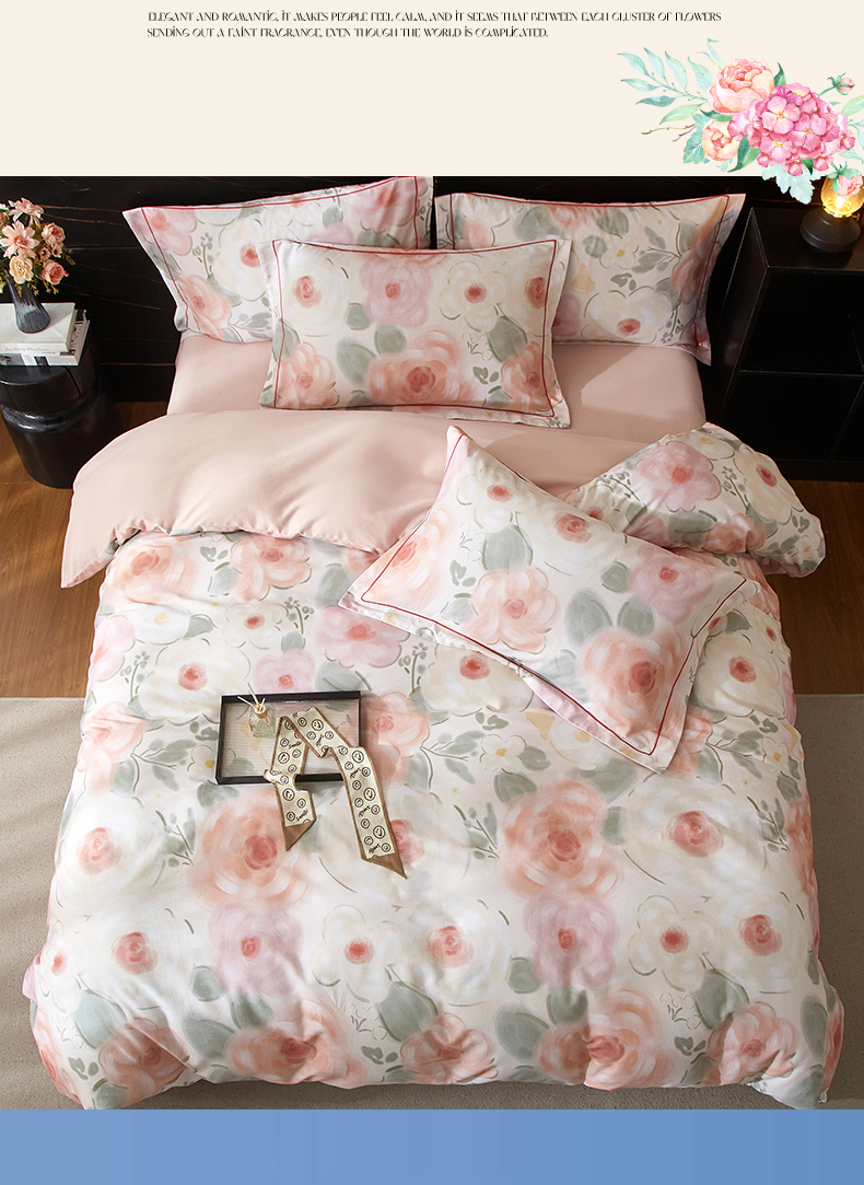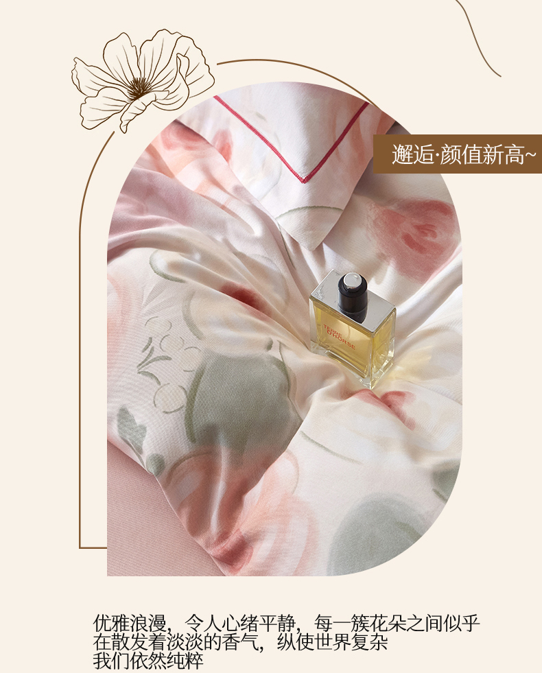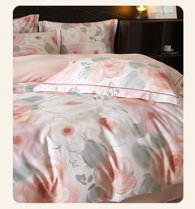 商品名称:品乐家纺 2025新款32支超柔生态磨毛四件套 桃汐-桔