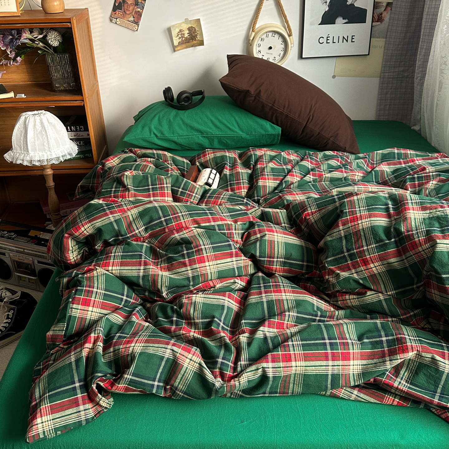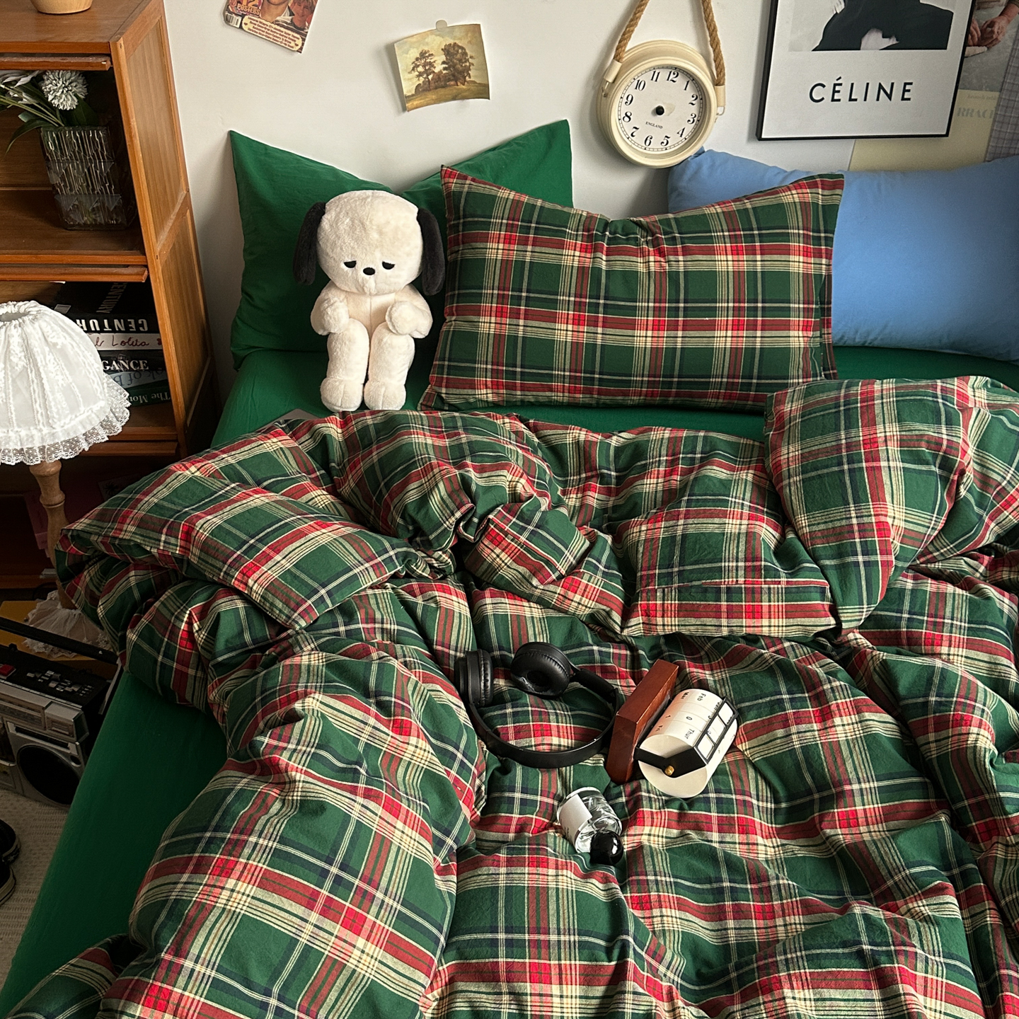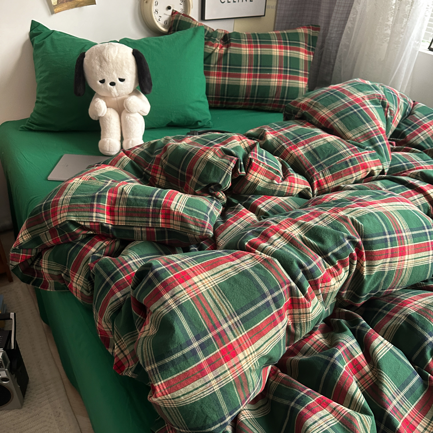 (总)对白 2025新款32s全棉色织水洗棉四件套-苏格兰海岛-绿【提供买家秀】