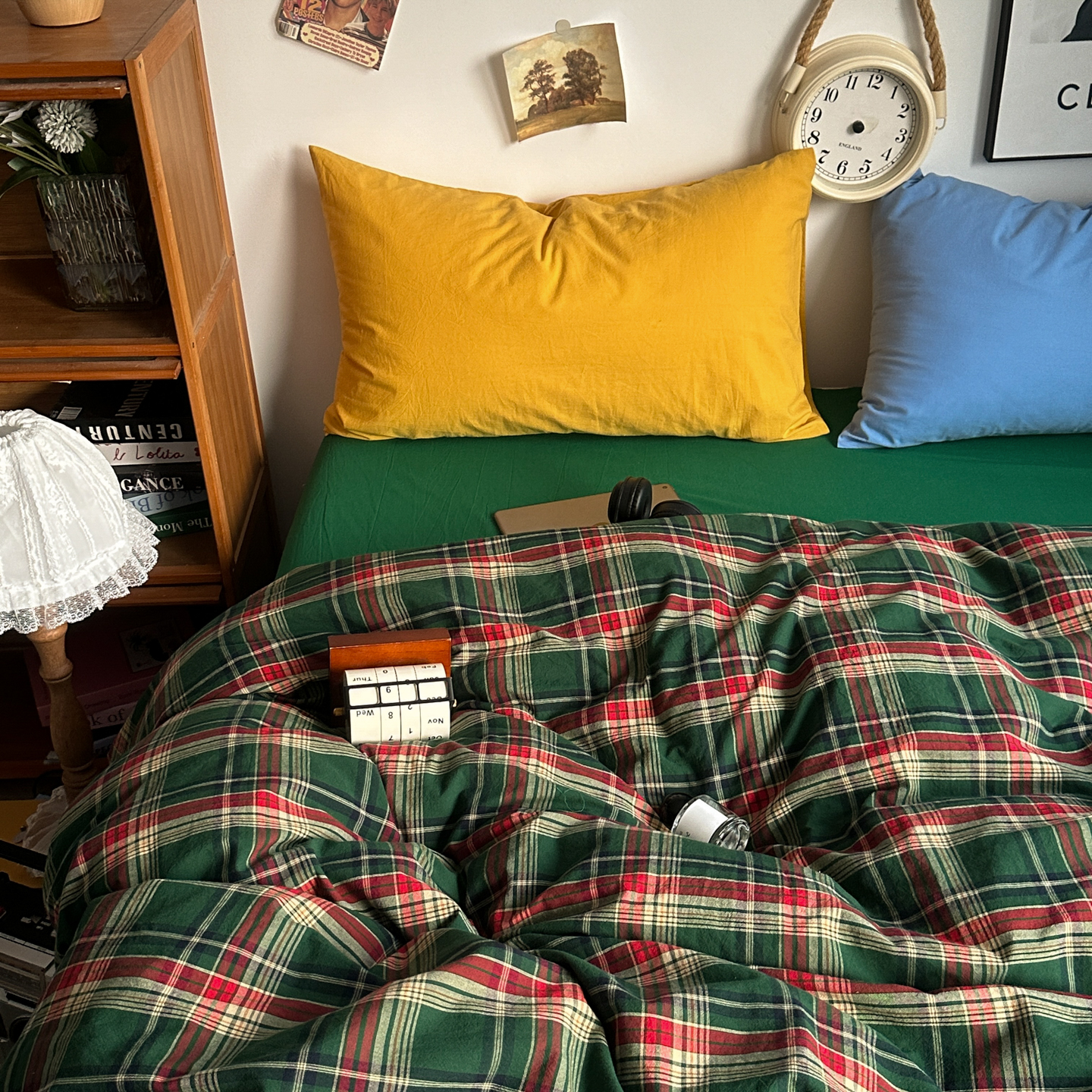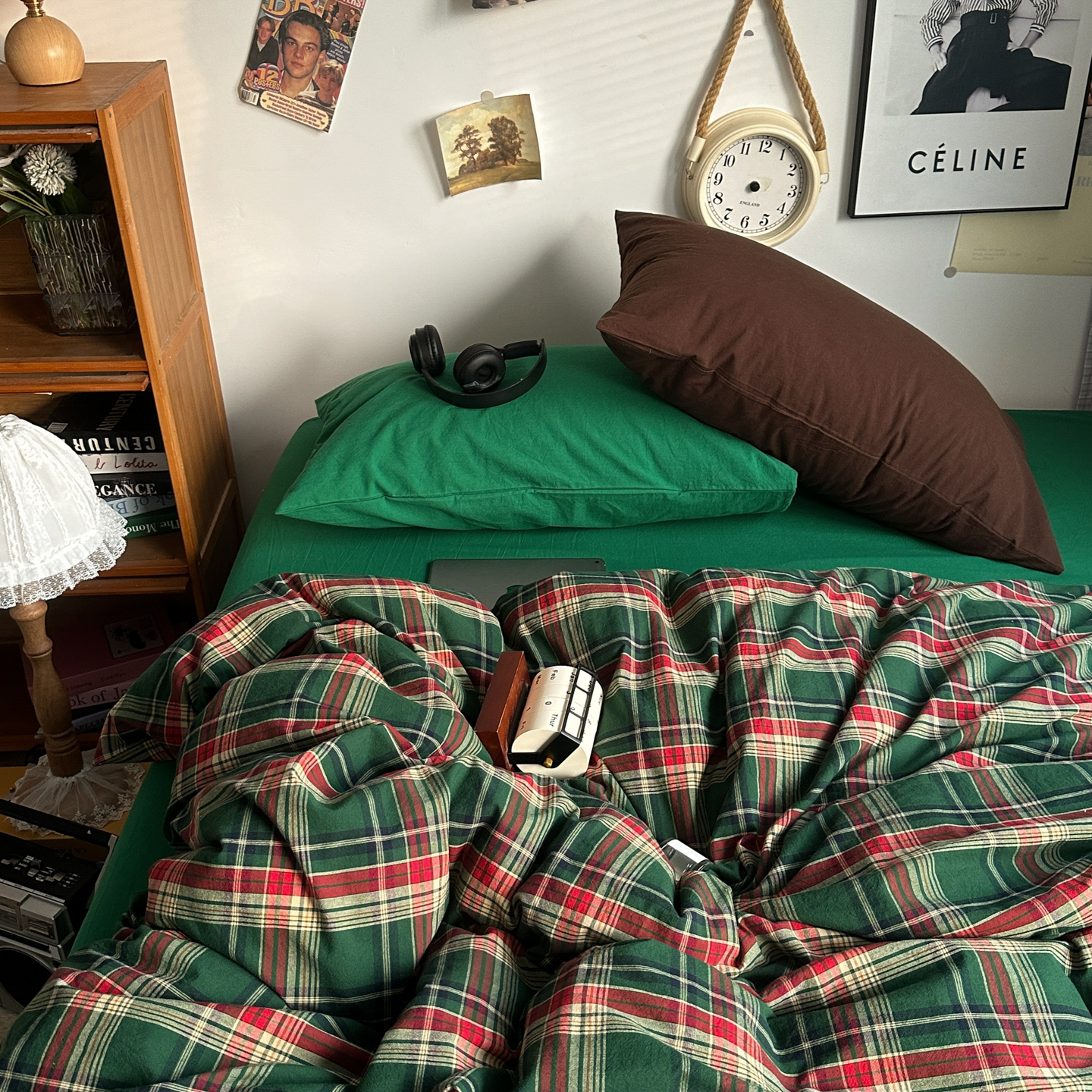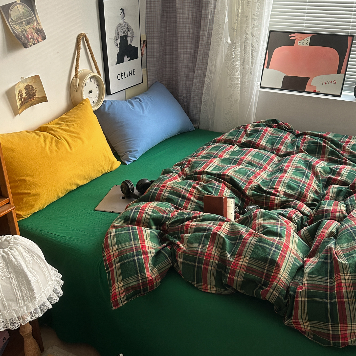 (总)对白 2025新款32s全棉色织水洗棉四件套-苏格兰海岛-绿【提供买家秀】