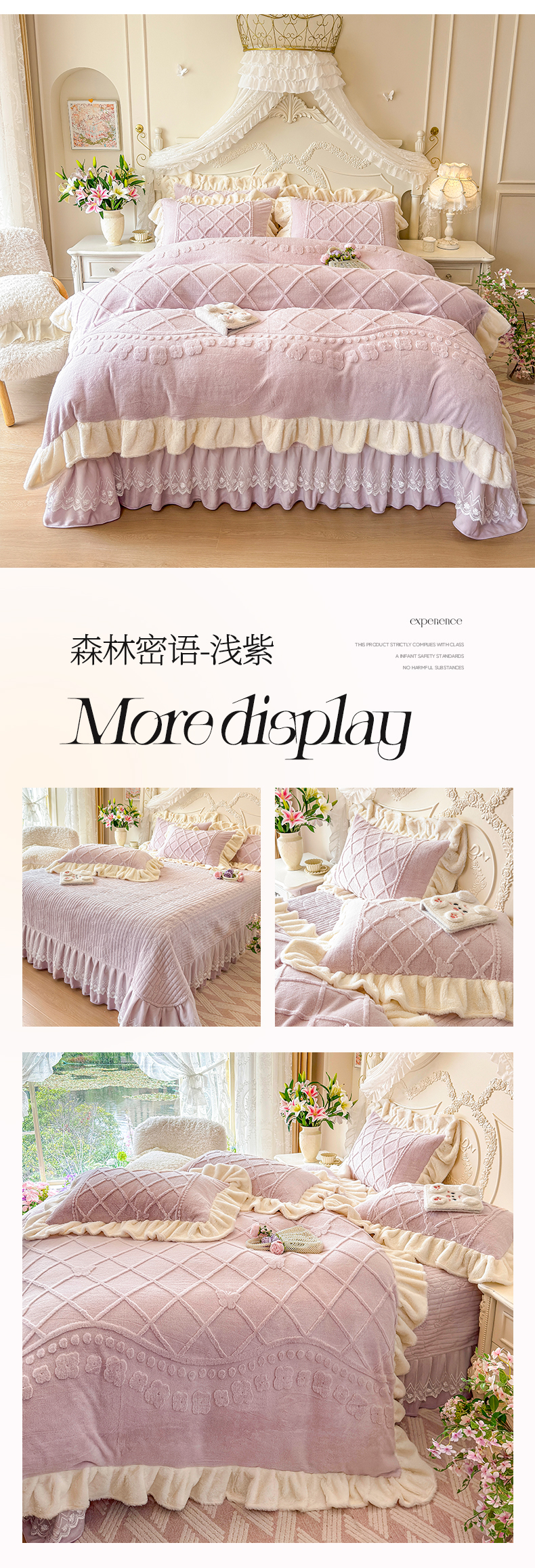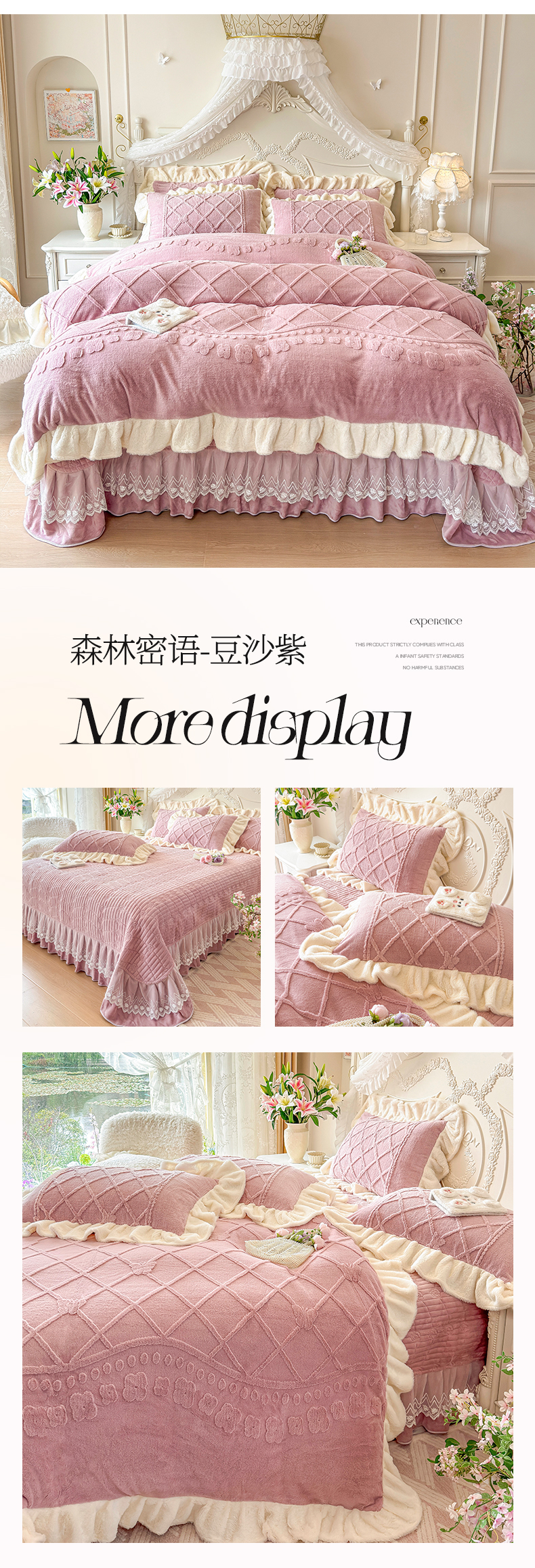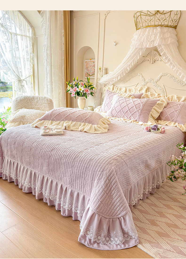 (总)宜凡家纺 2025新款兔绒提花牛奶绒夹棉床裙四件套,爱心 少女粉,爱心 粉紫,爱心 驼色,蝶舞 大红,蝶舞 米色,蝶舞 浅紫,蝶舞 玉色,简爱 苍青,简爱 豆沙紫,简爱 玉色,樱桃 苍青,樱桃 豆沙紫,樱桃 奶油白