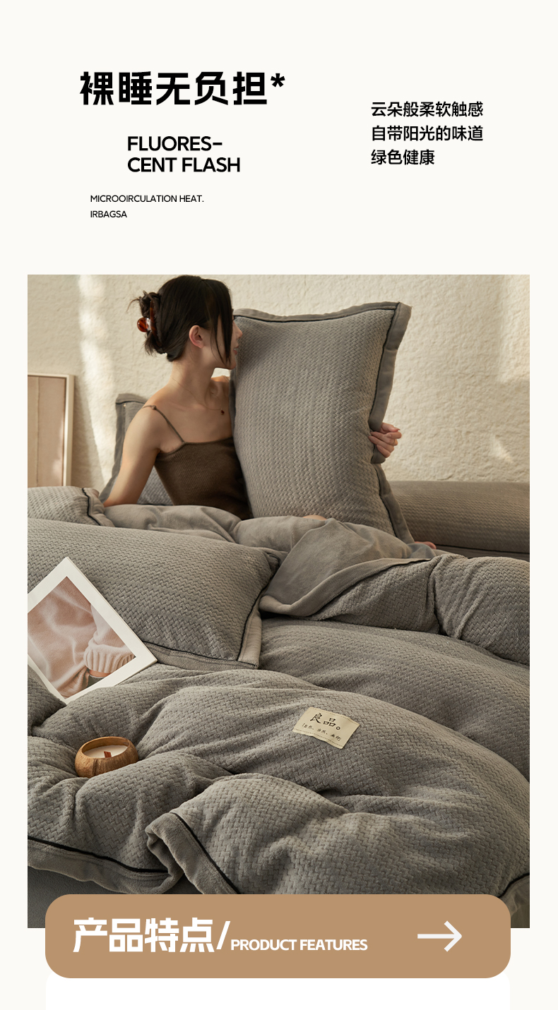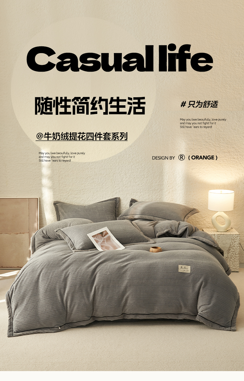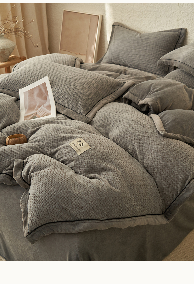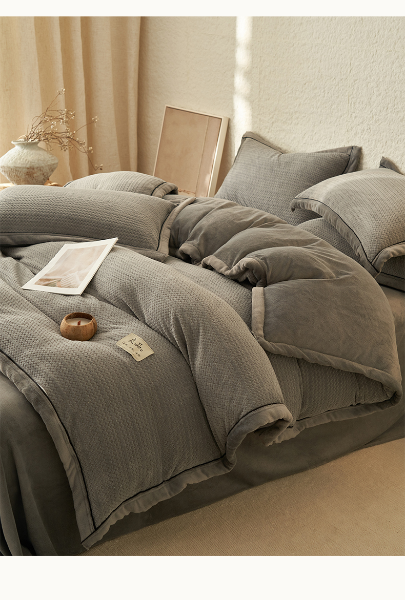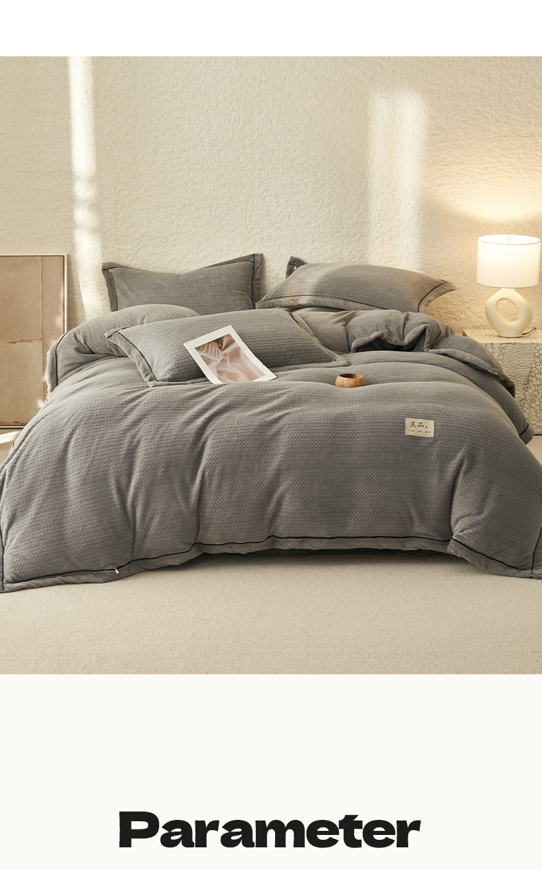 商品名称:早晨家纺 2025新款青沐款牛奶绒提花四件套 青沐-浅灰