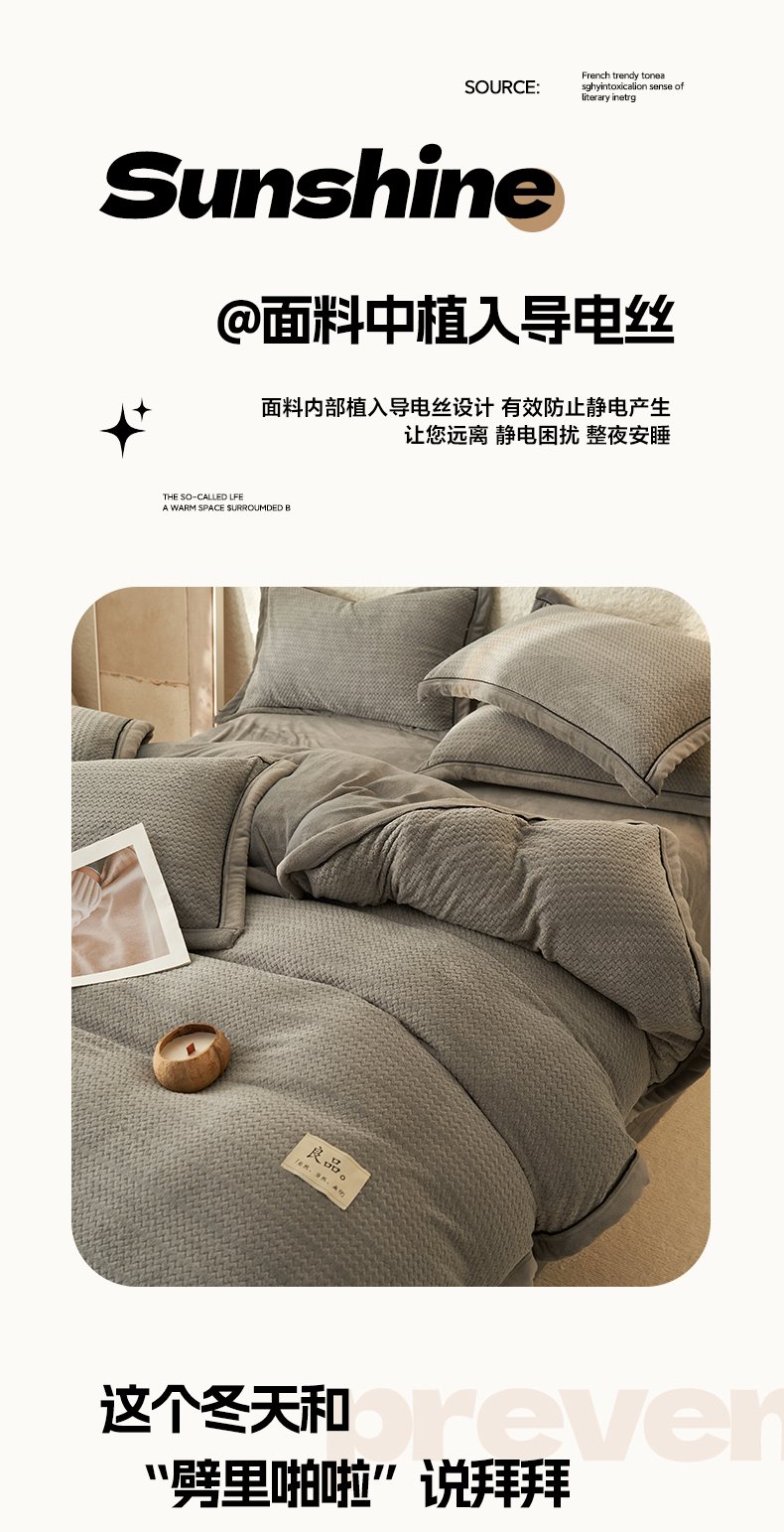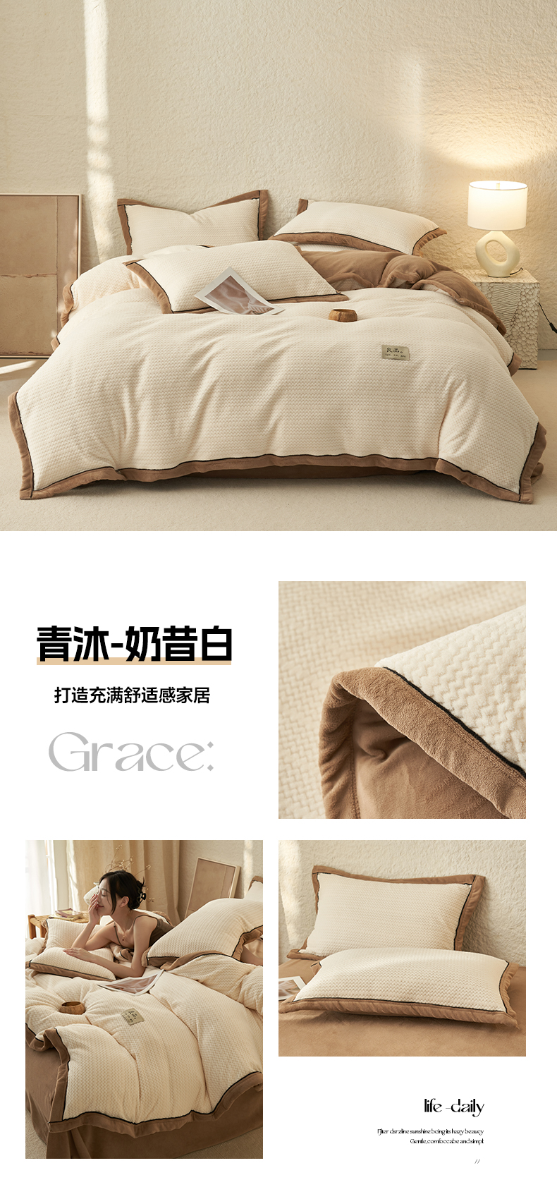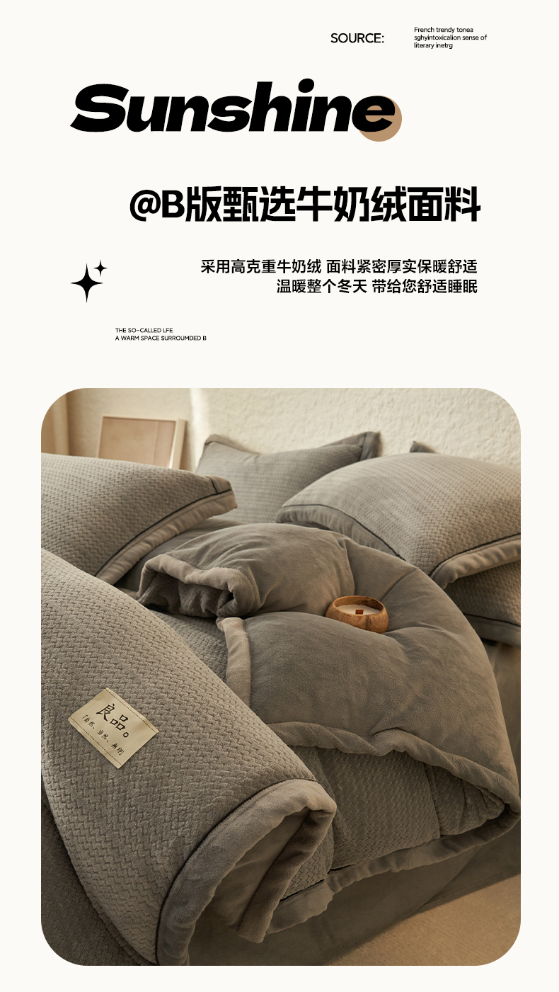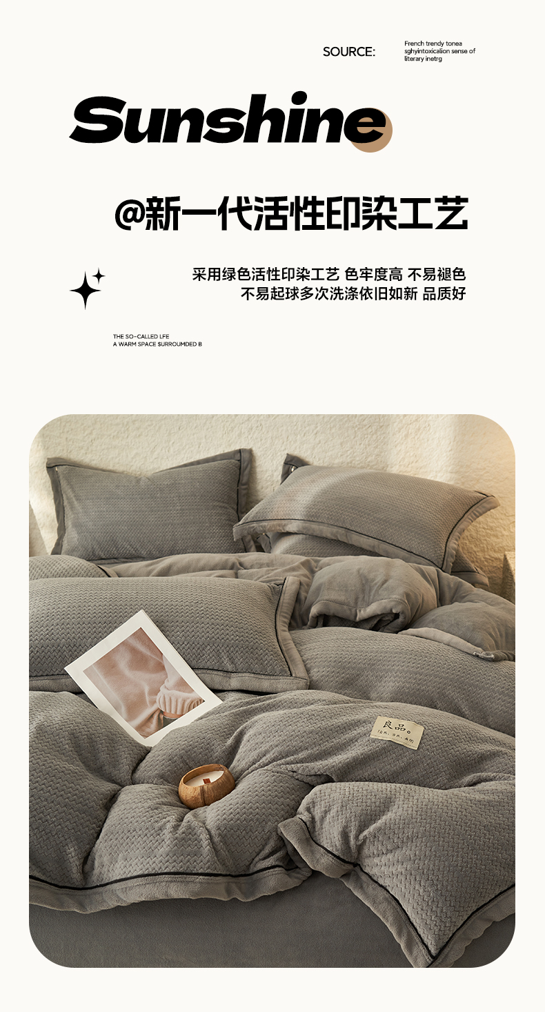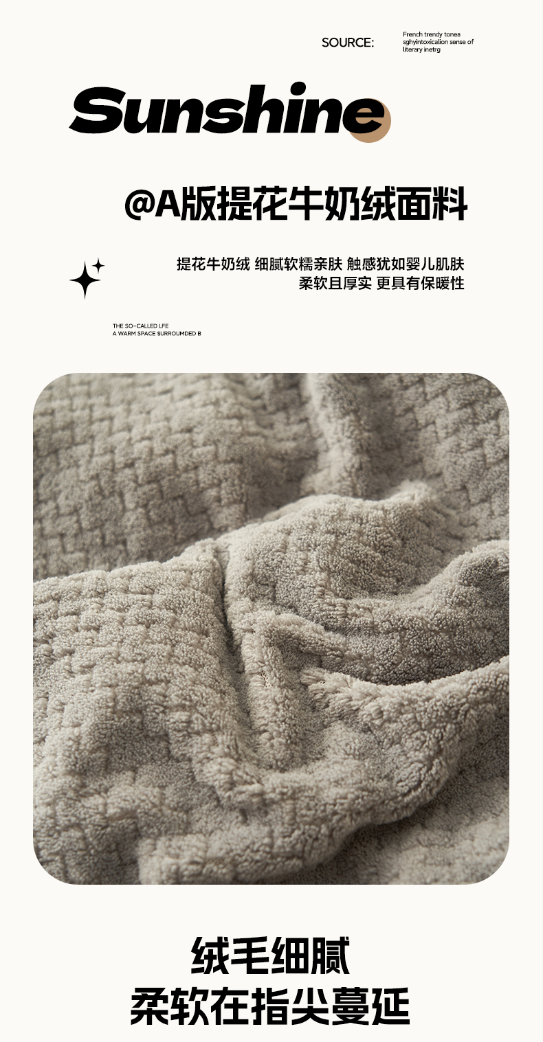 商品名称:早晨家纺 2025新款青沐款牛奶绒提花四件套 青沐-浅灰