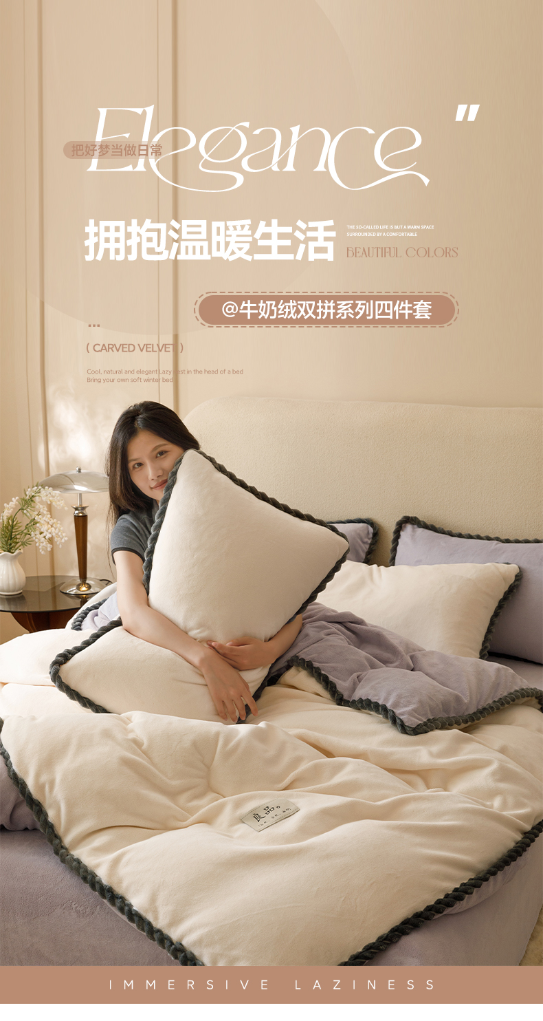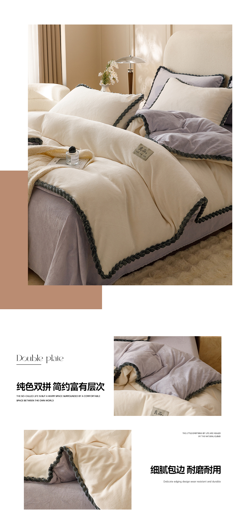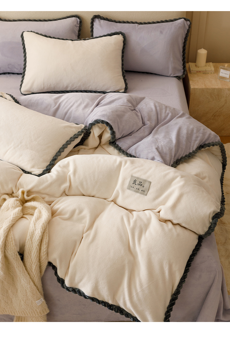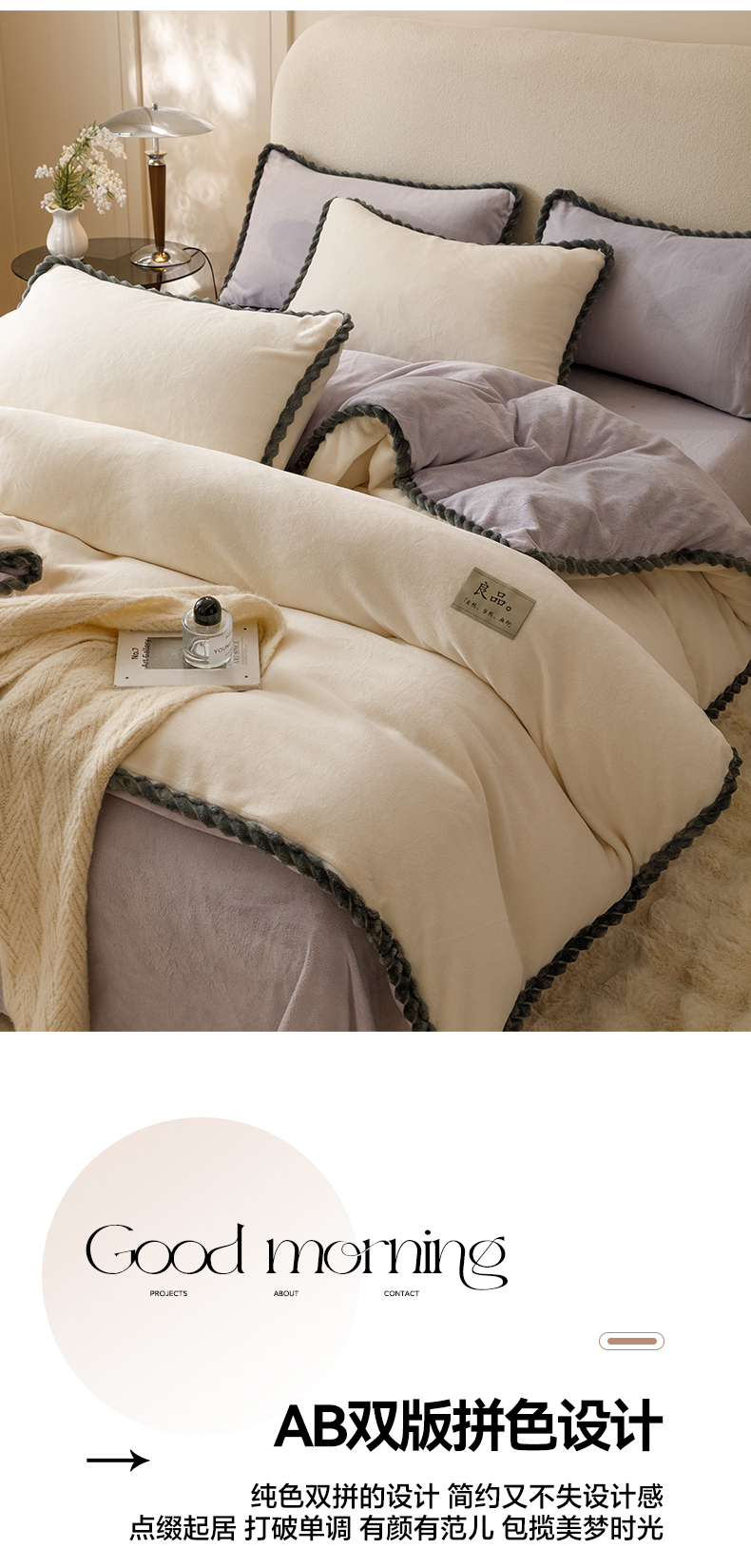 早晨家纺 2025新款牛奶绒双拼四件套 双拼奶白+浅紫