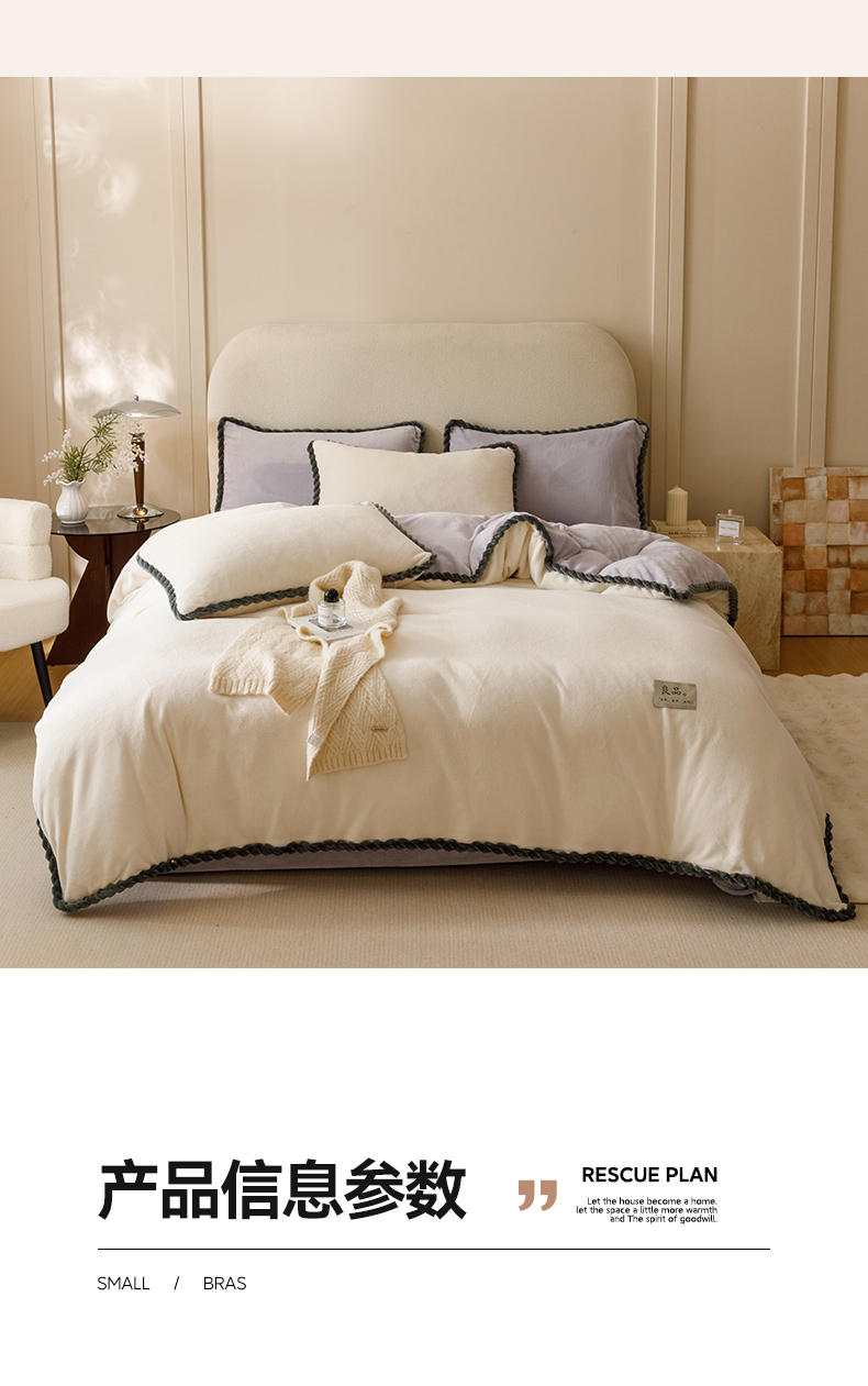 商品名称:早晨家纺 2025新款牛奶绒双拼四件套 双拼奶白+浅紫
