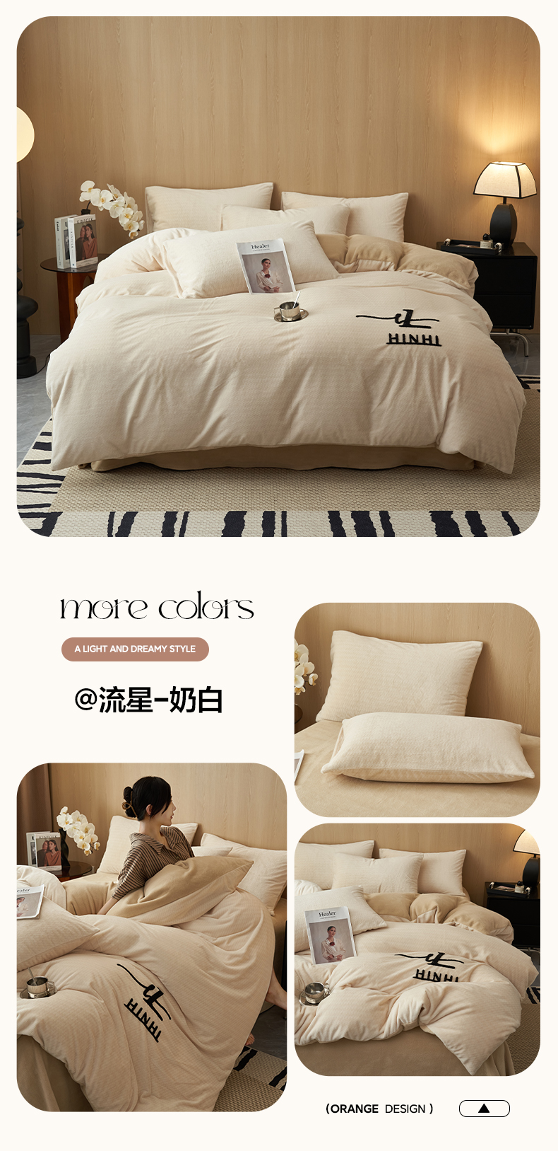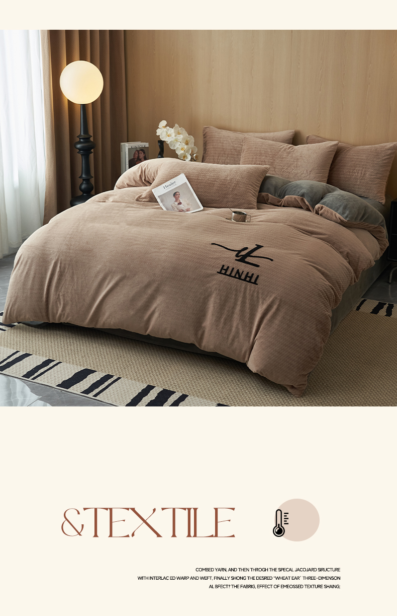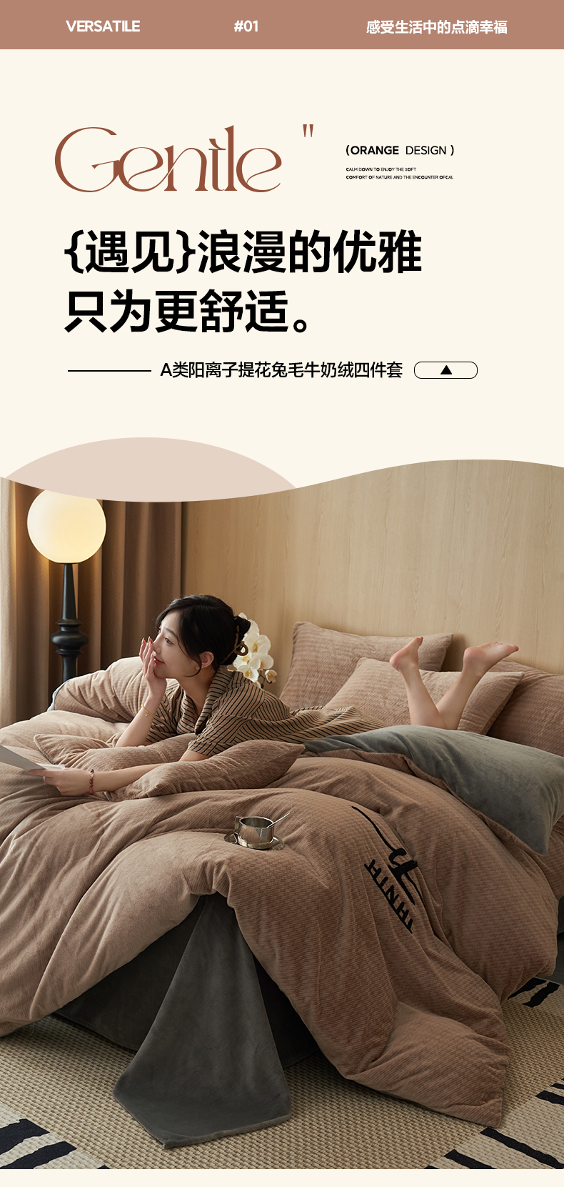 商品名称:早晨家纺 2025新款流星款阳离子提花兔毛牛奶绒四件套 流星-米驼