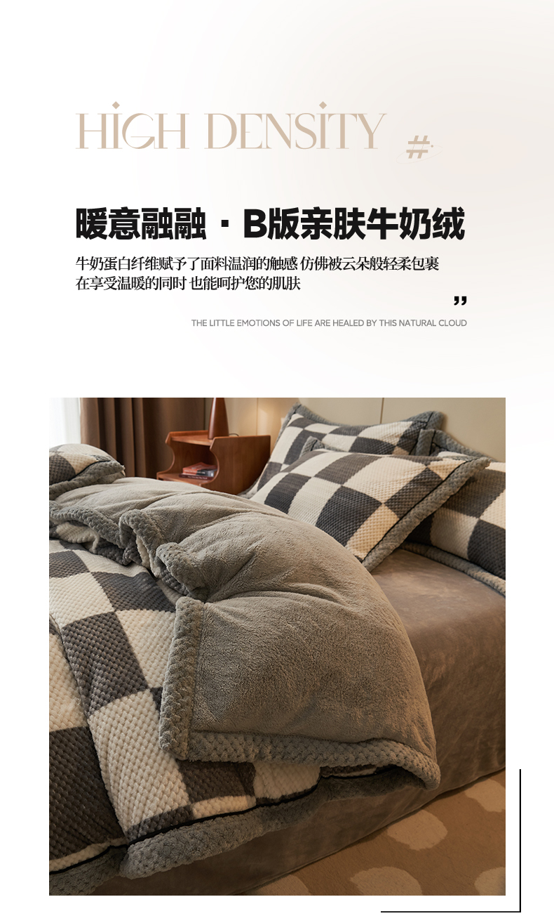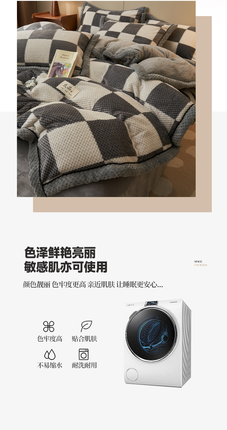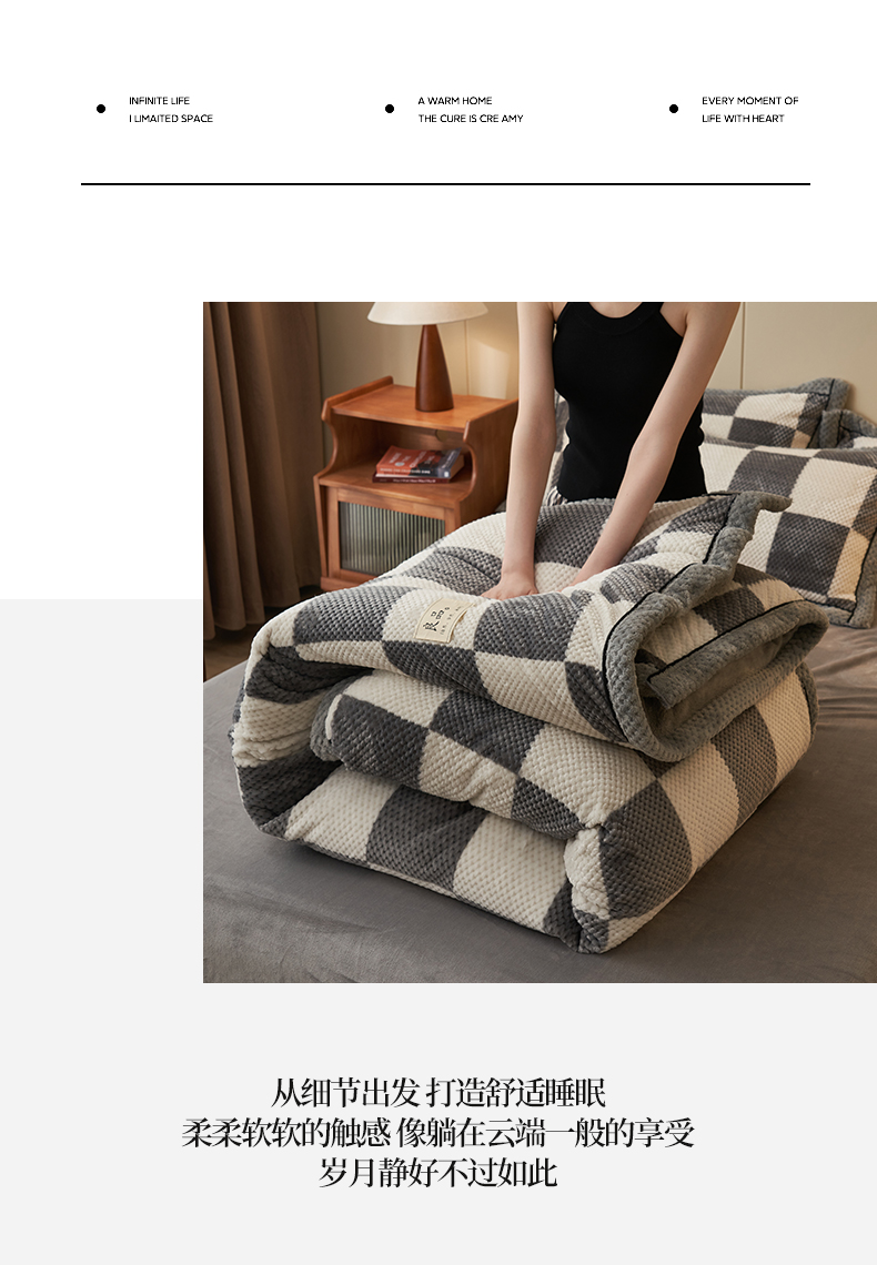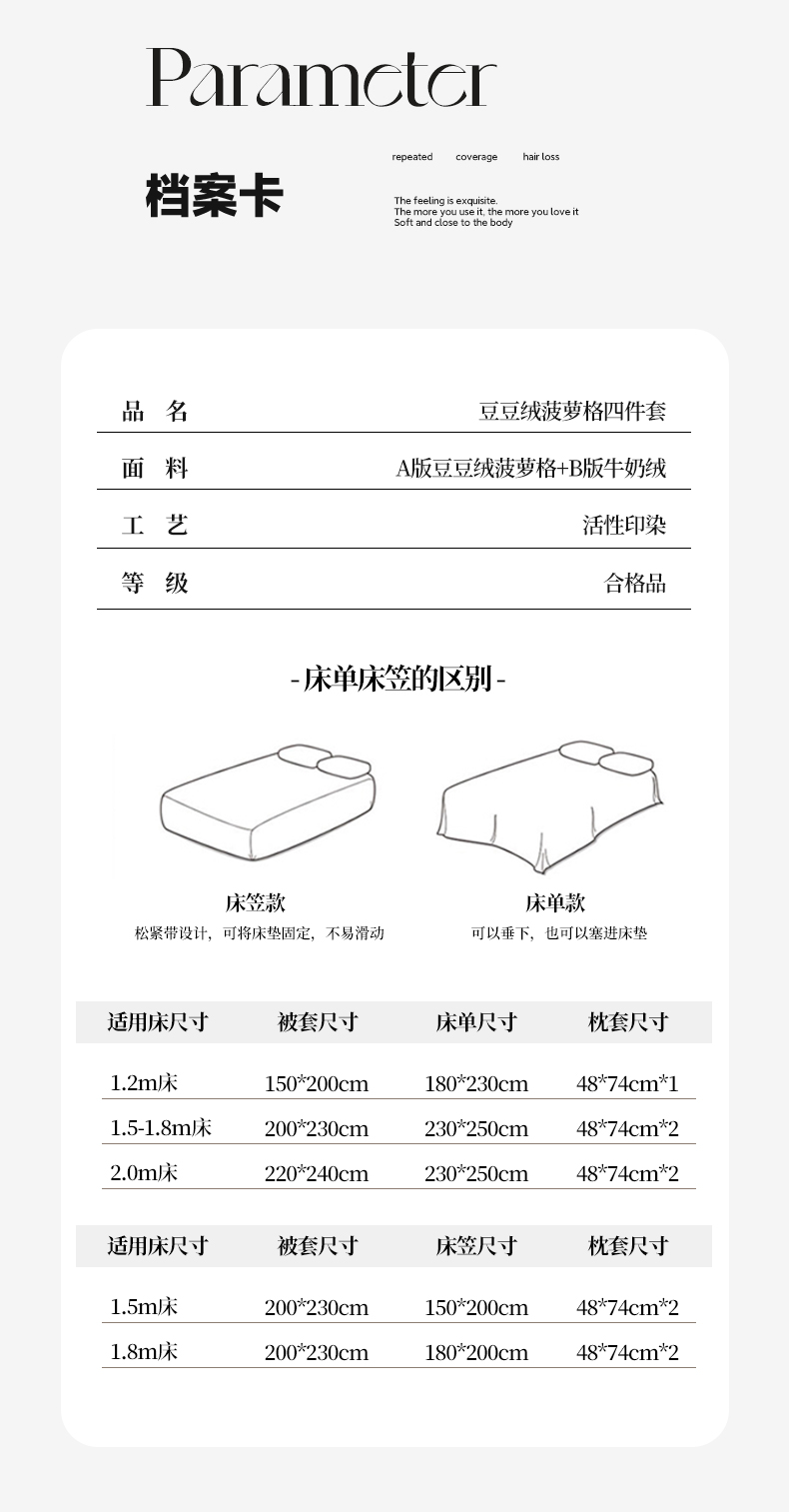 商品名称:早晨家纺 2025新款豆豆款菠萝格提花四件套 豆豆绒-大方格灰