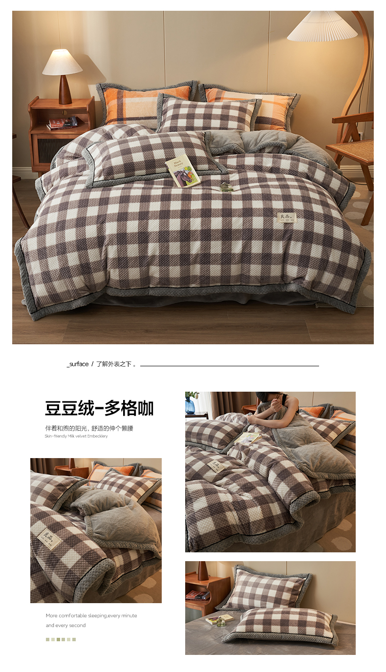 (总)早晨家纺 2025新款豆豆款牛奶绒菠萝格提花四件套,豆豆绒-大方格灰,豆豆绒-大格橙,豆豆绒-小格蓝,豆豆绒-小格咖,豆豆绒-绿条,豆豆绒-多哥咖,豆豆绒-灰条,豆豆绒-大方格蓝