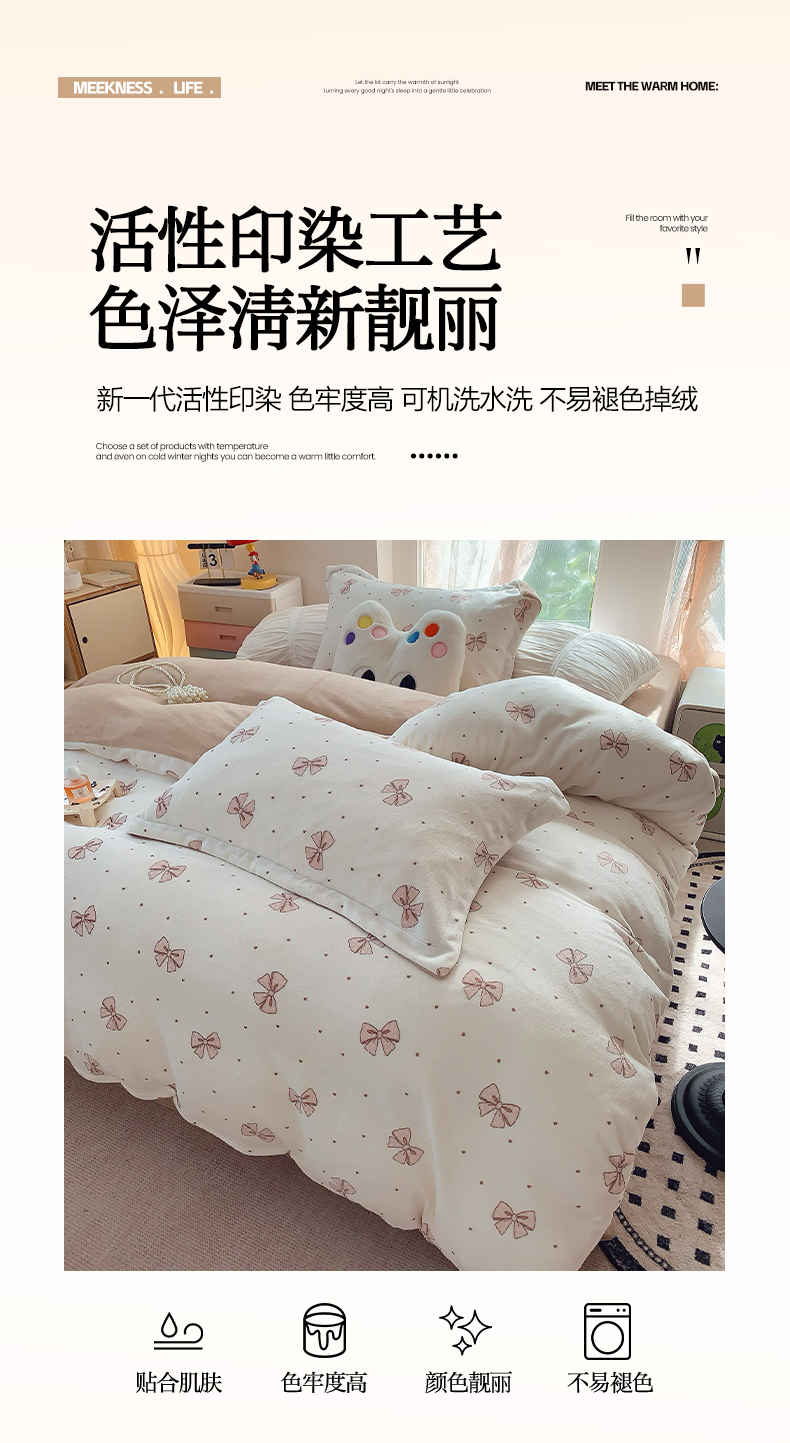 商品名称:莱豫家纺 2025新款加厚牛奶绒三件套四件套保暖不静电 爱心如辰