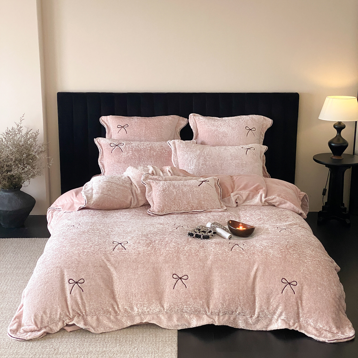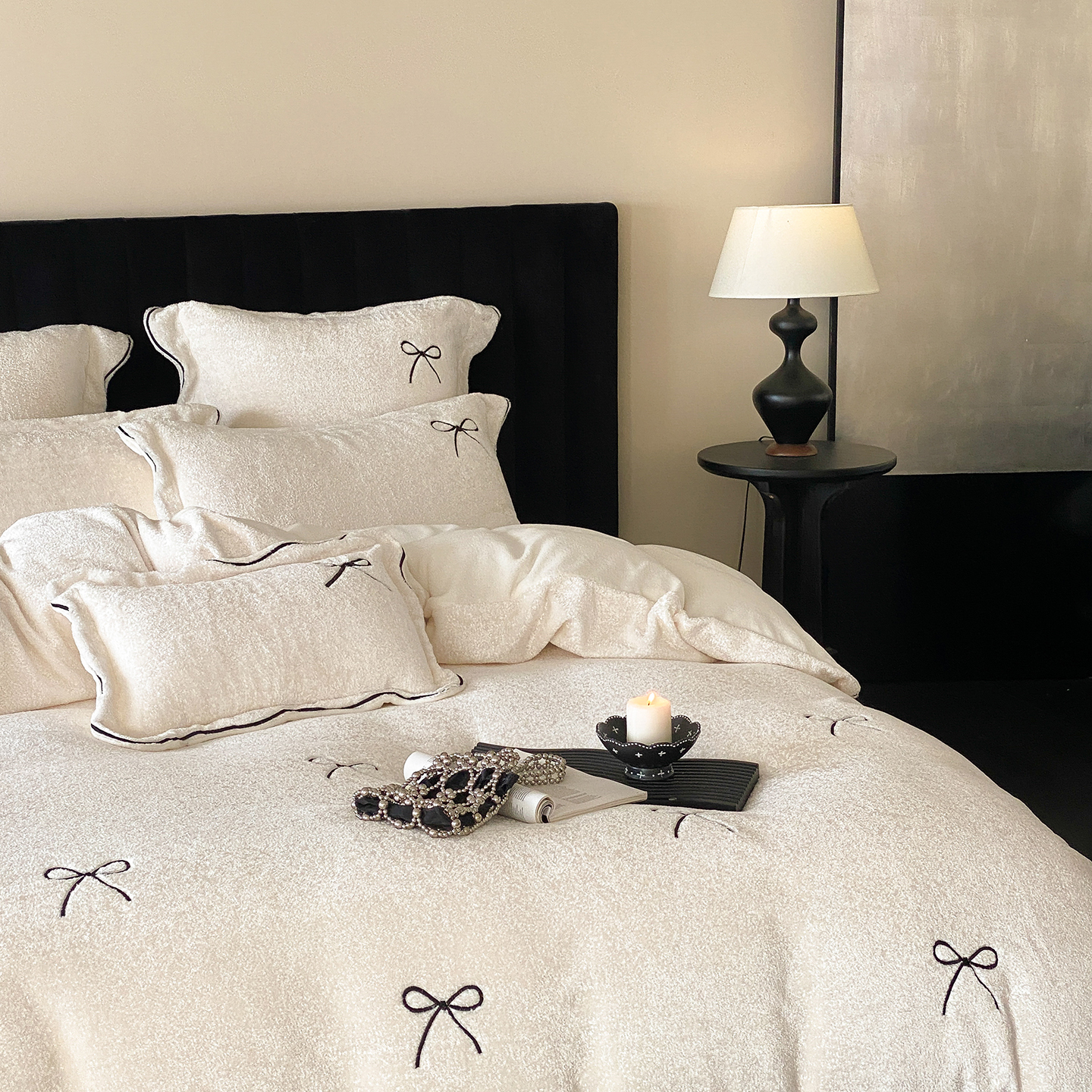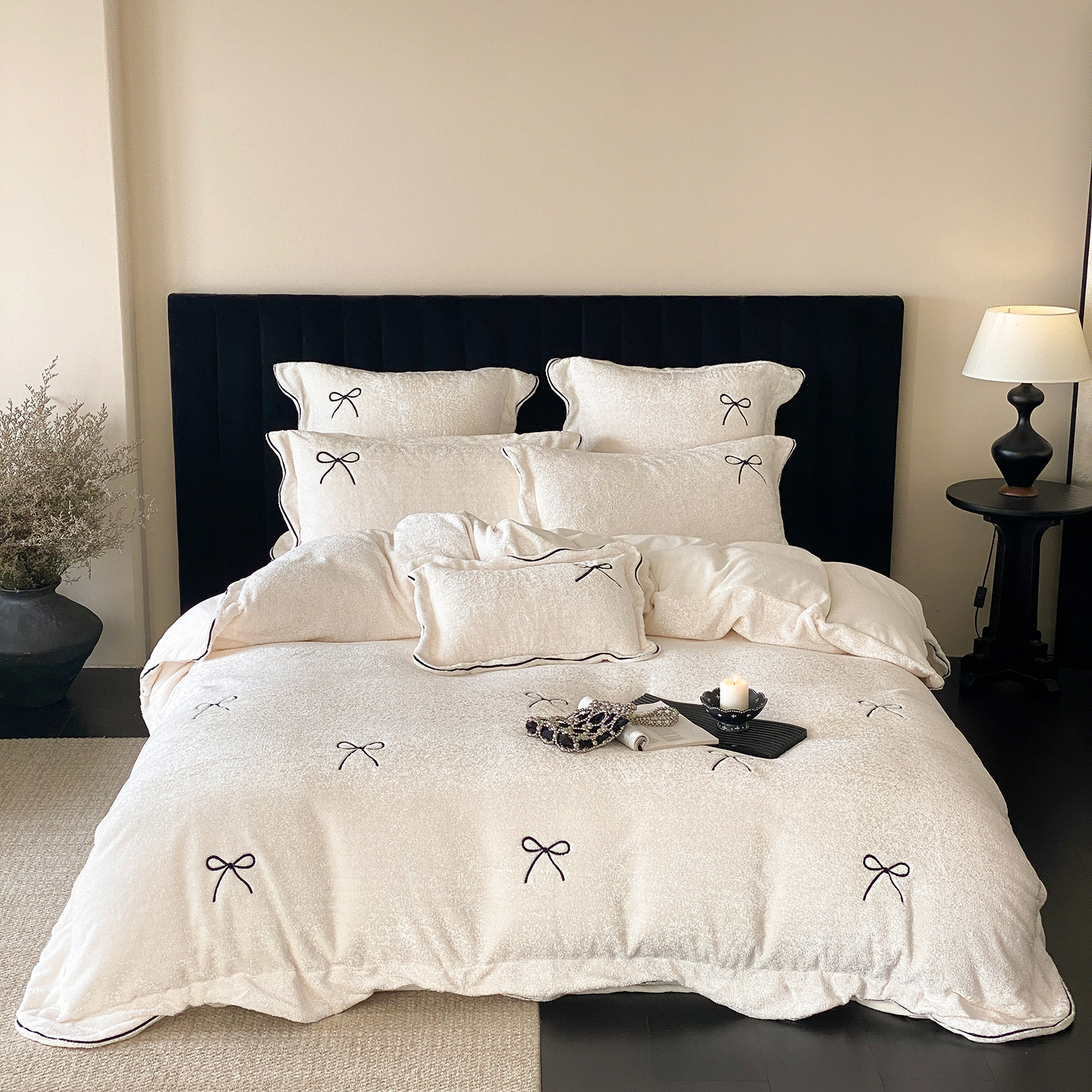 (总)星野 2025新款高克重牛奶绒贴布绣四件套-波点兔,波点兔