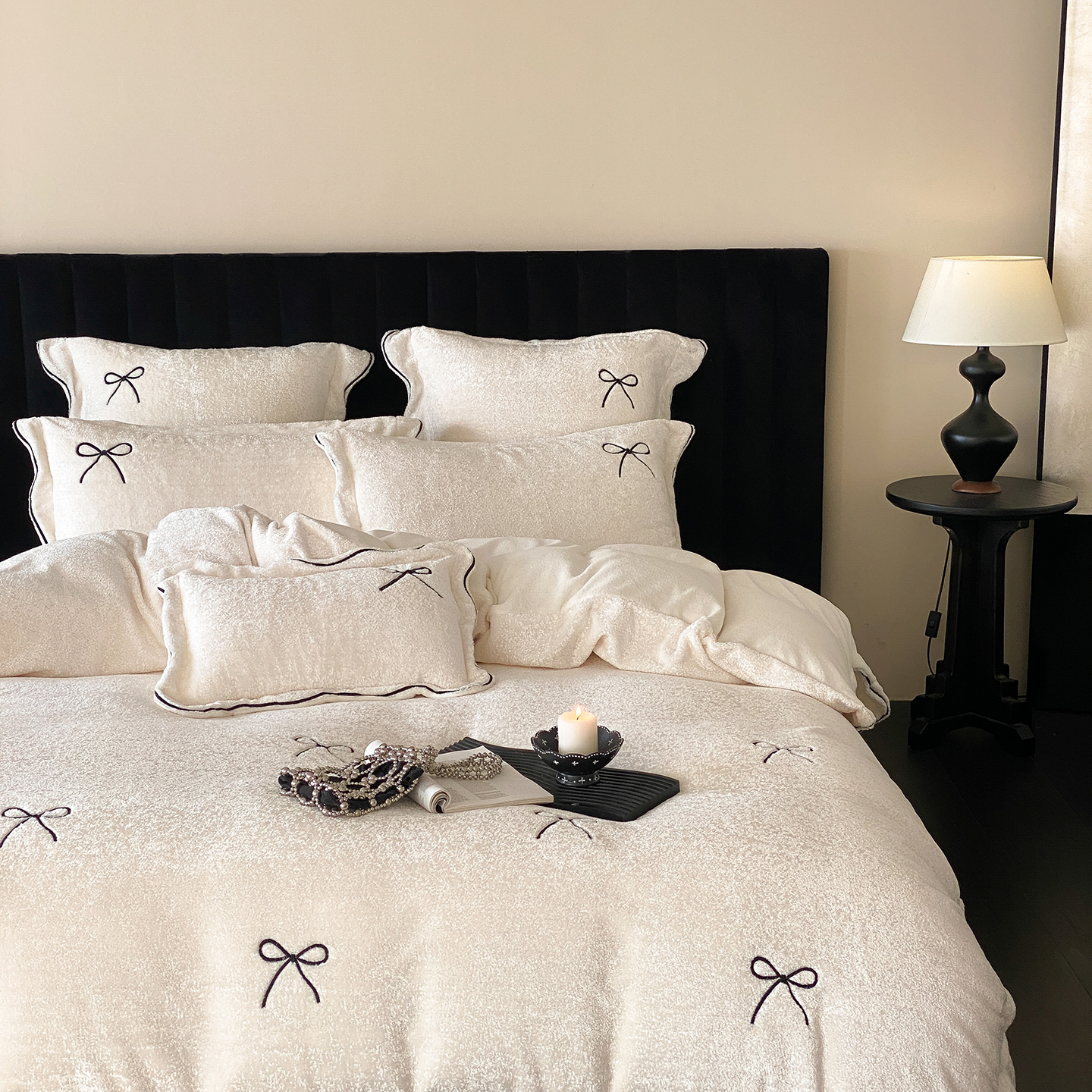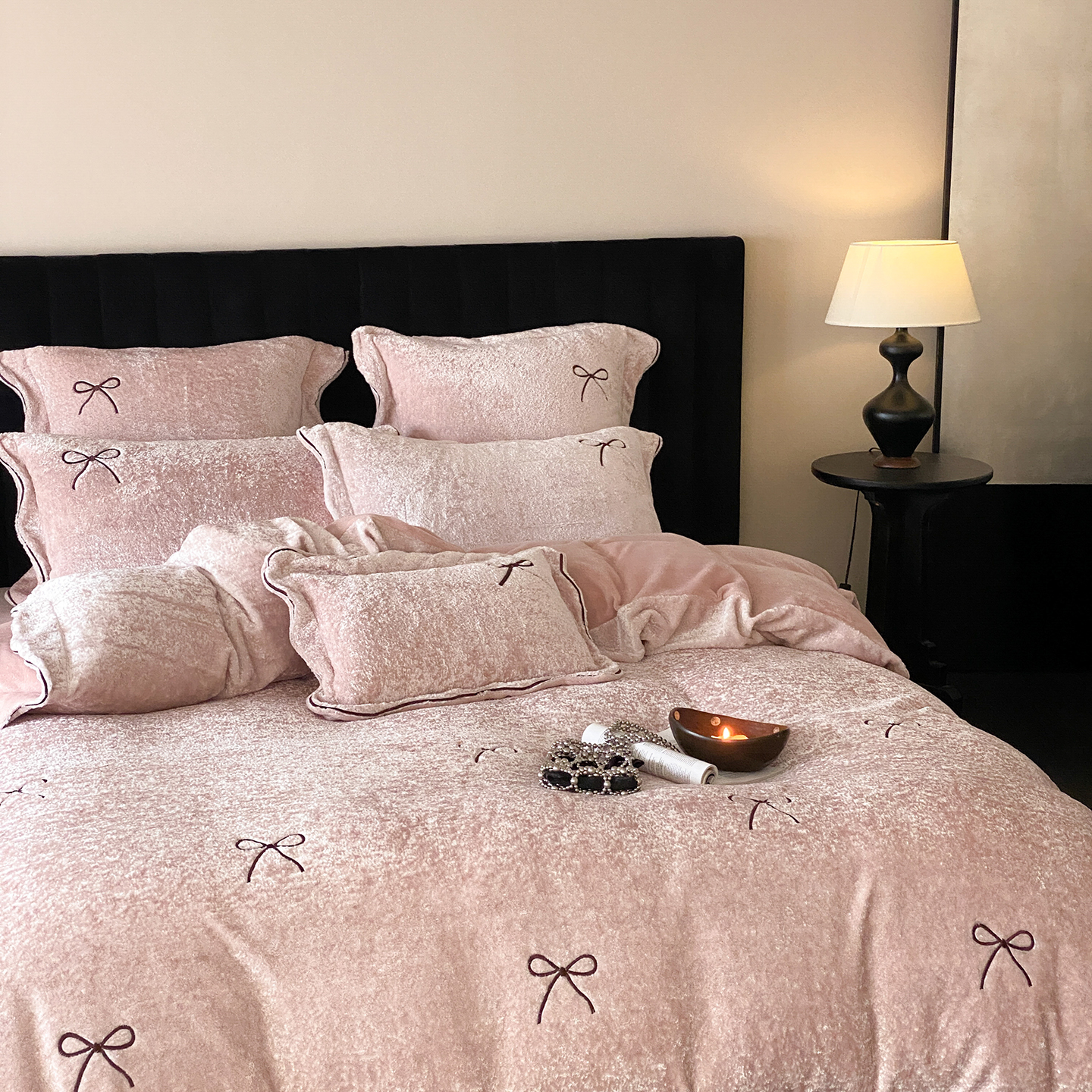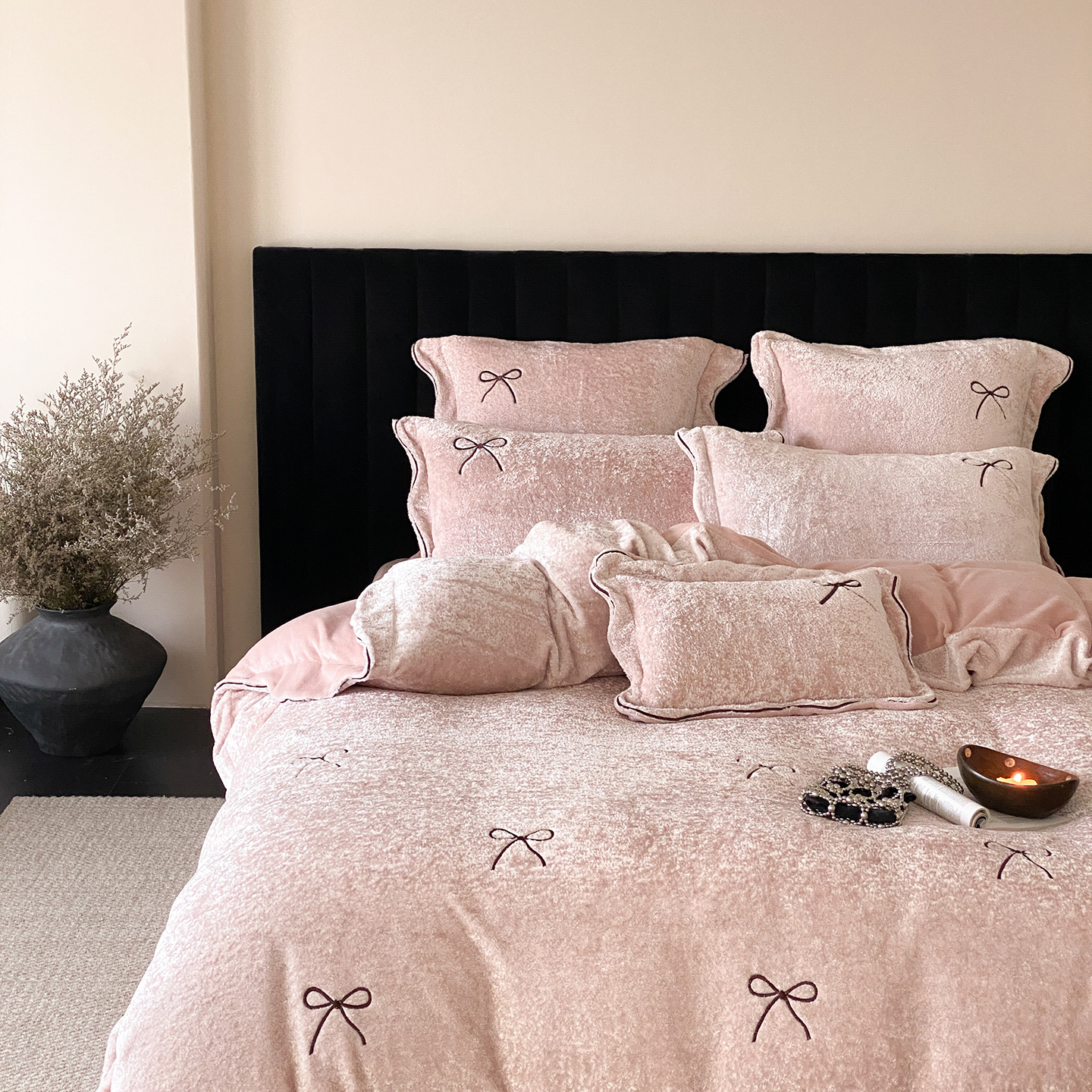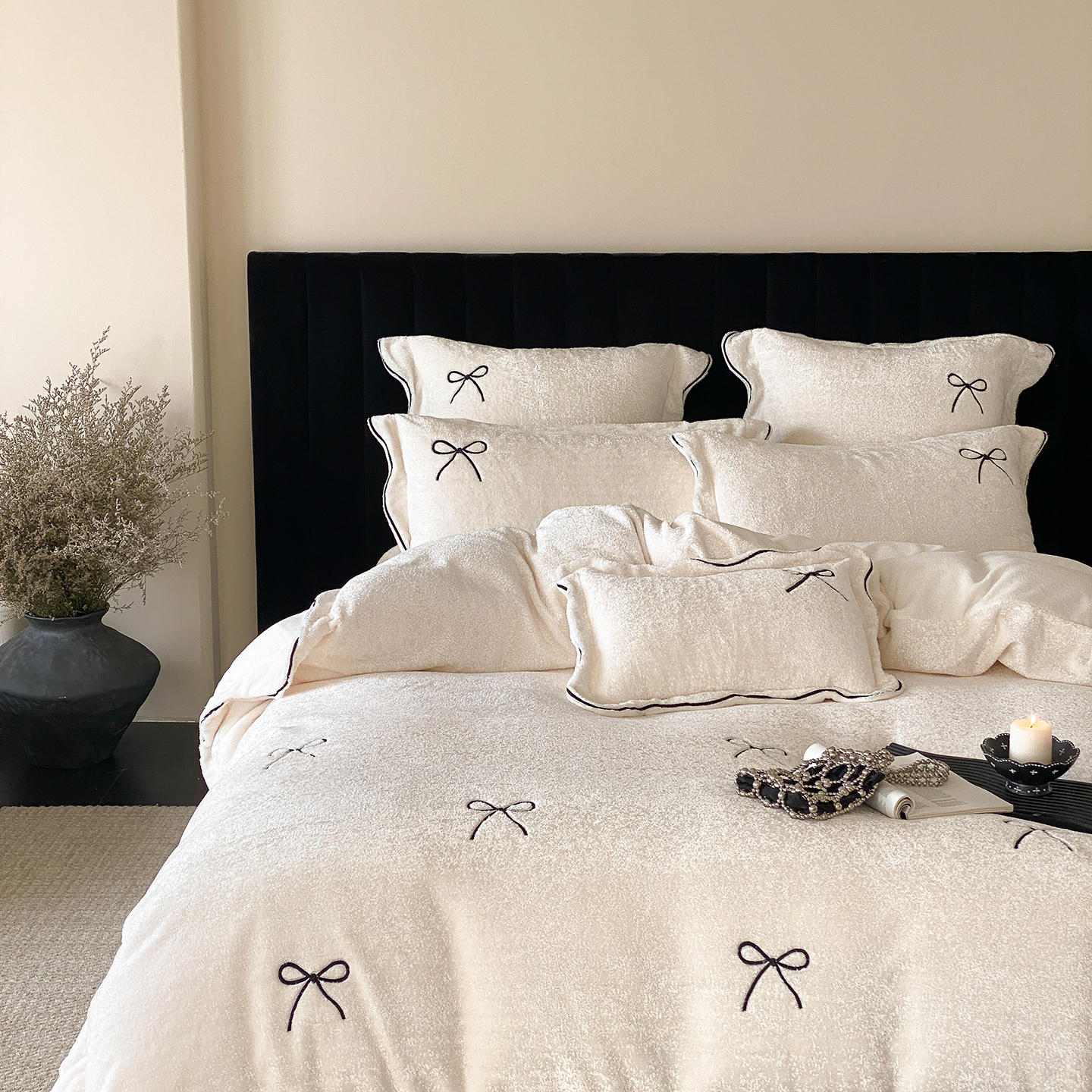 (总)星野 2025新款高克重牛奶绒贴布绣四件套-波点兔,波点兔