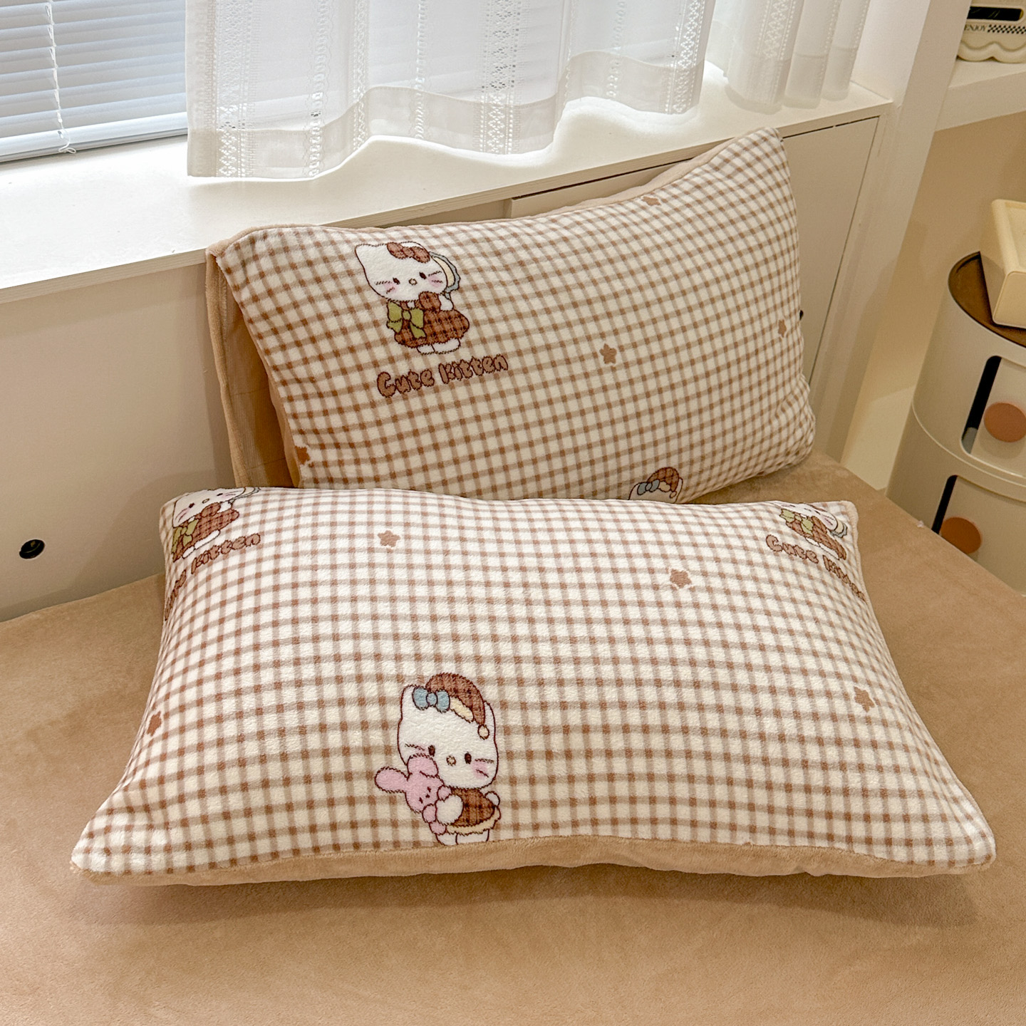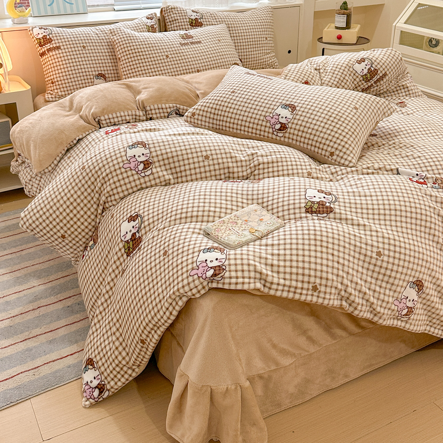梦莱斯 2025新款加厚保暖双面牛奶绒四件套 格子猫