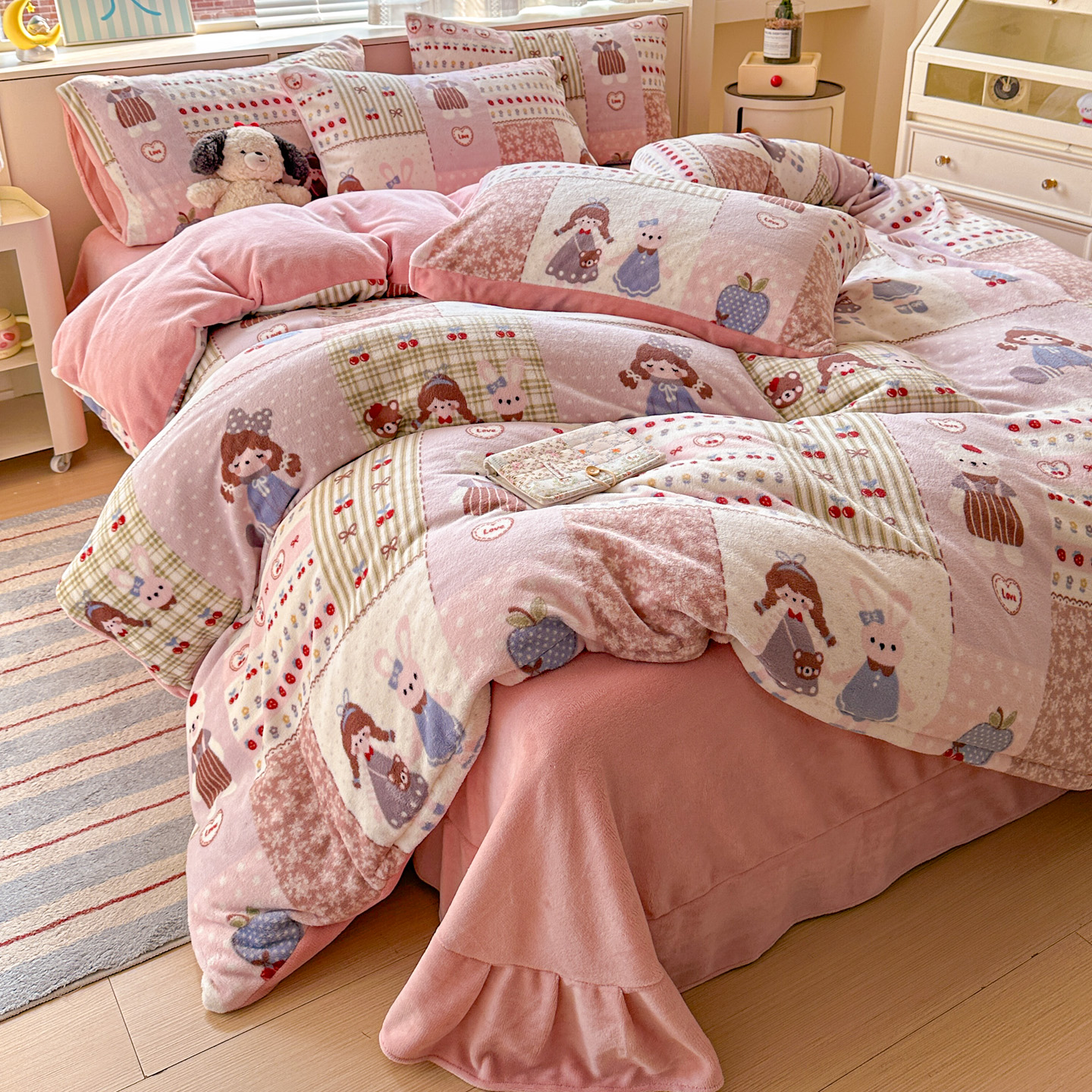 商品名称:梦莱斯 2025新款加厚保暖双面牛奶绒四件套 快乐女孩