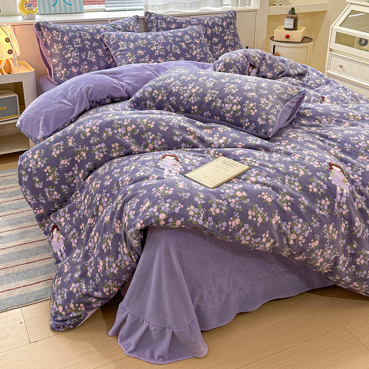 商品名称:梦莱斯 2025新款加厚保暖双面牛奶绒四件套 紫花萌境