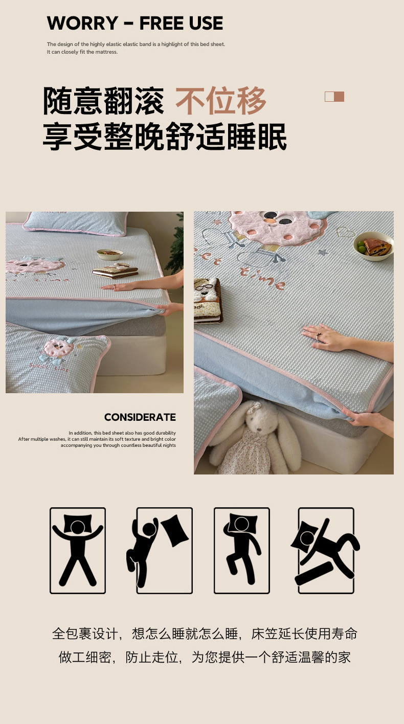 (总)Sweet dreams甜梦 2025新款A类纯色牛奶绒夹棉床笠,驼色,藏青,粉玉,米黄,浅灰,青石绿,清新绿,深灰,天蓝