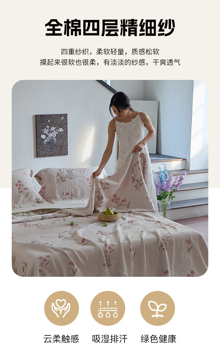 (总)沐瑟家纺 2025新款亲肤柔软全棉纱布中国风盖毯毯子,百花集,翠影鸟-蓝色,花想容,花鸟韵,蝶语-绿,蝶语-淡粉,花蝶-米,比翼鸟,墨葵,绮梦花