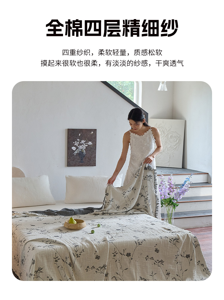 (总)沐瑟家纺 2025新款亲肤柔软全棉纱布中国风盖毯毯子,百花集,翠影鸟-蓝色,花想容,花鸟韵,蝶语-绿,蝶语-淡粉,花蝶-米,比翼鸟,墨葵,绮梦花