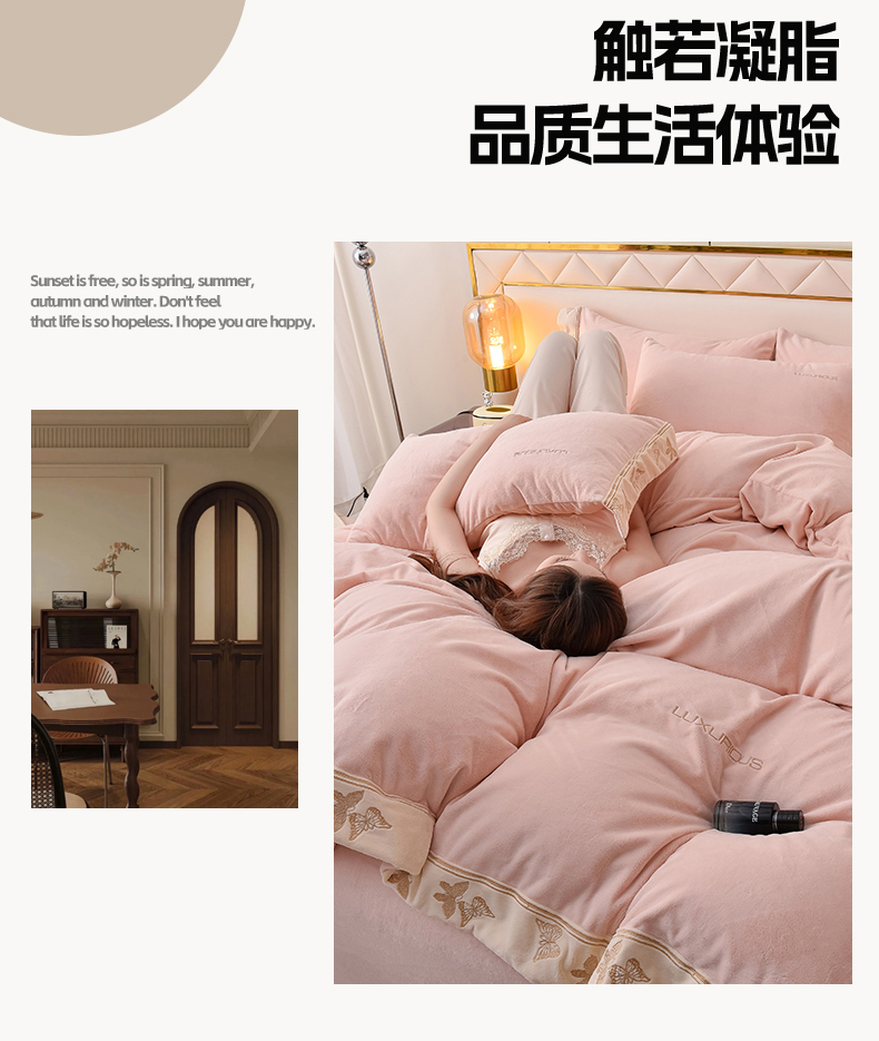 (总)米奈家居 2024新款A类牛奶雕花绒四件套-瑞丽,巴赫(卡其),巴赫(紫粉),花漾(淡雅粉),花漾(香槟),水墨(豆沙),水墨(卡其),邂逅(咖色),邂逅(绿色)