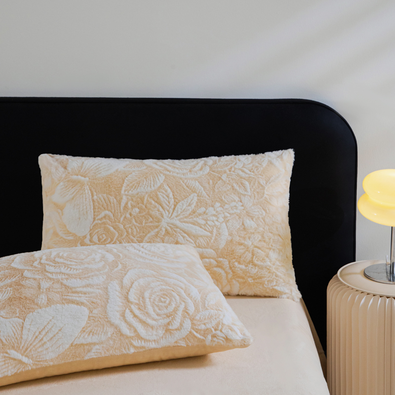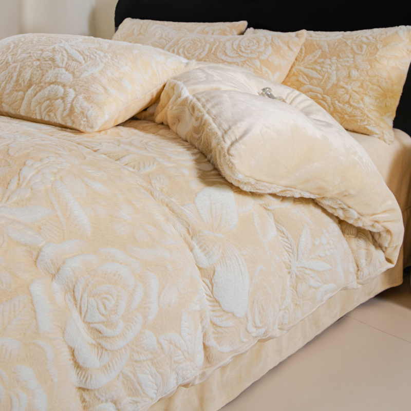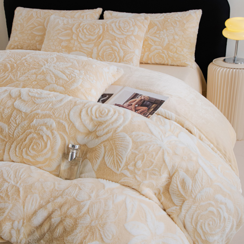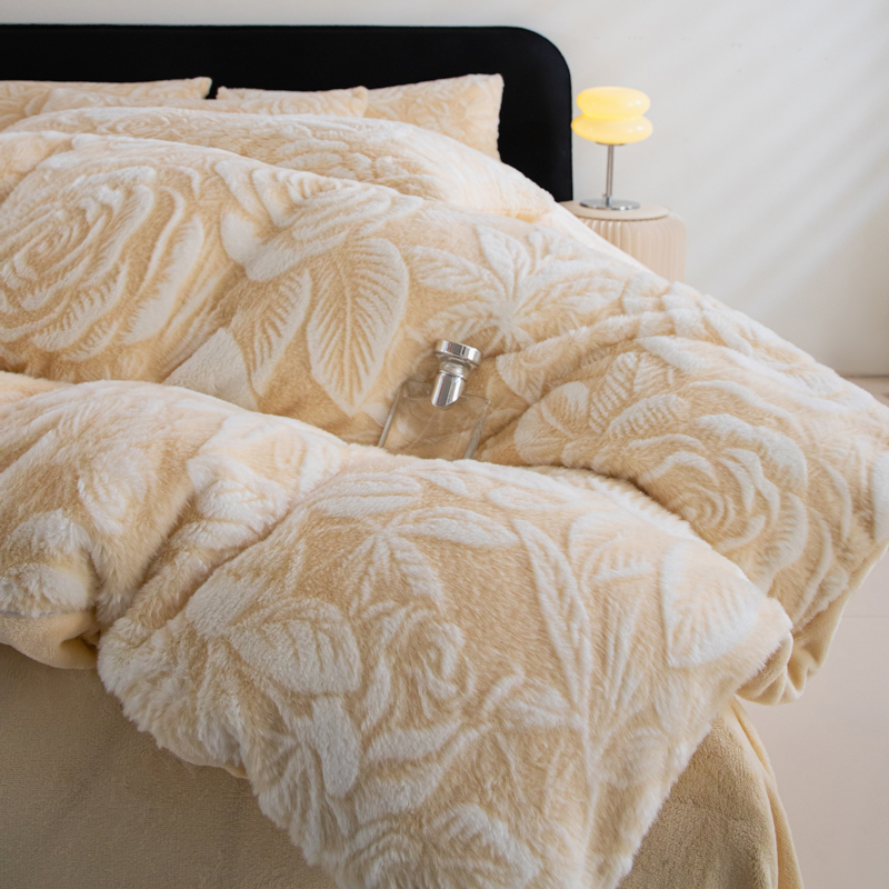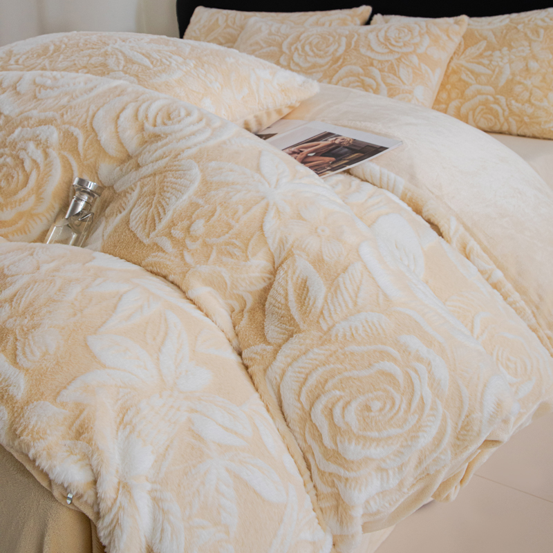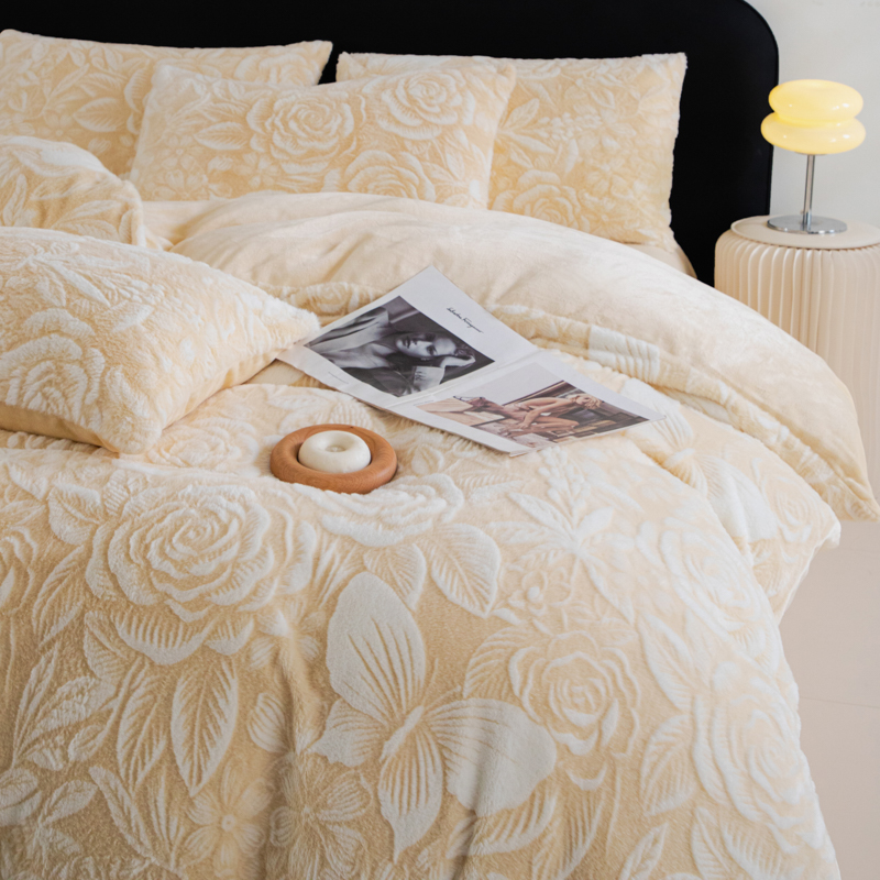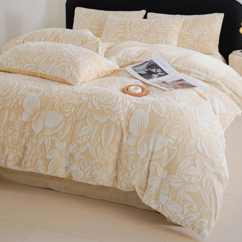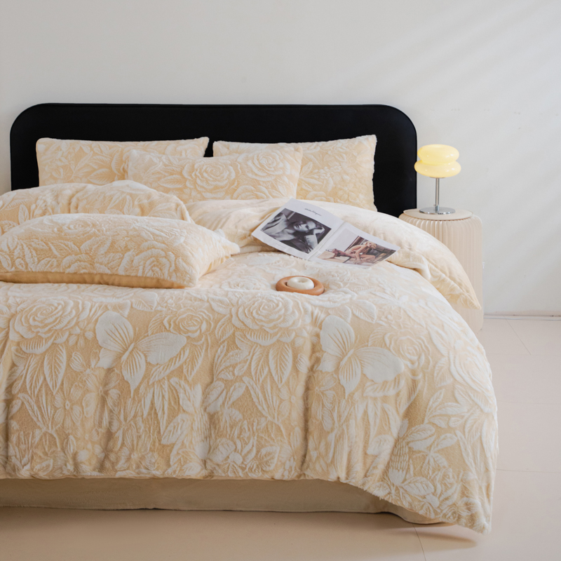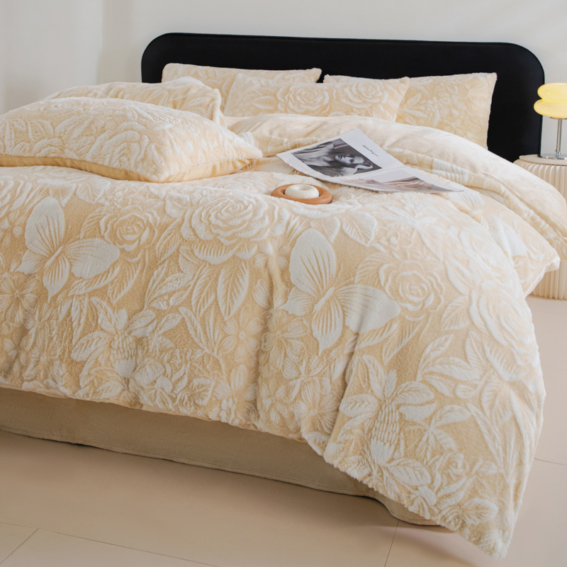 诺梵家纺 2025新款立体兔毛烂花四件套 蝶梦-黄