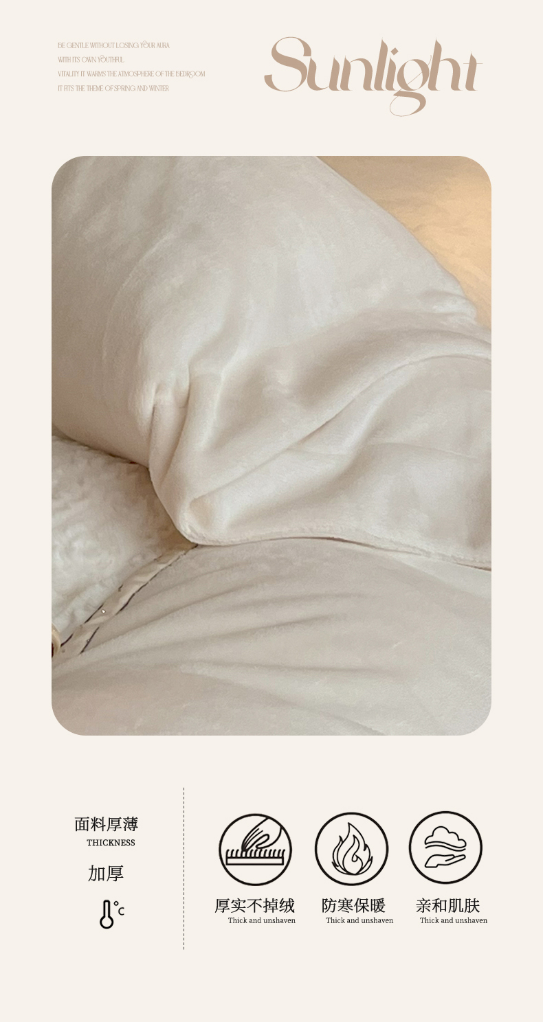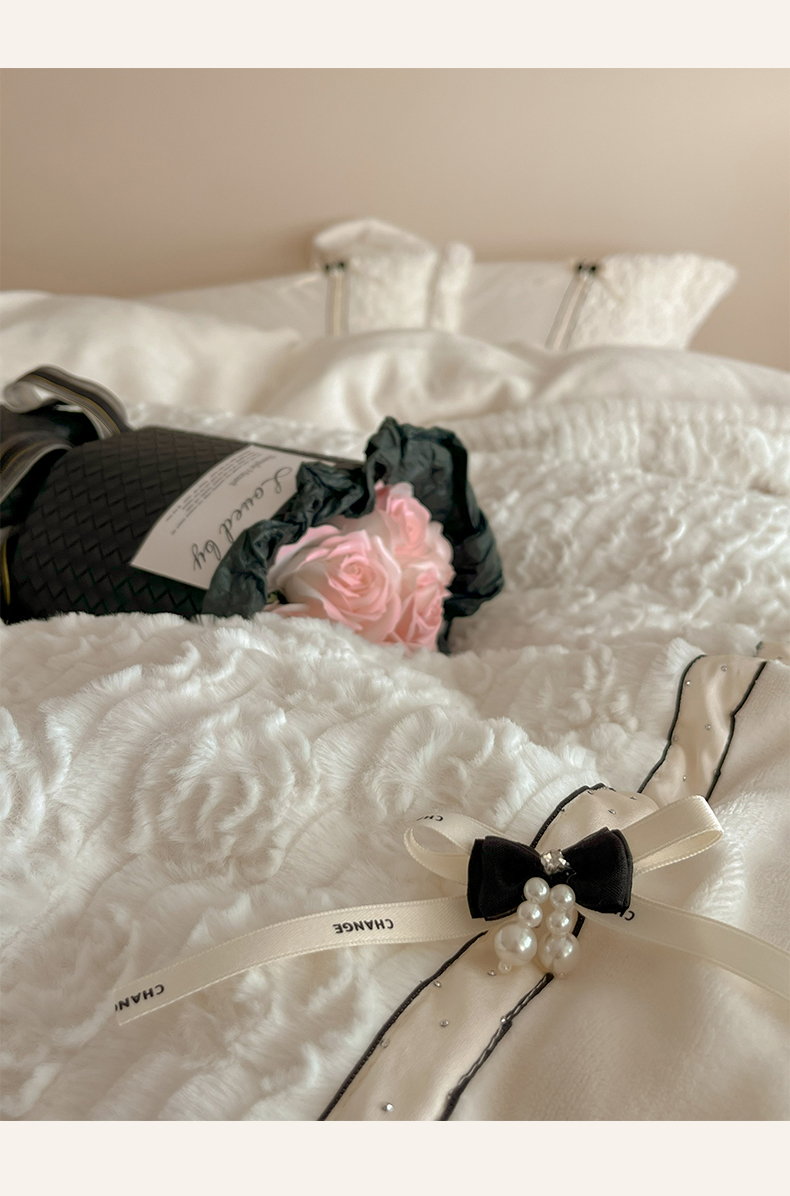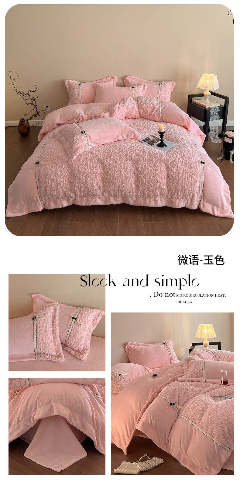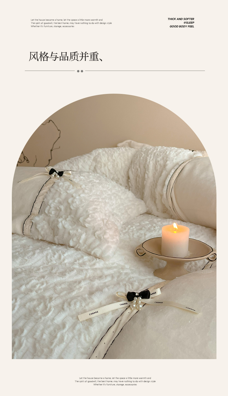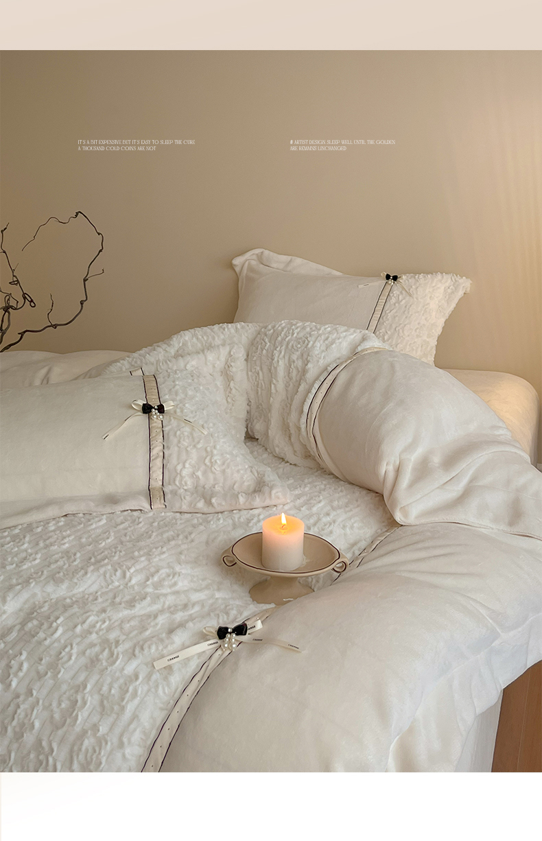 蓝邻家纺 2025新款提花兔绒双拼织带款四件套-微语系列 微语-米白