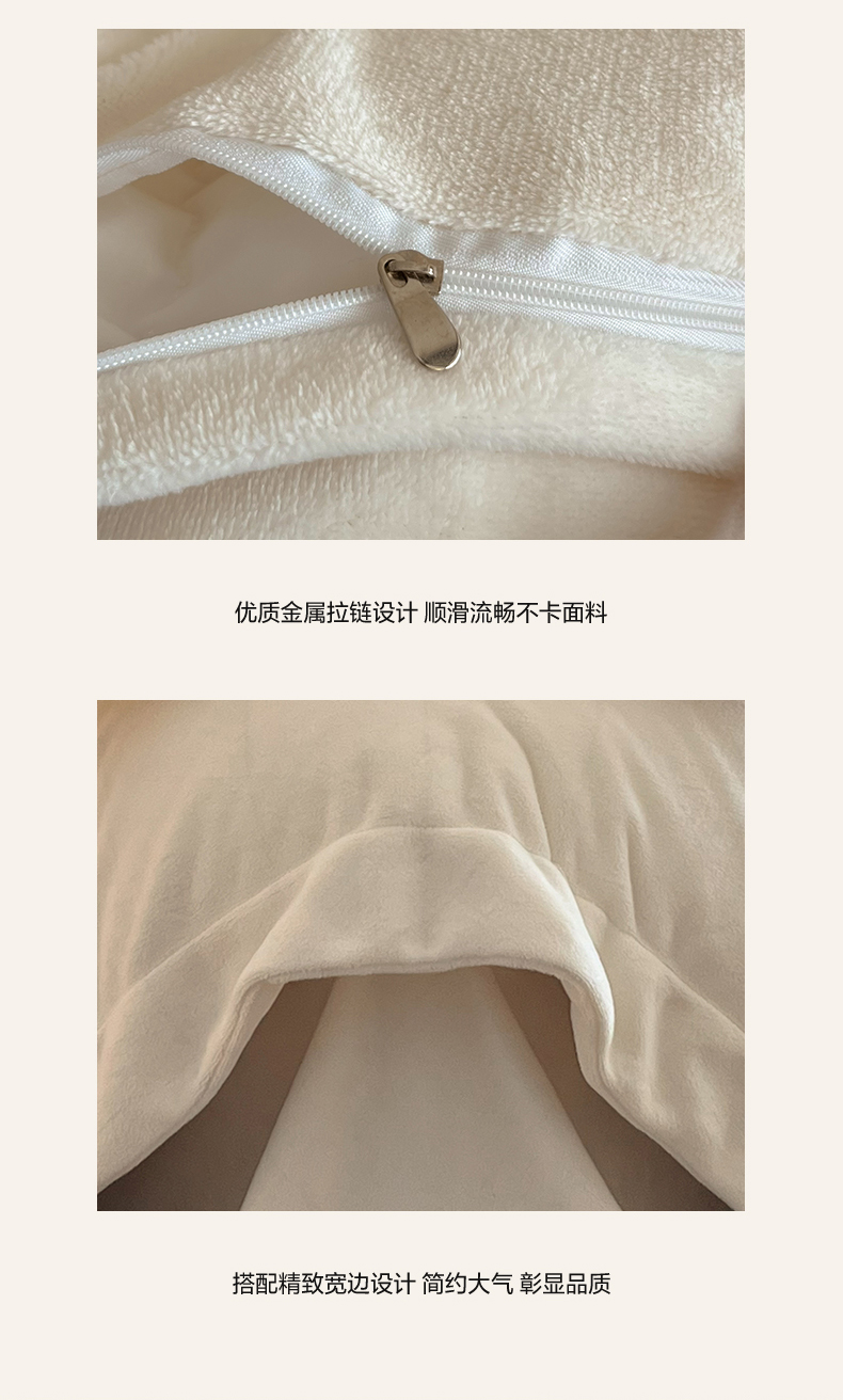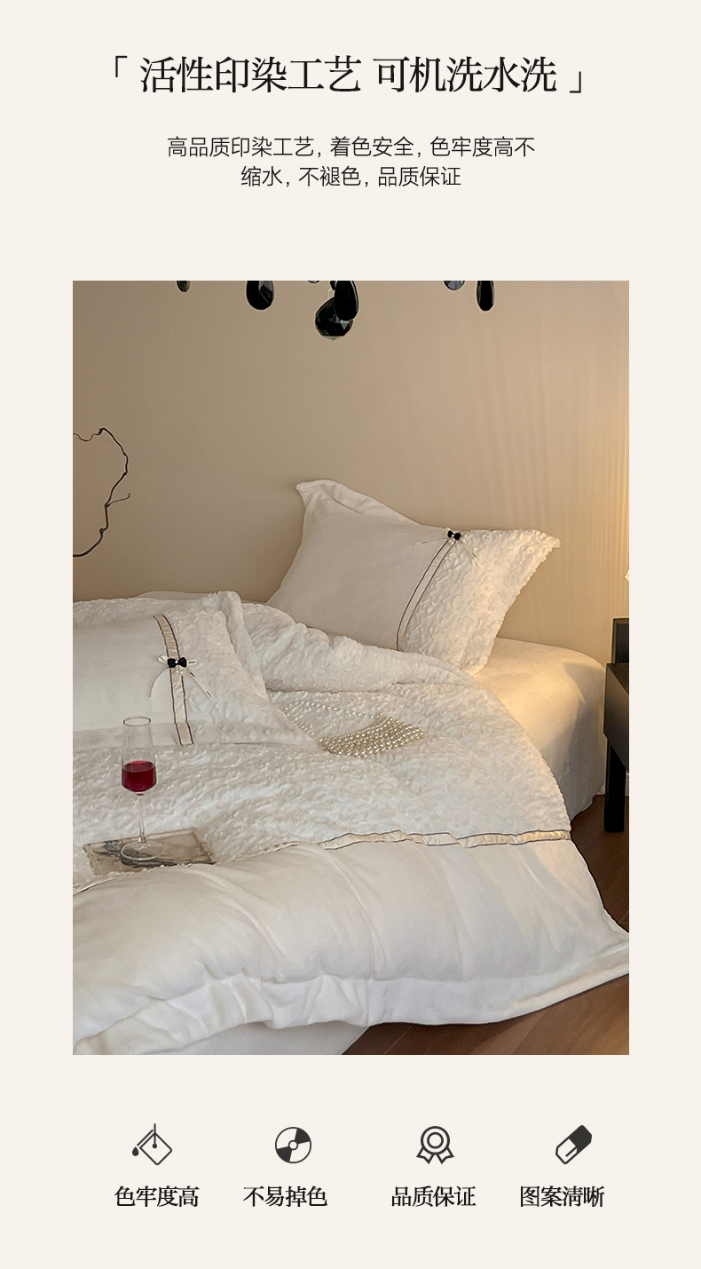 商品名称:蓝邻家纺 2025新款提花兔绒双拼织带款四件套-微语系列 微语-米白