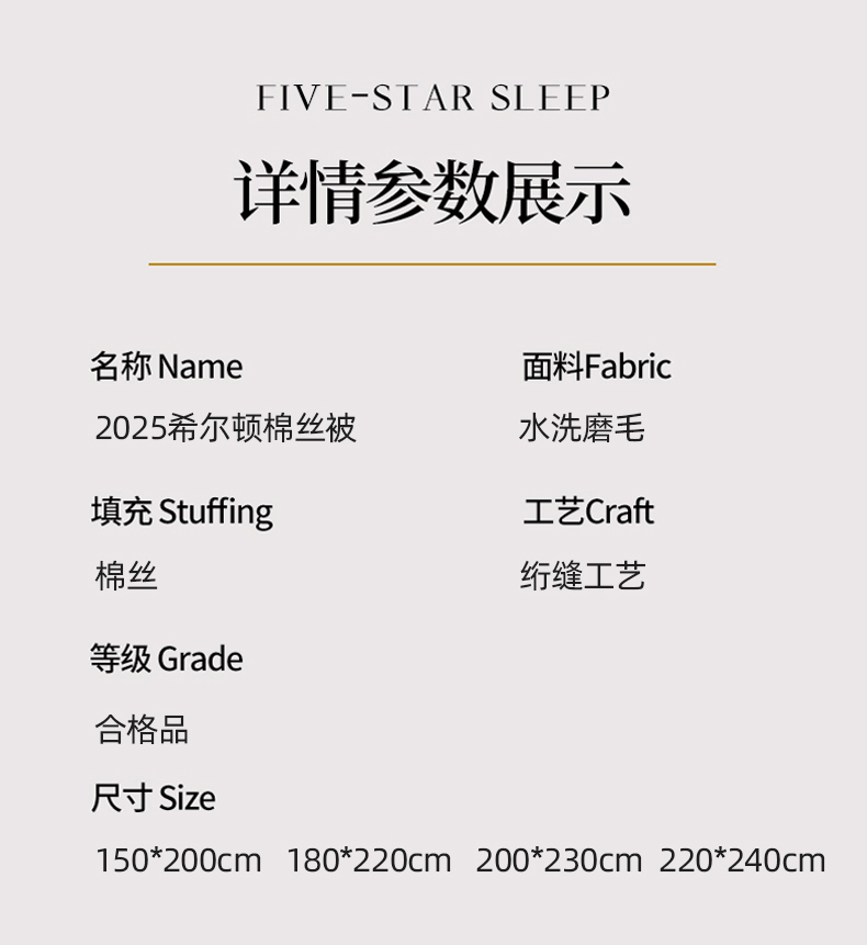 寝美资家居 2025新款棉丝被子被芯-希尔顿 希尔顿-豆沙
