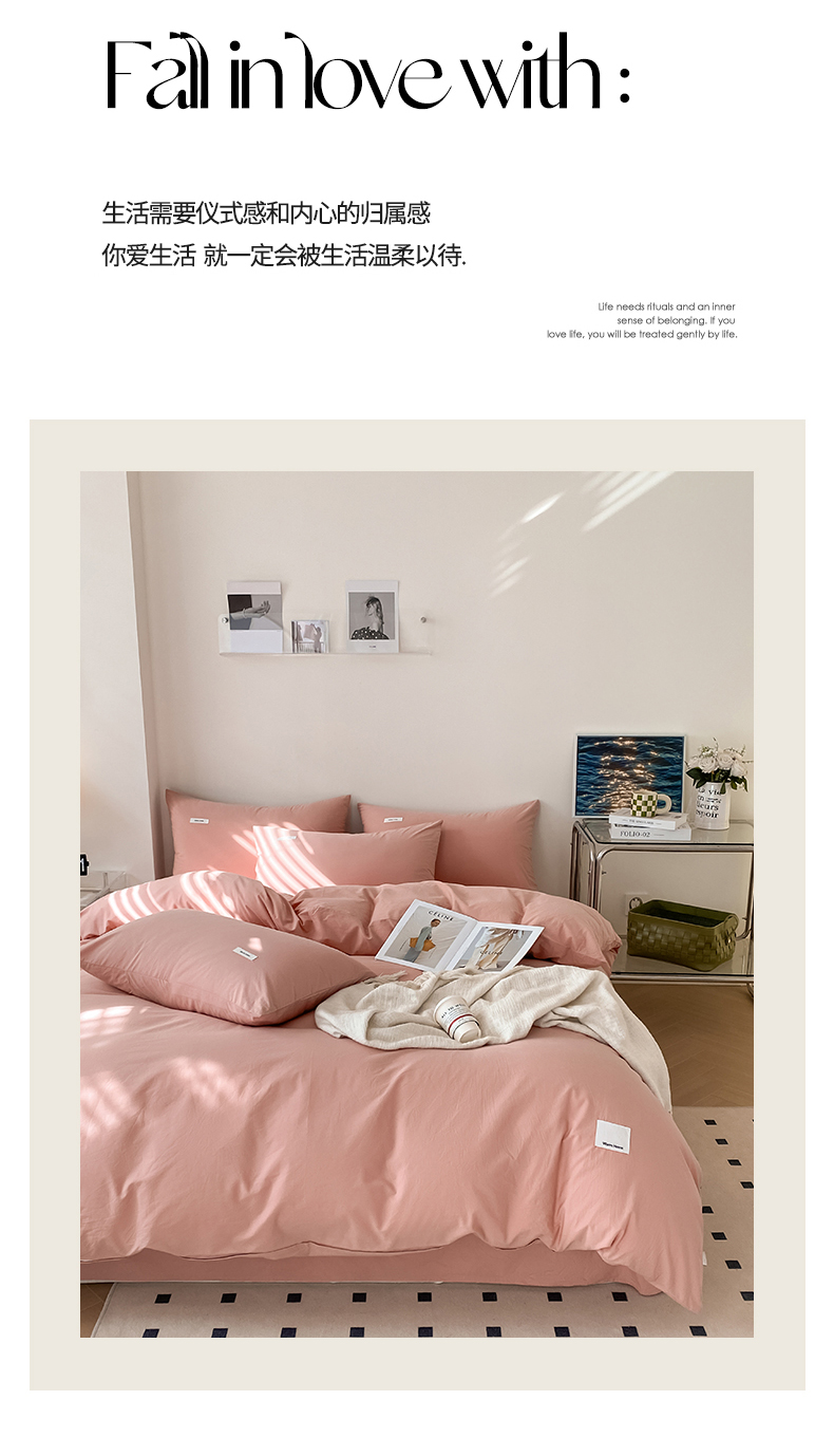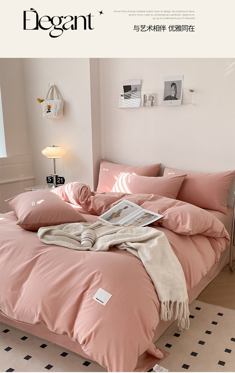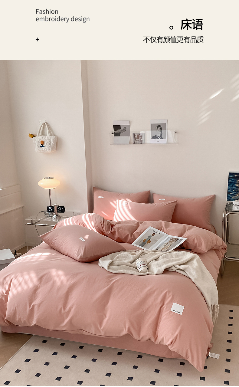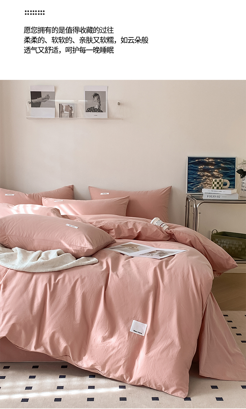 当前位置: 91家纺网 > 商品网购 > 床品套件 > 四件套 > 全棉普通四件套 > 蓝邻家纺 2025新款A类全棉纯棉水洗棉纯色贴标系列四件套-风格二 公主粉