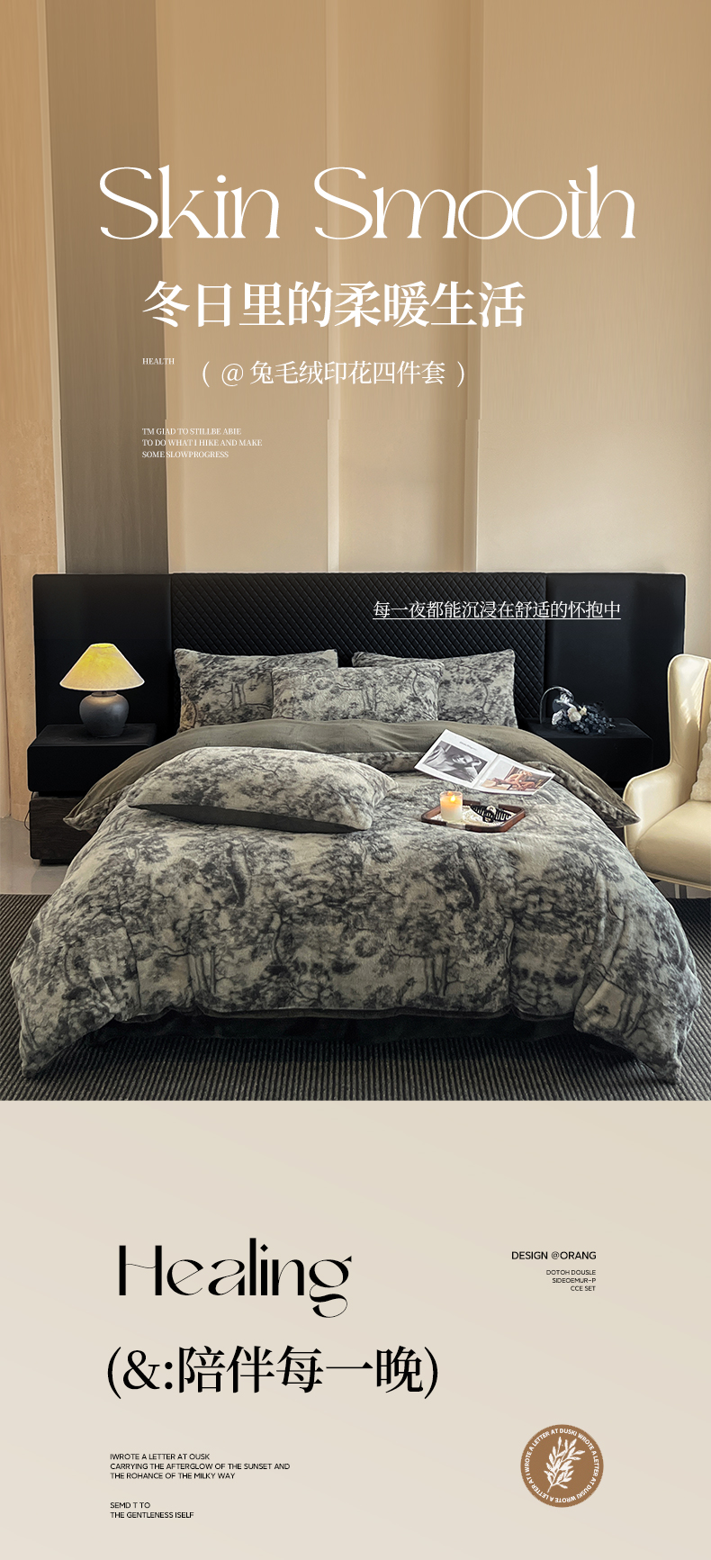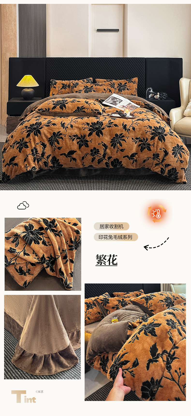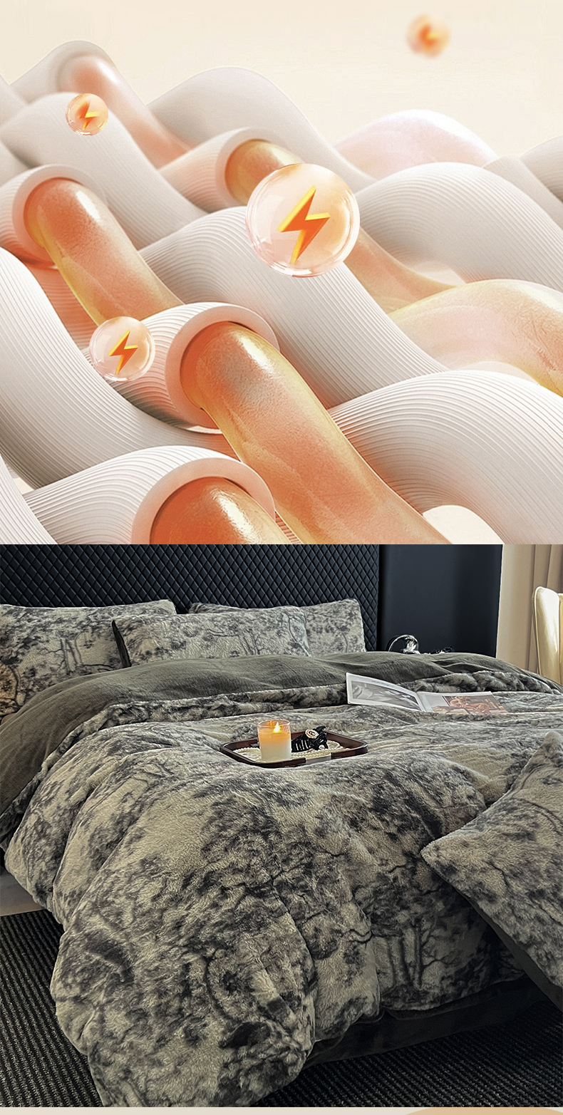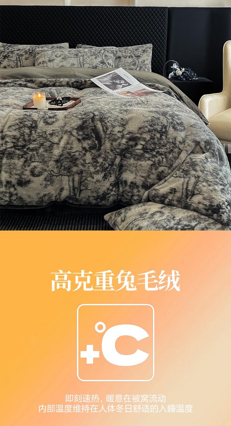 商品名称:民新家纺 2025新款兔毛绒印花简约款四件套 简约款-暖秋