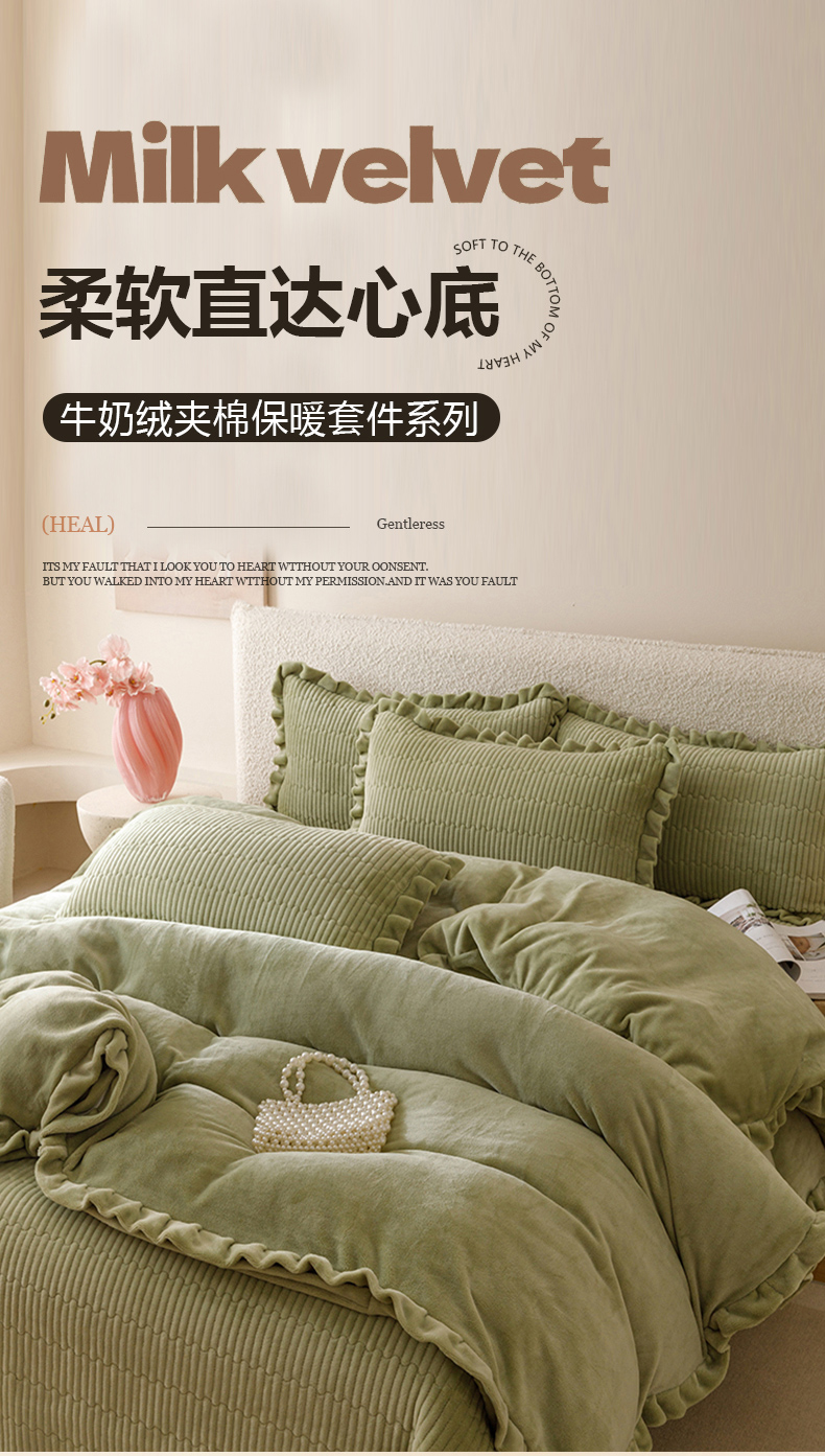 当前位置: 91家纺网 > 商品网购 > 床品套件 > 四件套 > 牛奶绒四件套 > 沐晴家纺 2025新款纯色牛奶绒法式床盖四件套花边床盖三件套单被套 雾霾蓝