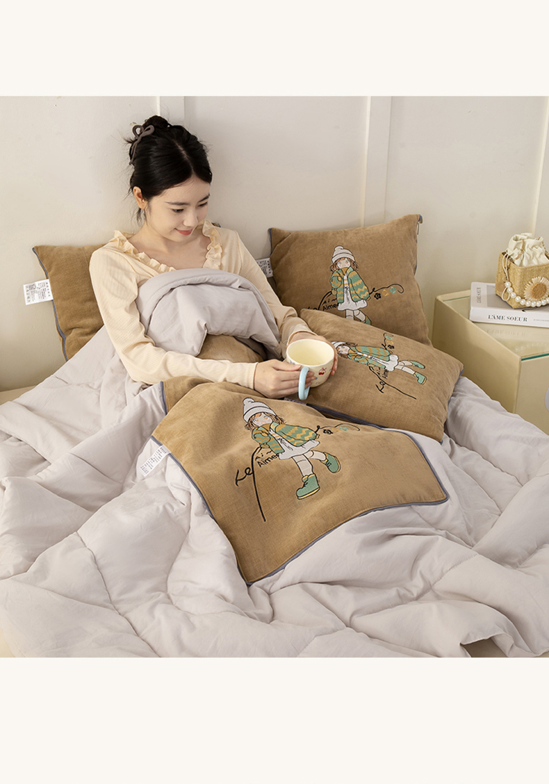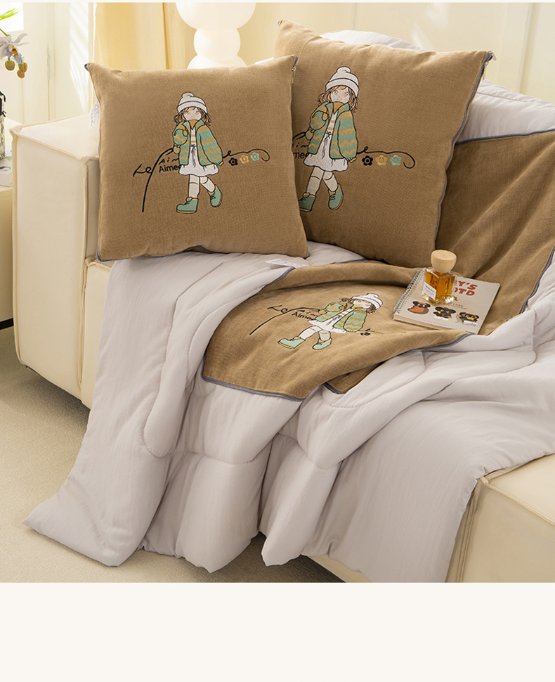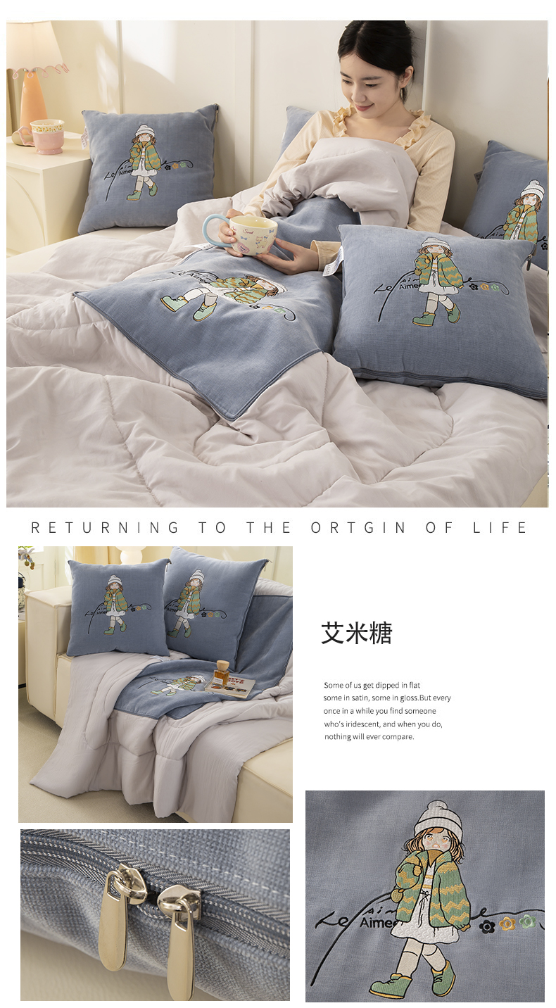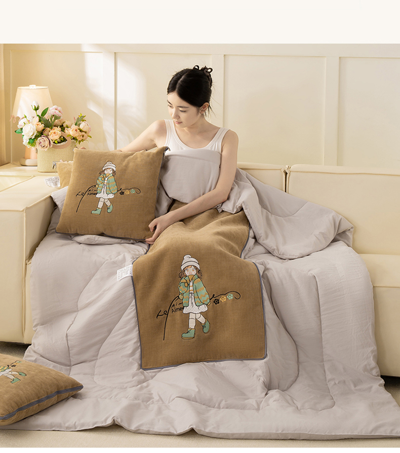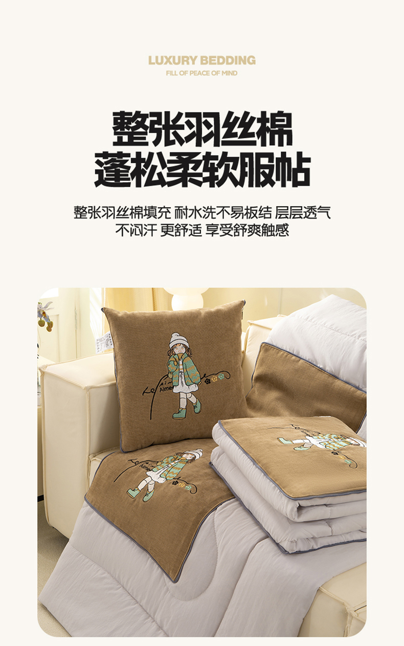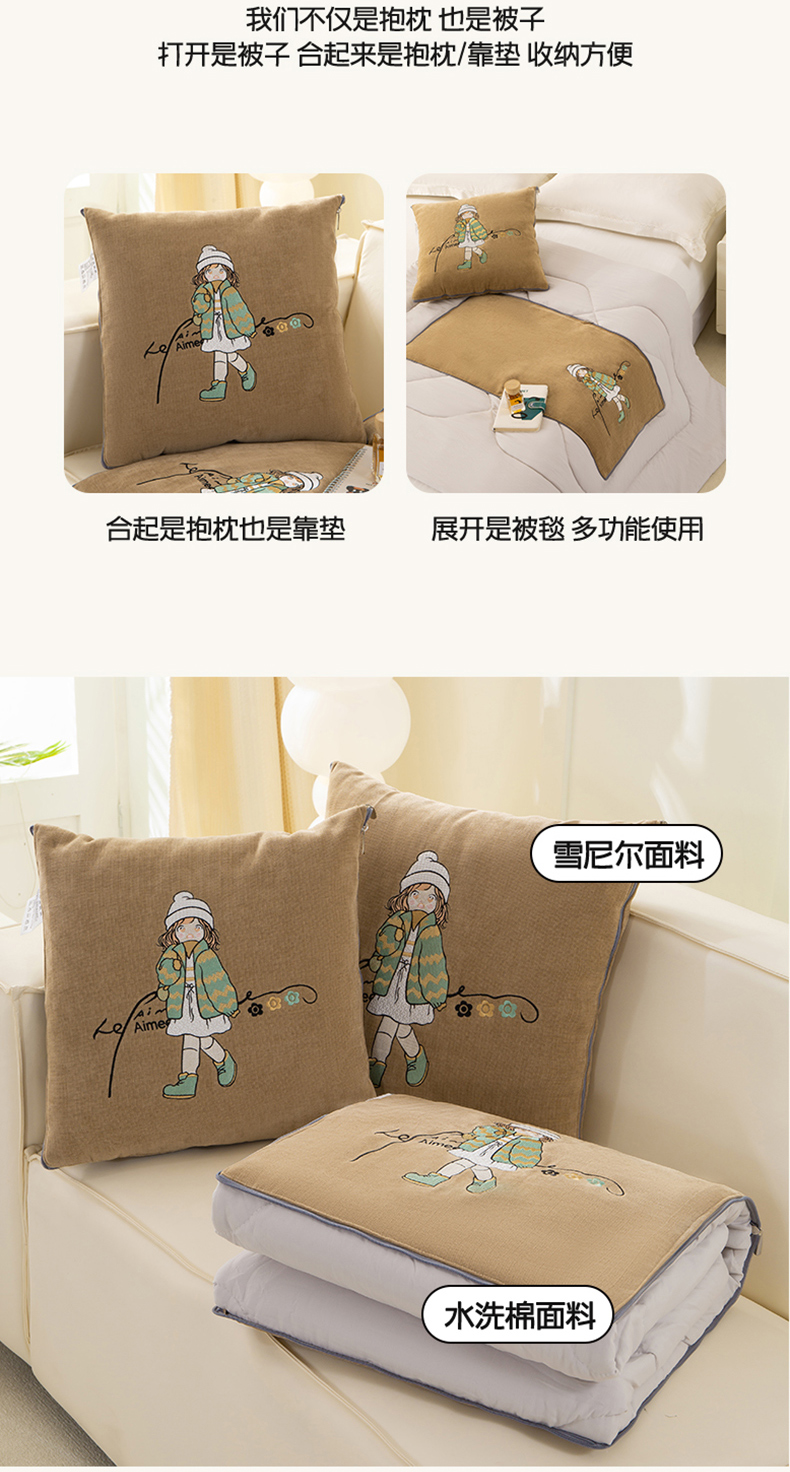 多今家纺 2025新款水洗棉雪尼尔刺绣抱枕被子-艾米糖系列 艾米糖-后土黄