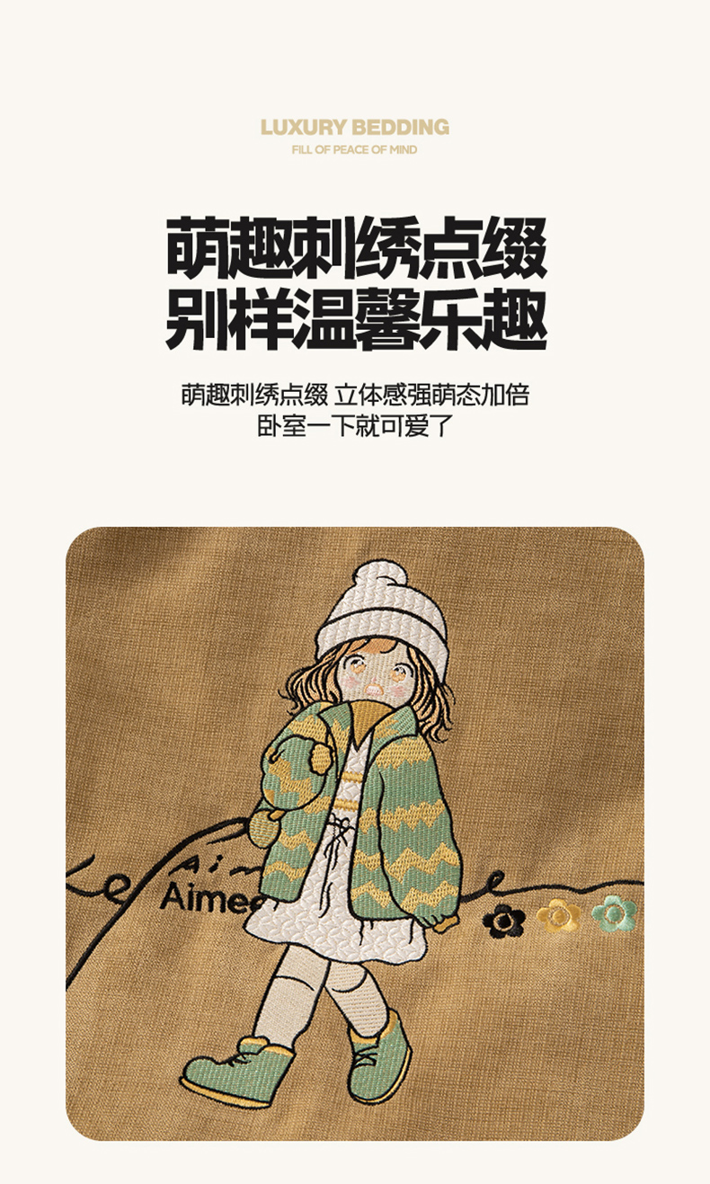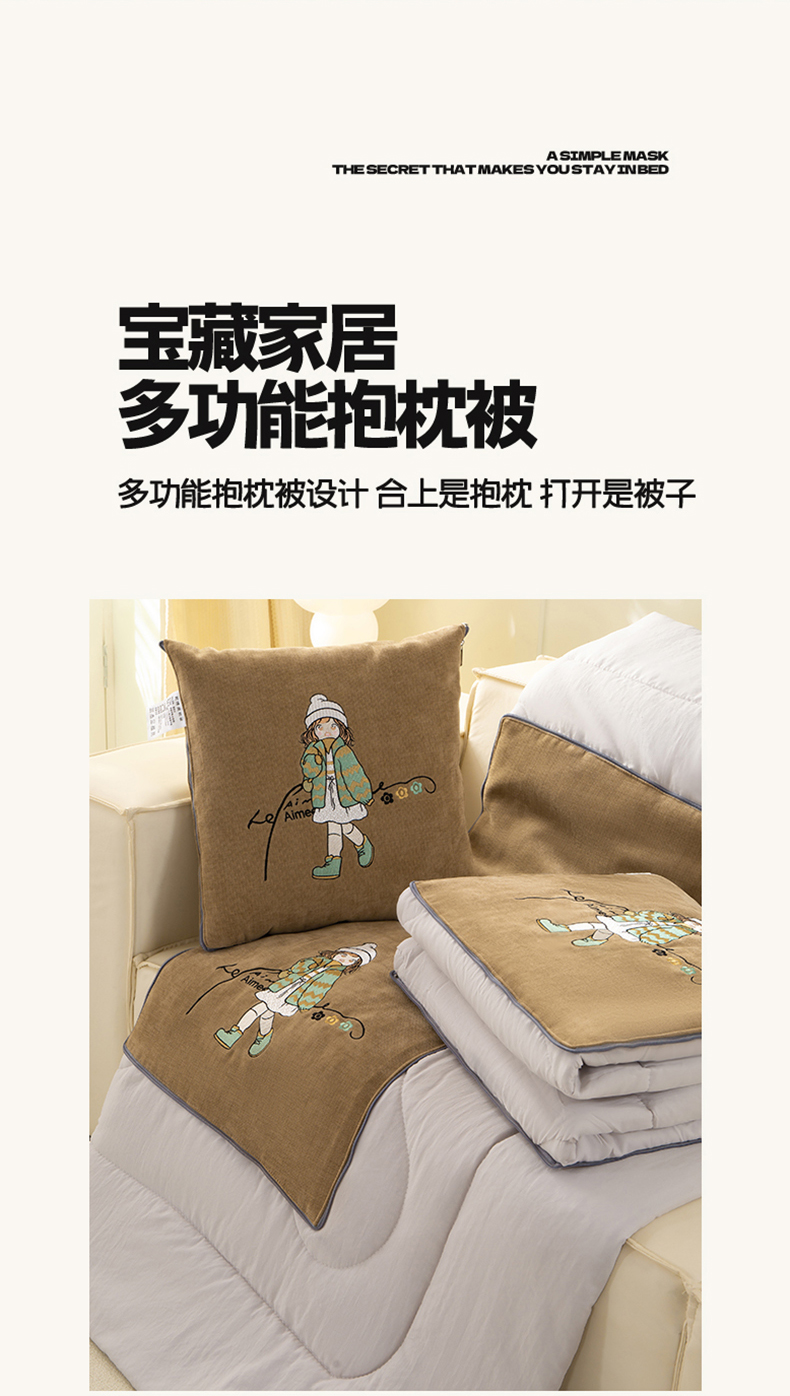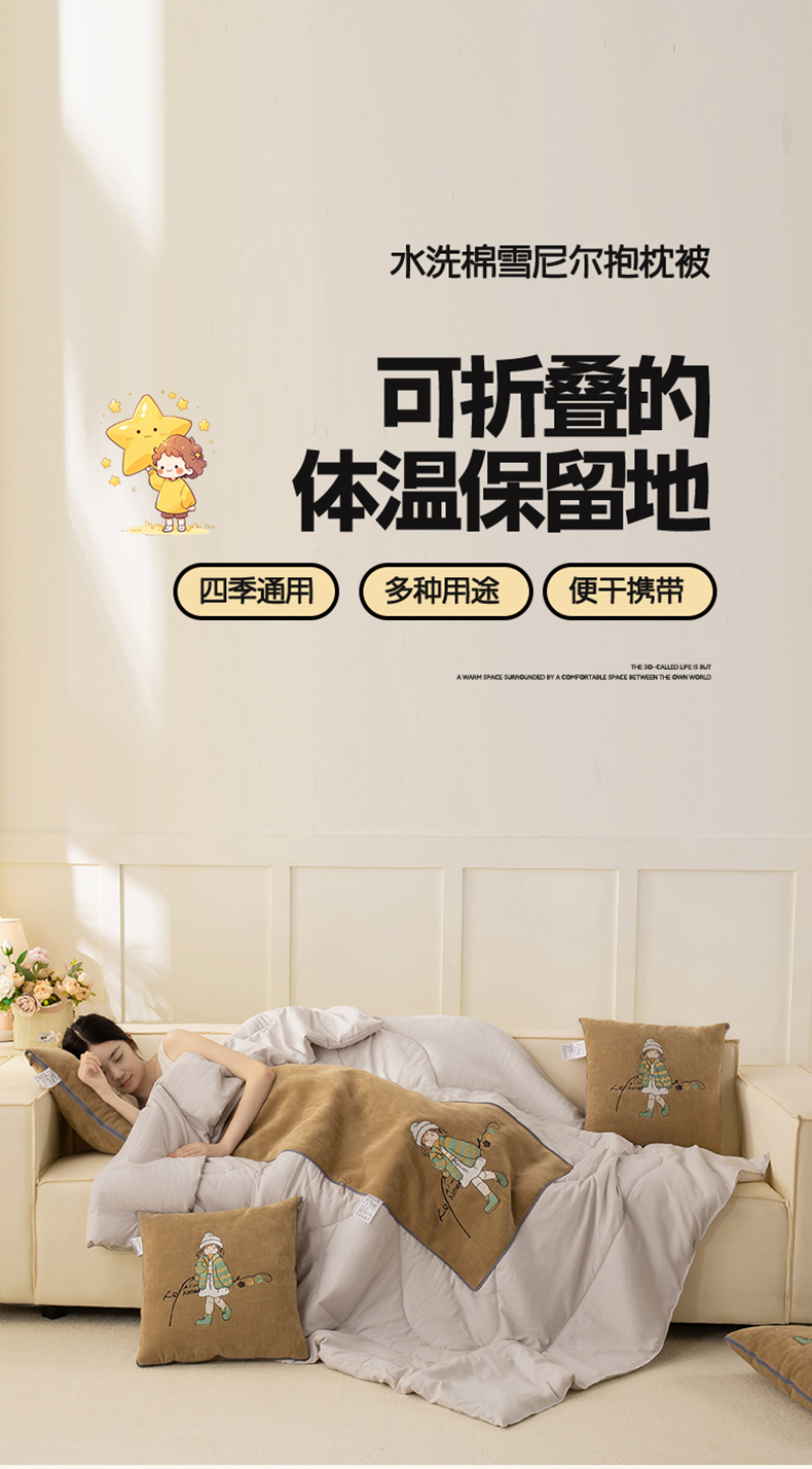 商品名称:多今家纺 2025新款水洗棉雪尼尔刺绣抱枕被子-艾米糖系列 艾米糖-后土黄