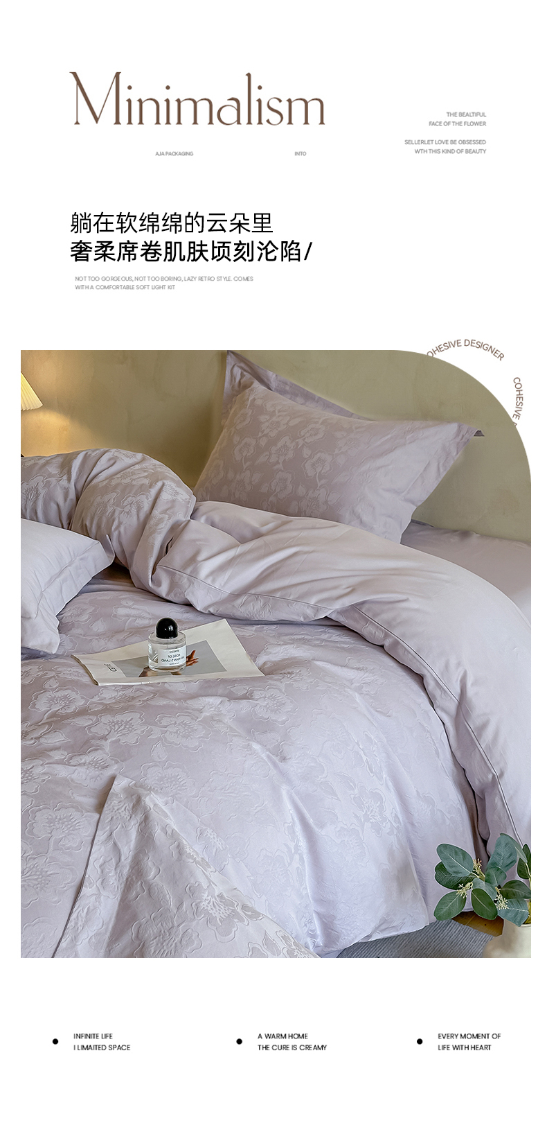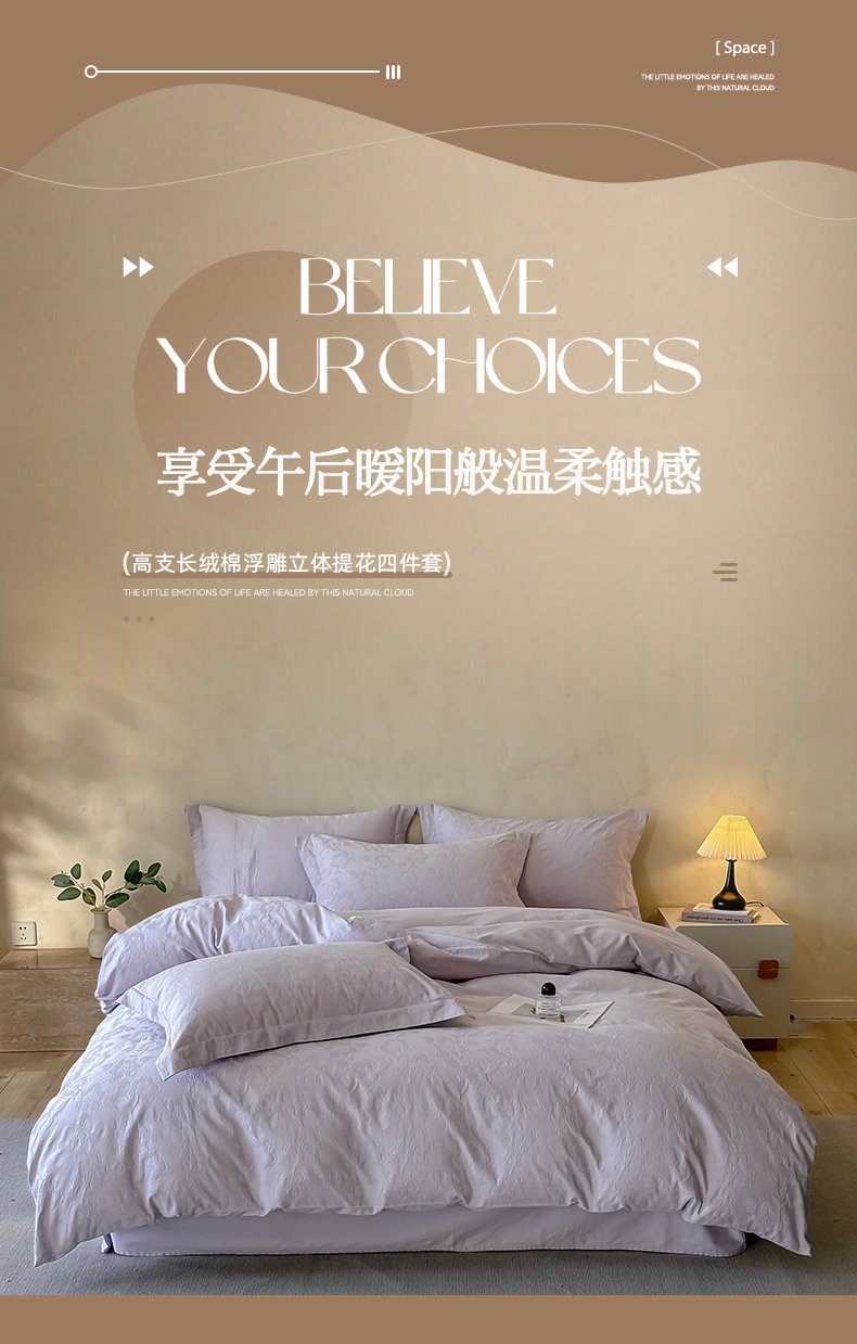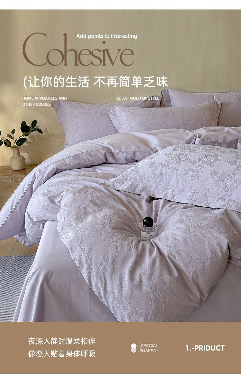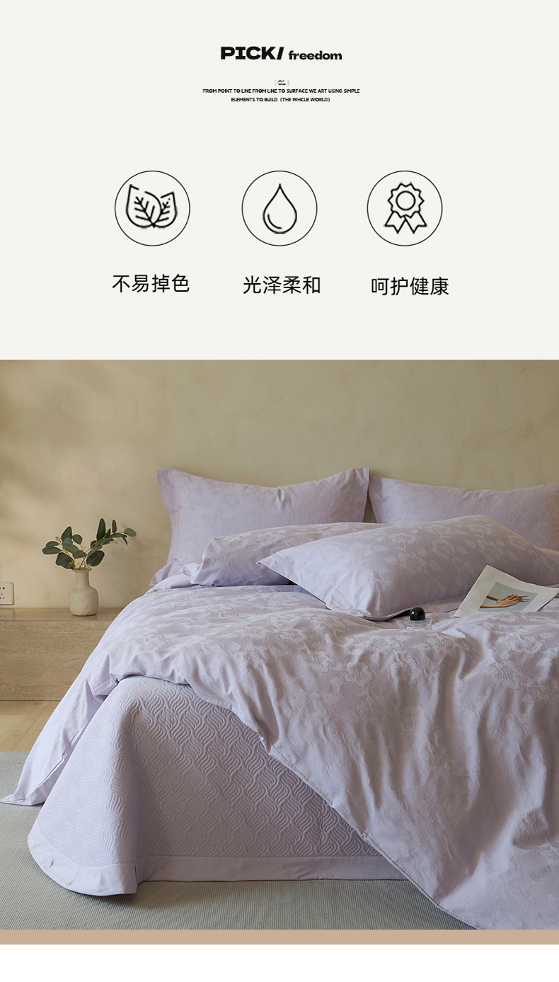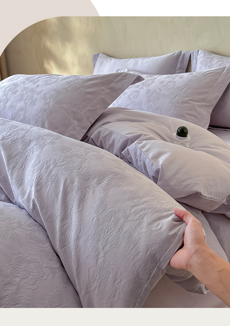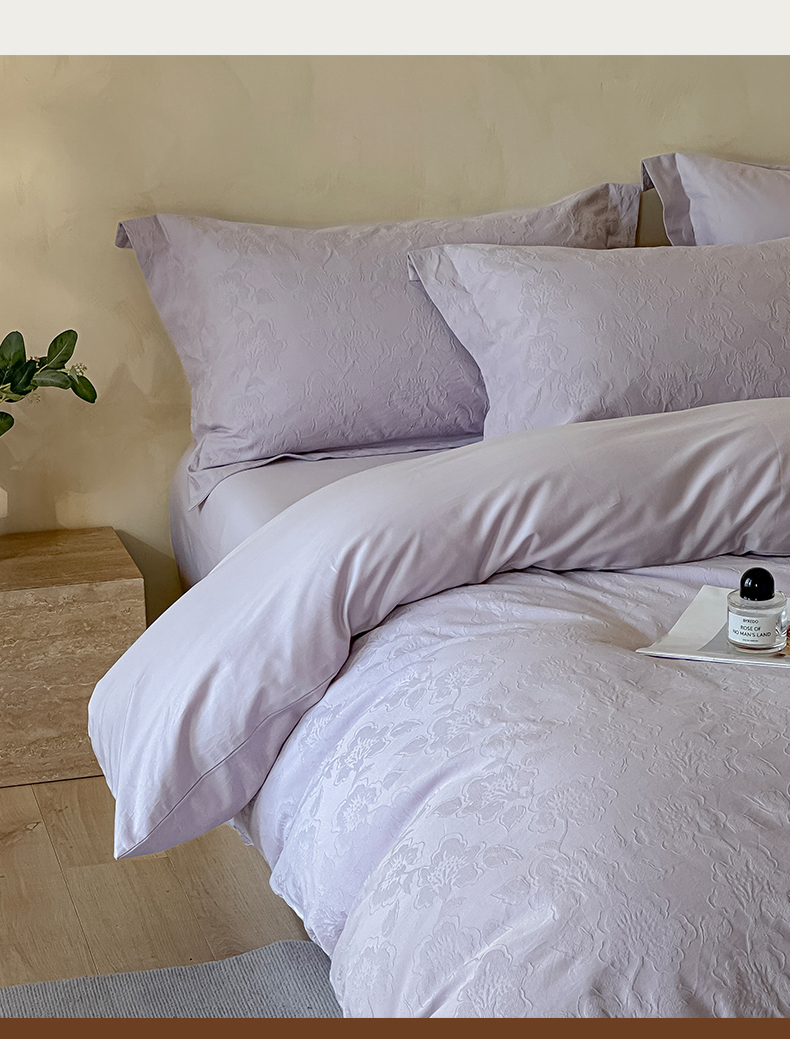 当前位置: 91家纺网 > 商品网购 > 床品套件 > 四件套 > 其它四件套 > 禾时 2025新款轻奢高支浮雕立体提花床盖款四件套 兰亭(淡雅紫)