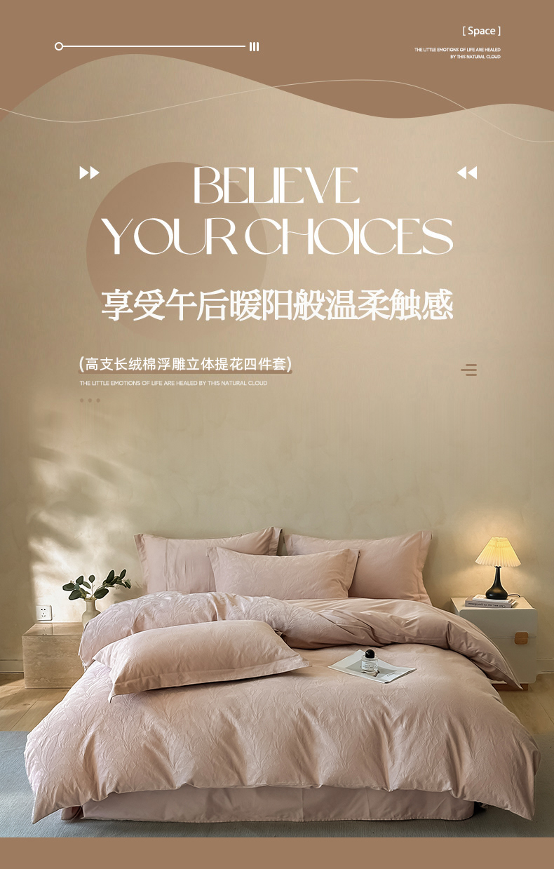当前位置: 91家纺网 > 商品网购 > 床品套件 > 四件套 > 其它四件套 > 禾时 2025新款轻奢高支浮雕立体提花床盖款四件套 威廉(藕粉)