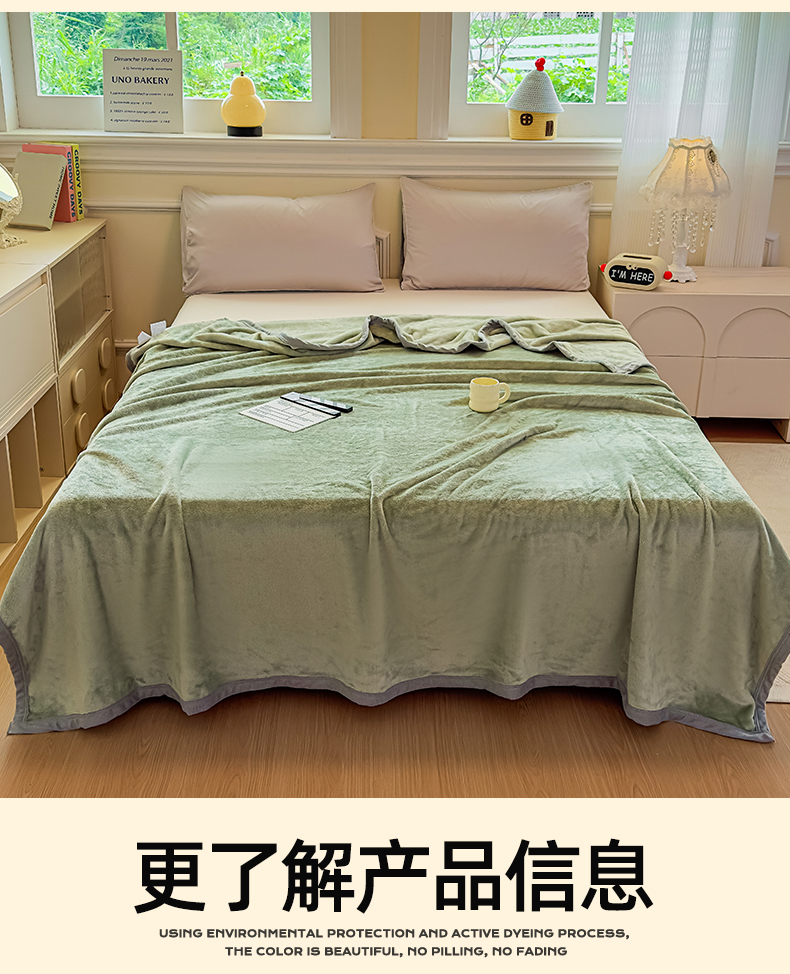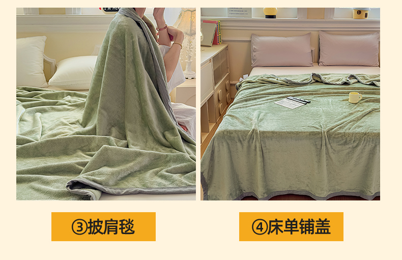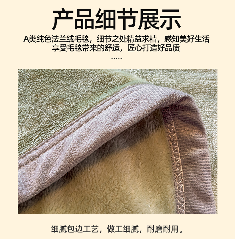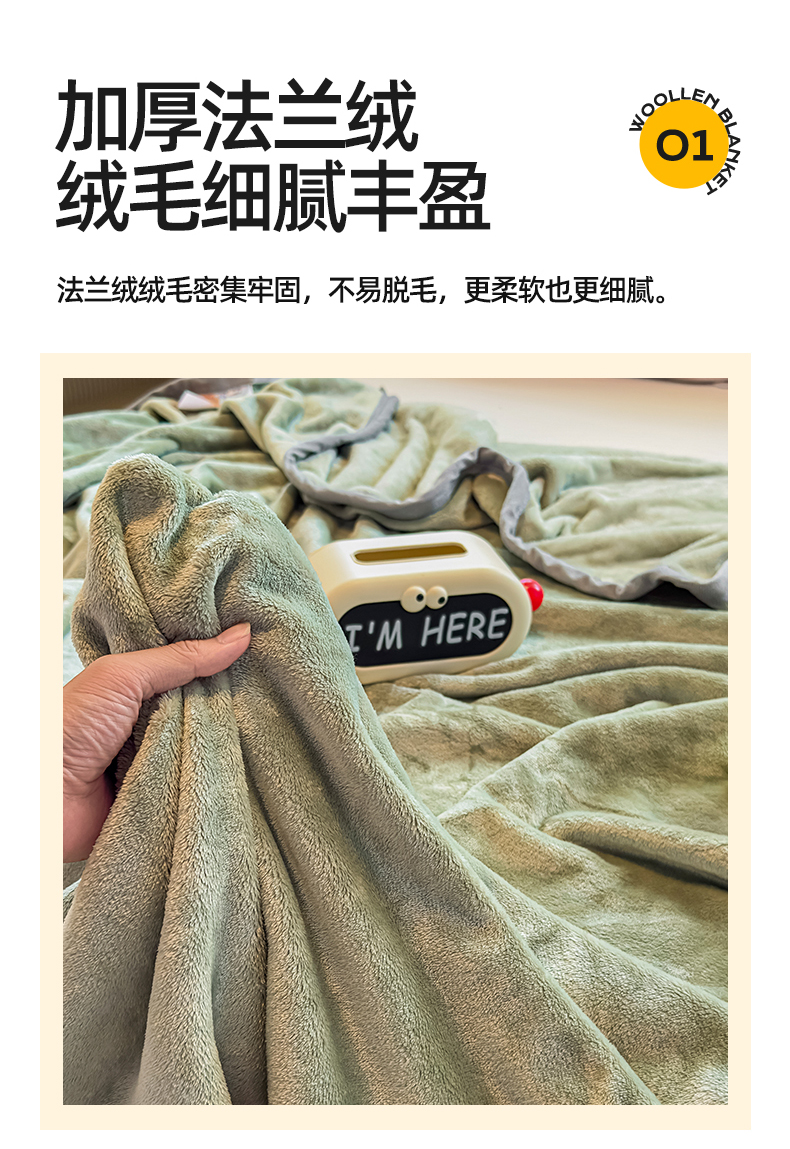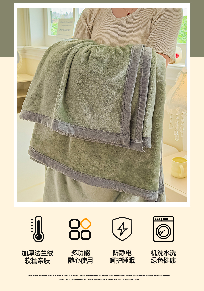 商品名称:予梦家纺 2025新款320g高克重加厚法兰绒毛毯办公室午休毯 松柏绿
