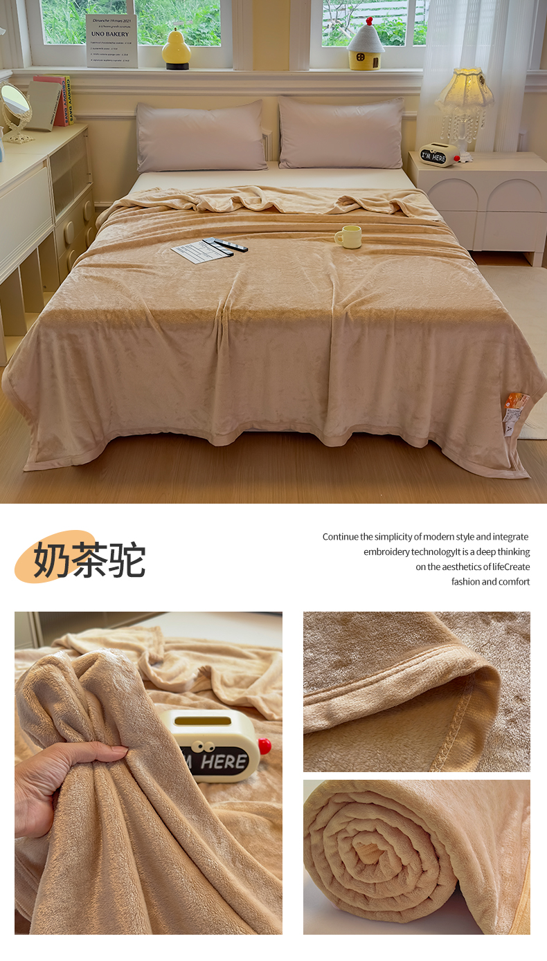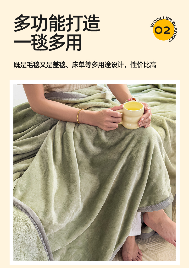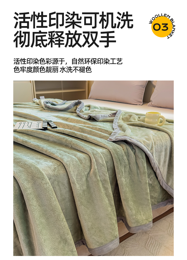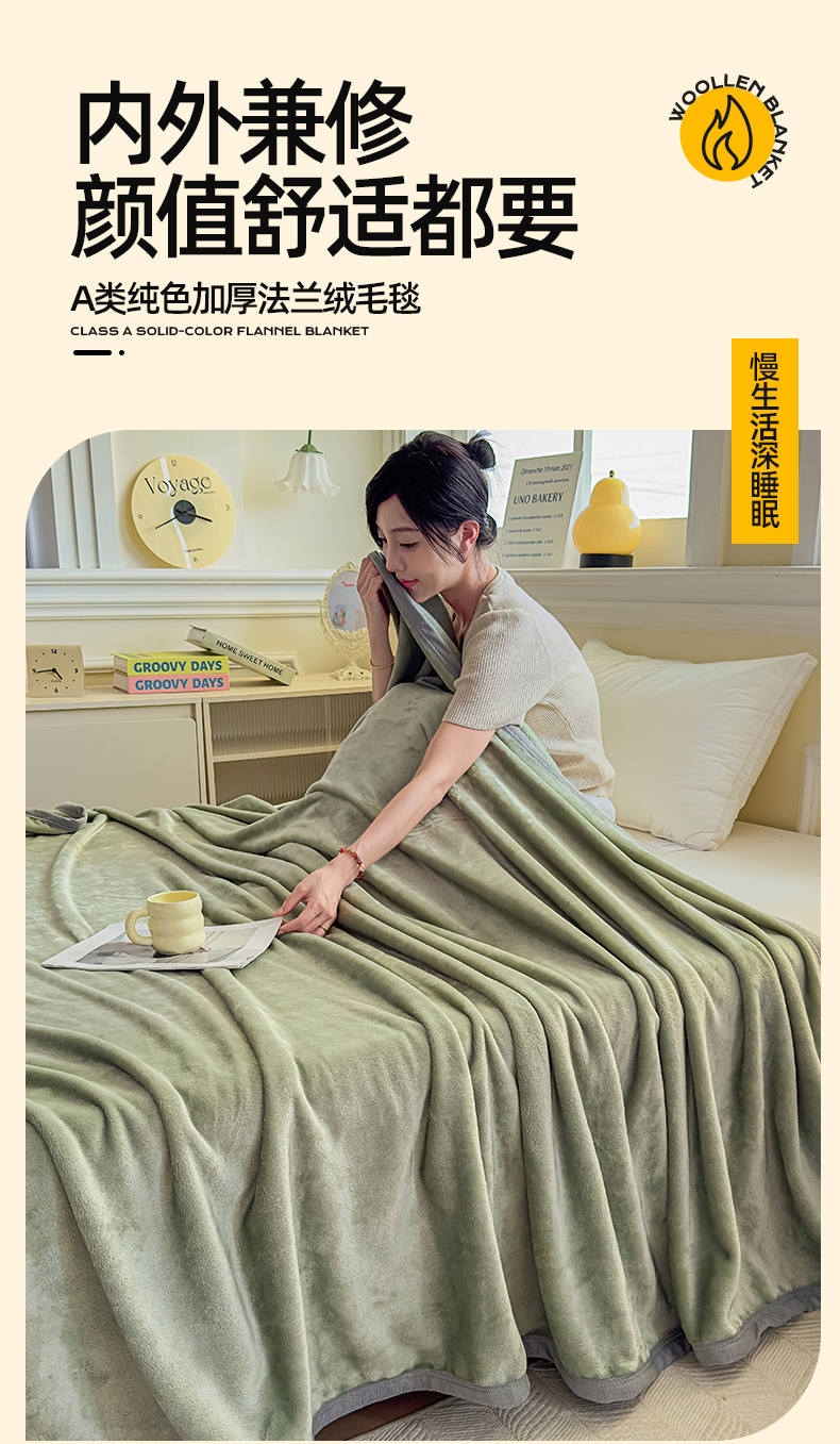 商品名称:予梦家纺 2025新款320g高克重加厚法兰绒毛毯办公室午休毯 松柏绿