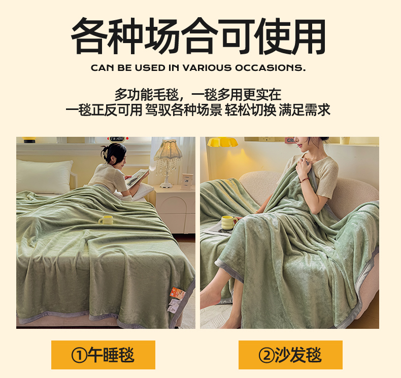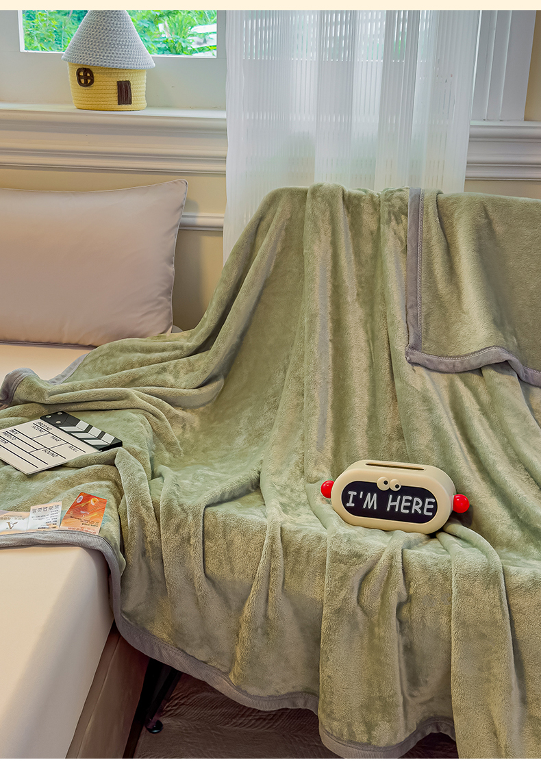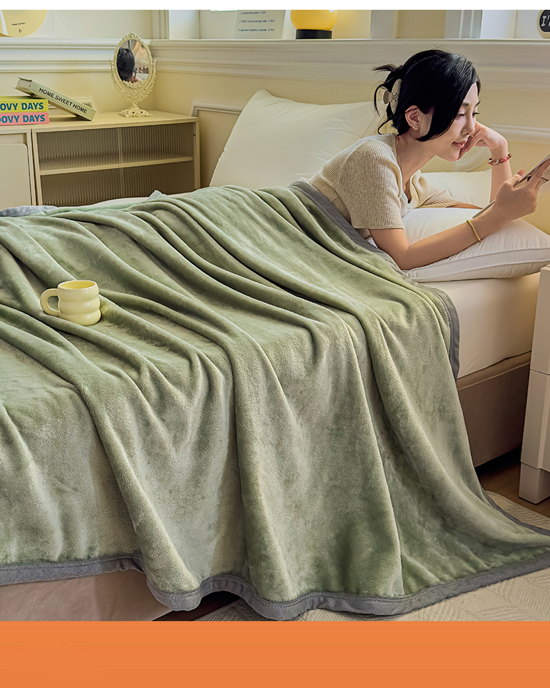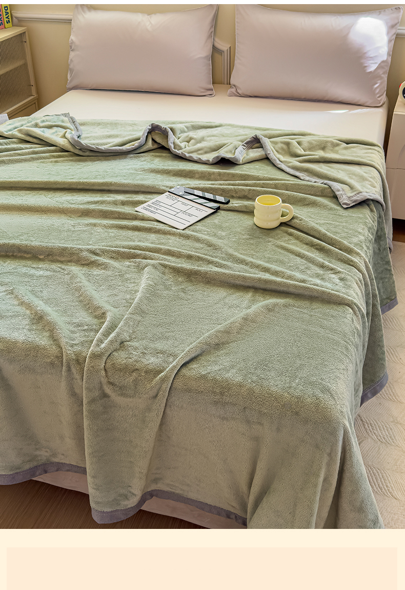 予梦家纺 2025新款320g高克重加厚法兰绒毛毯办公室午休毯 松柏绿