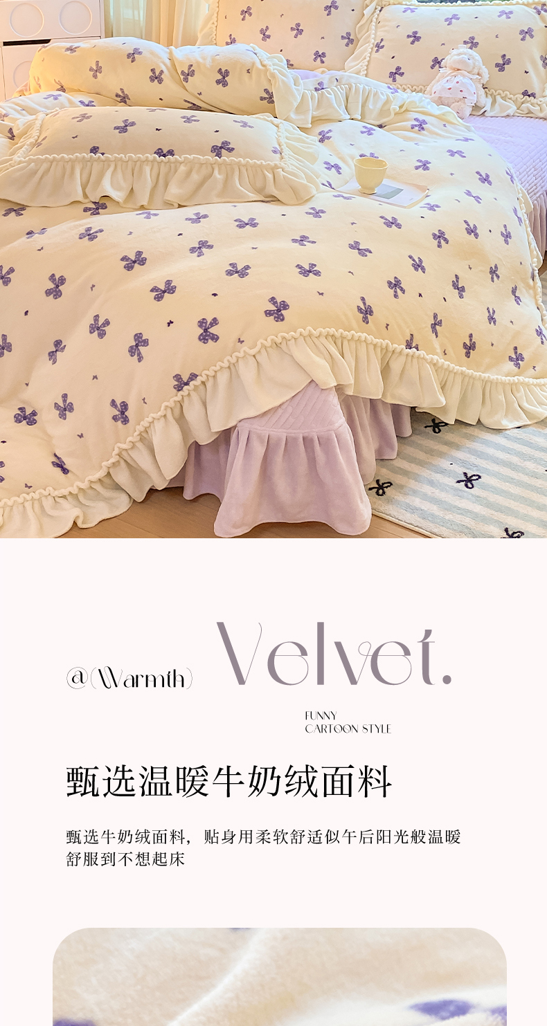 (总)大麦家纺 2025新款牛奶绒印花夹棉花边床盖四件套,蝴蝶紫黛,花漾茶町,花语弥香,云锦茵梦,紫鸢繁花