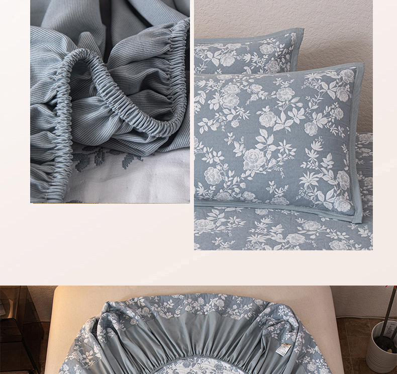 商品名称:萌飞 2025新款A类三层纱床笠 慕白-碟翅蓝
