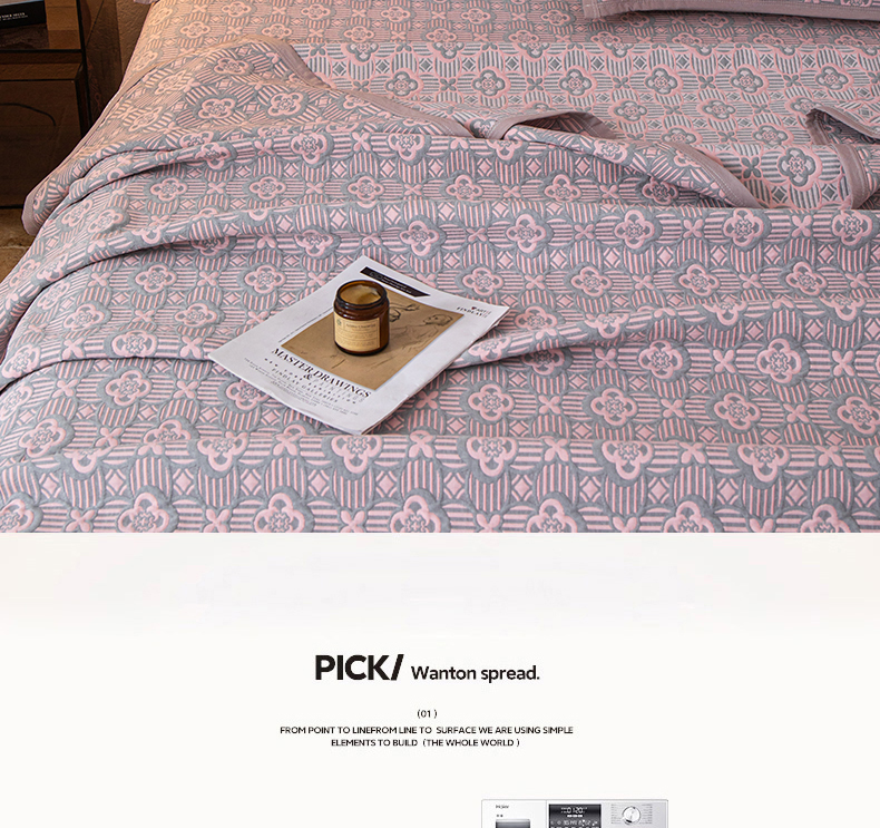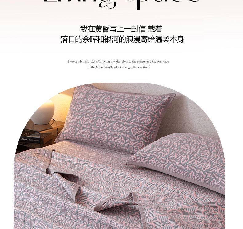 商品名称:萌飞 2025新款A类三层纱纱布毛巾被床盖 可丽之彩-玫瑰粉