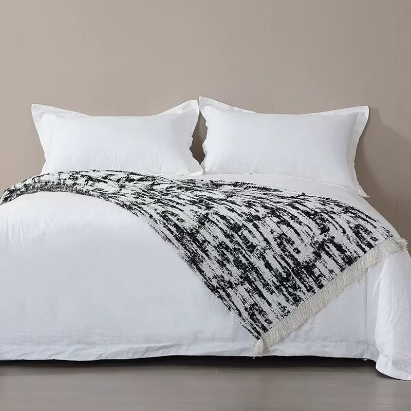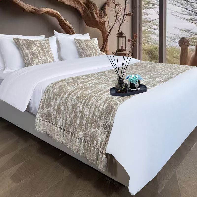 安力森/诚臻酒店用品 2025新款轻奢毛绒卡其色床尾巾高级酒店床旗简约诧寂风搭巾民宿床尾毯搭毯 轻奢抽象刷纹深灰