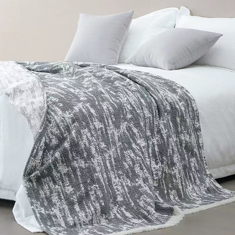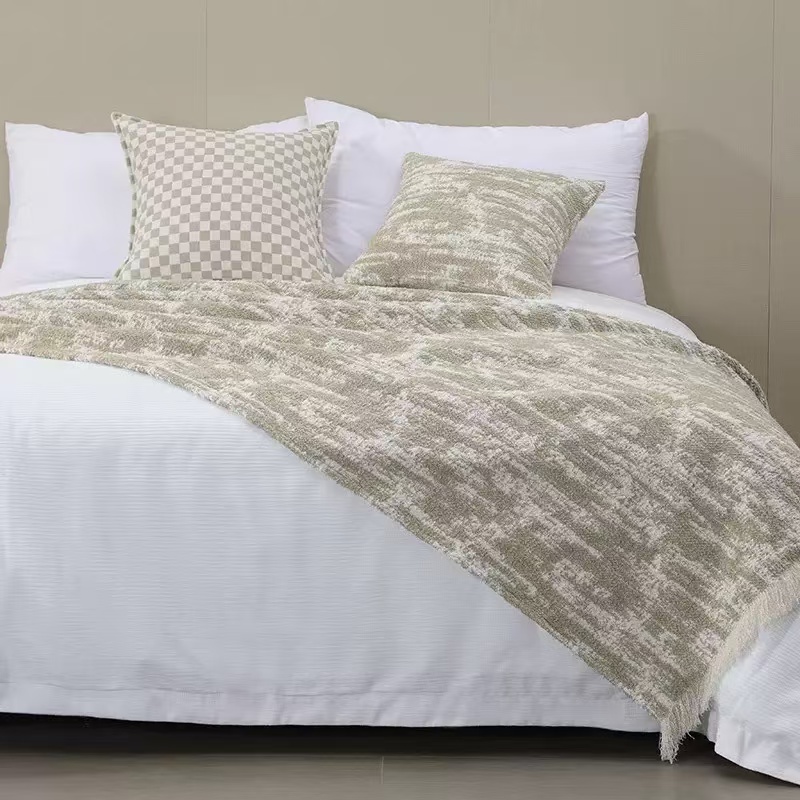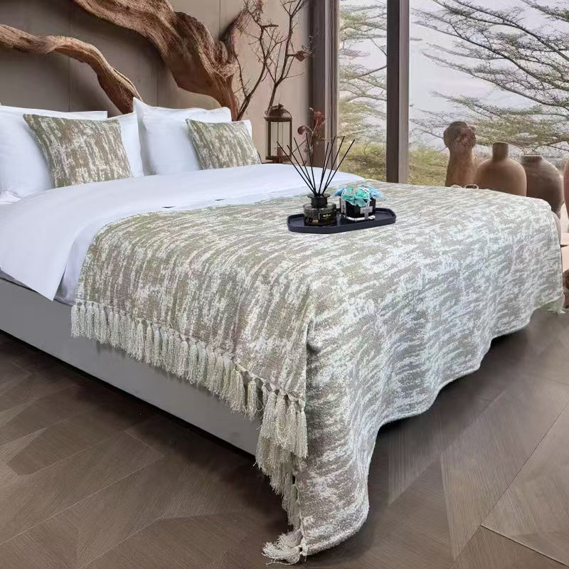 商品名称:安力森/诚臻酒店用品 2025新款轻奢毛绒卡其色床尾巾高级酒店床旗简约诧寂风搭巾民宿床尾毯搭毯 轻奢抽象刷纹深灰