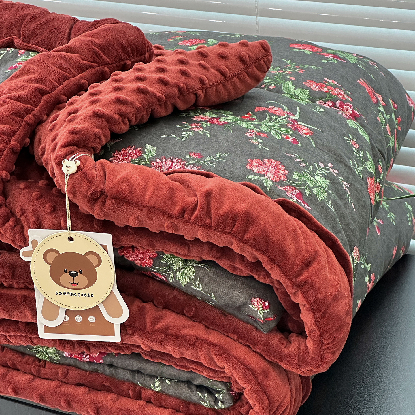 • 91家纺网 家纺一手货源 找家纺 (总)佰织鑫家居 2025新款棉加绒床盖三件套花苞豆豆被四件套,梨花落,落了白