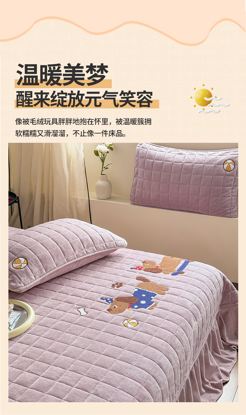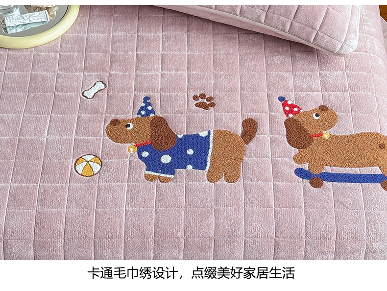 商品名称:TT.one 塔塔家居 2025新款牛奶绒毛巾绣床盖三件套 小狗-床盖豆沙