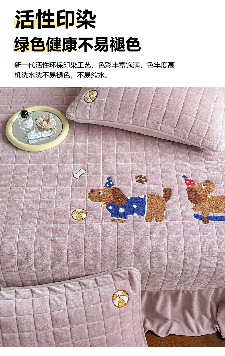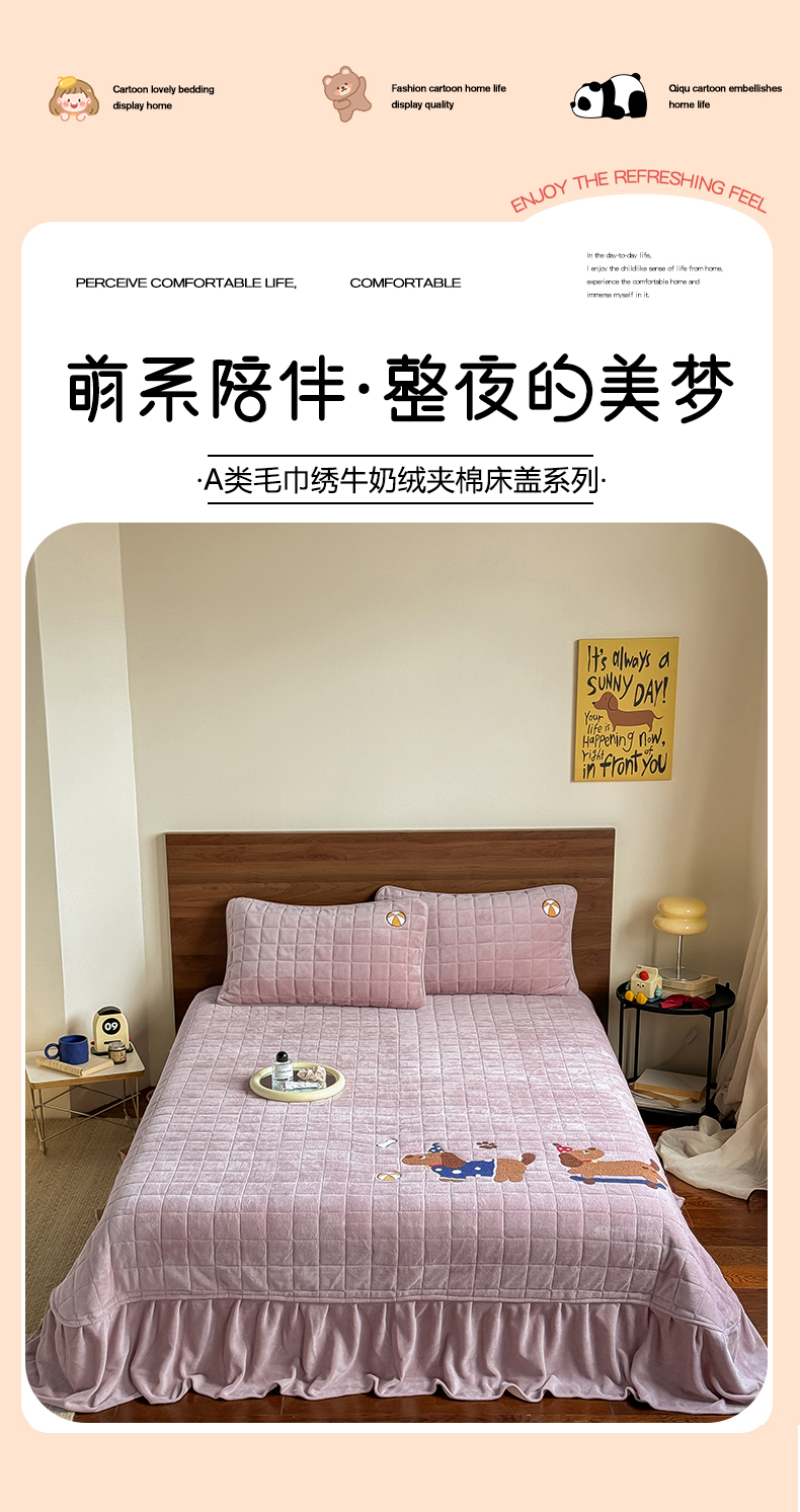 (总)TT.one 塔塔家居 2025新款牛奶绒毛巾绣床盖三件套,苹果-床盖咖,苹果-床盖粉,粉爪-床盖豆沙,粉爪-床盖粉,粉爪-床盖咖,小狗-床盖豆沙,小狗-床盖咖