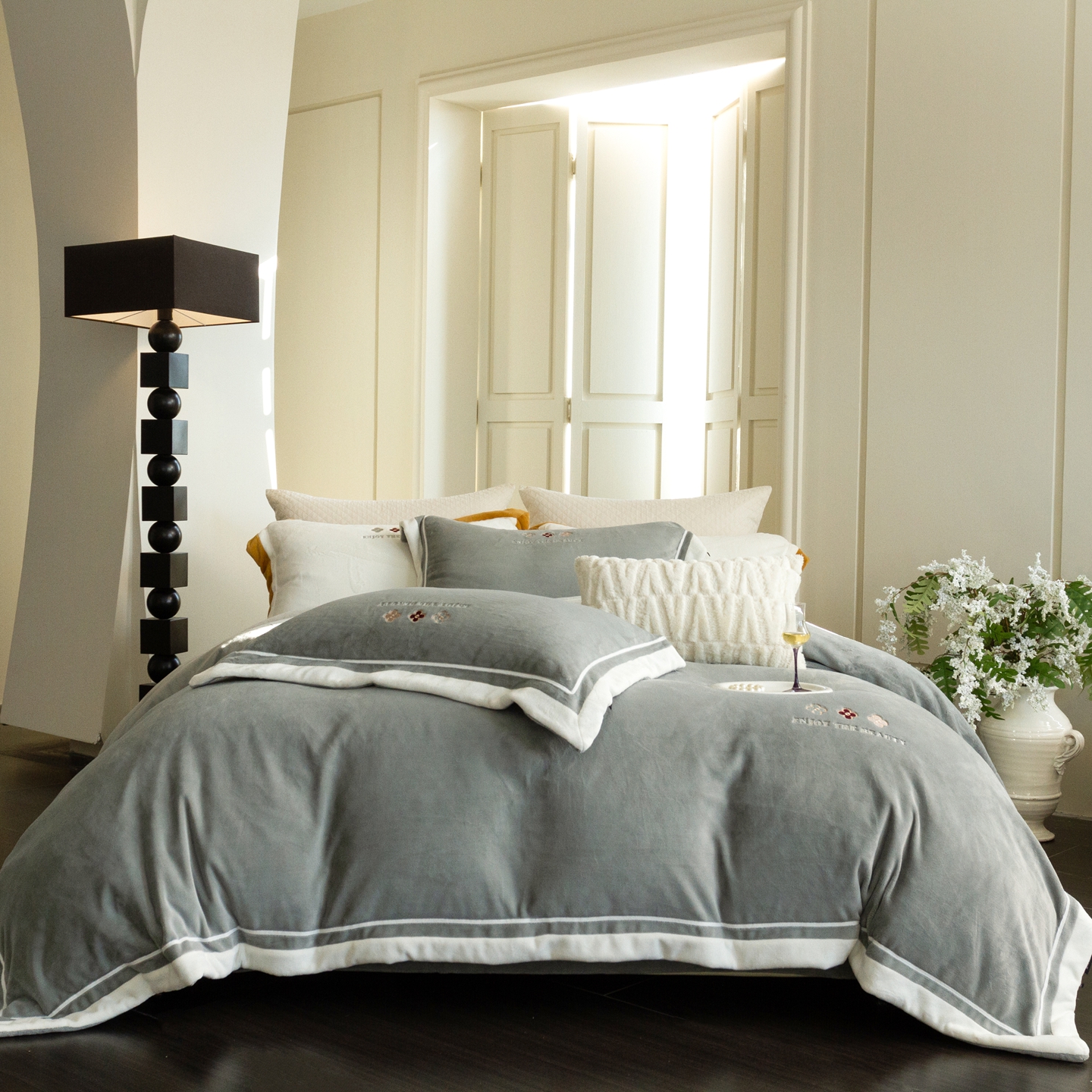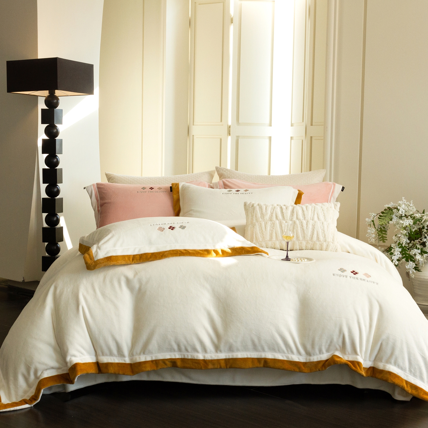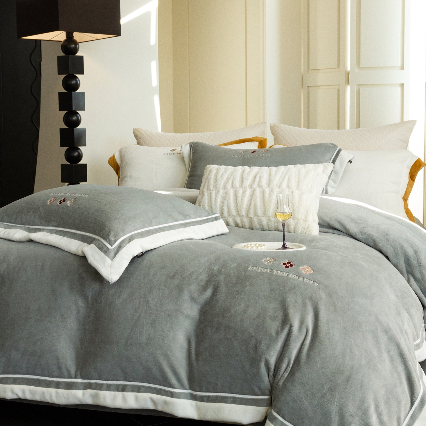 (总)馨蕊家居 2025秋冬新品超细旦磨毛高奢系列四件套-知禾,知禾-高级灰,知禾-蔷薇粉,知禾-月光白