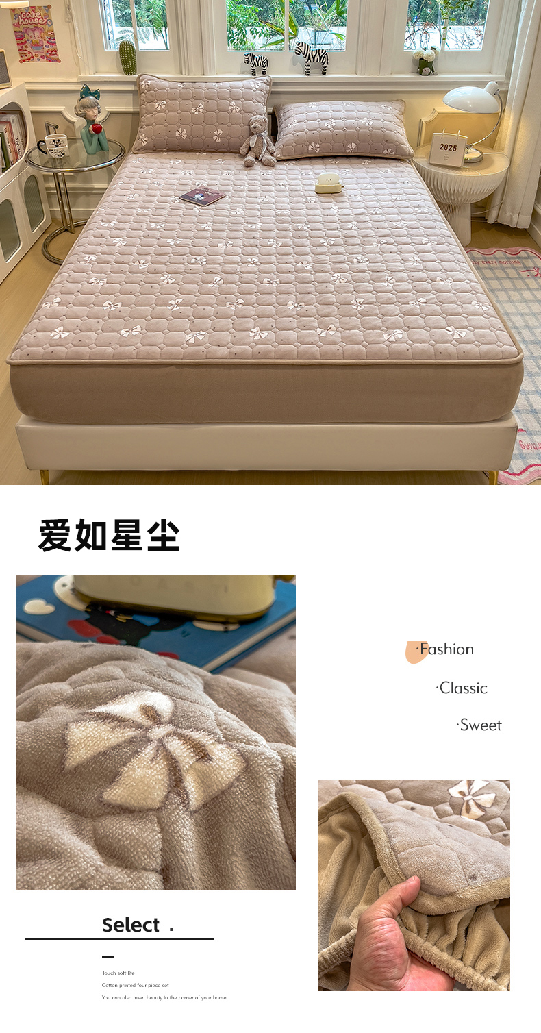 (总)布卢姆床垫 2025新款A类抗菌印花牛奶绒夹棉床笠,爱如星尘,春暖花开,飞天小象,童趣星海,粉粉蕾丝熊,叶畔兔语,花在云端,蓝色星光