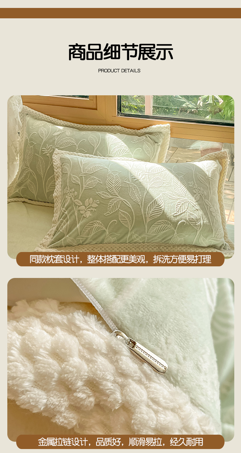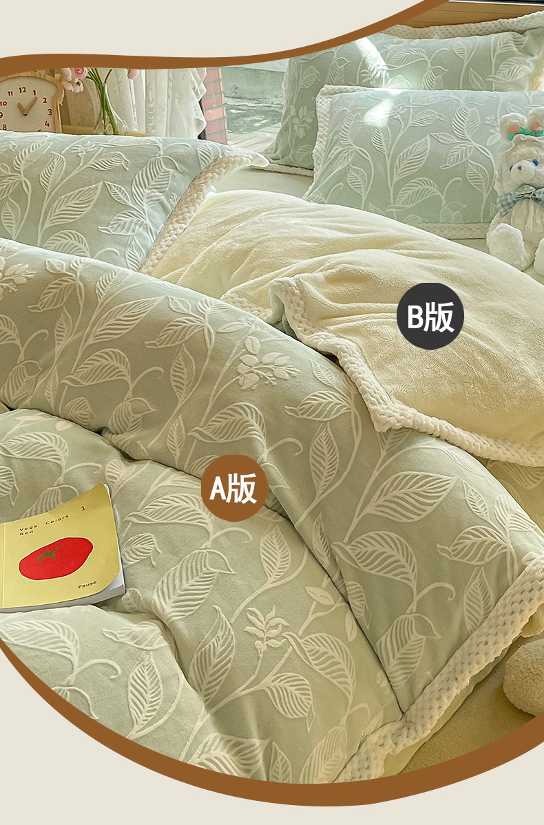 当前位置: 91家纺网 > 商品网购 > 床品套件 > 四件套 > 雕花绒四件套 > 琪格格纺织 2025新款全消光包边立体简约清新雕花绒四件套 雕花包边-迪亚妮 浅绿